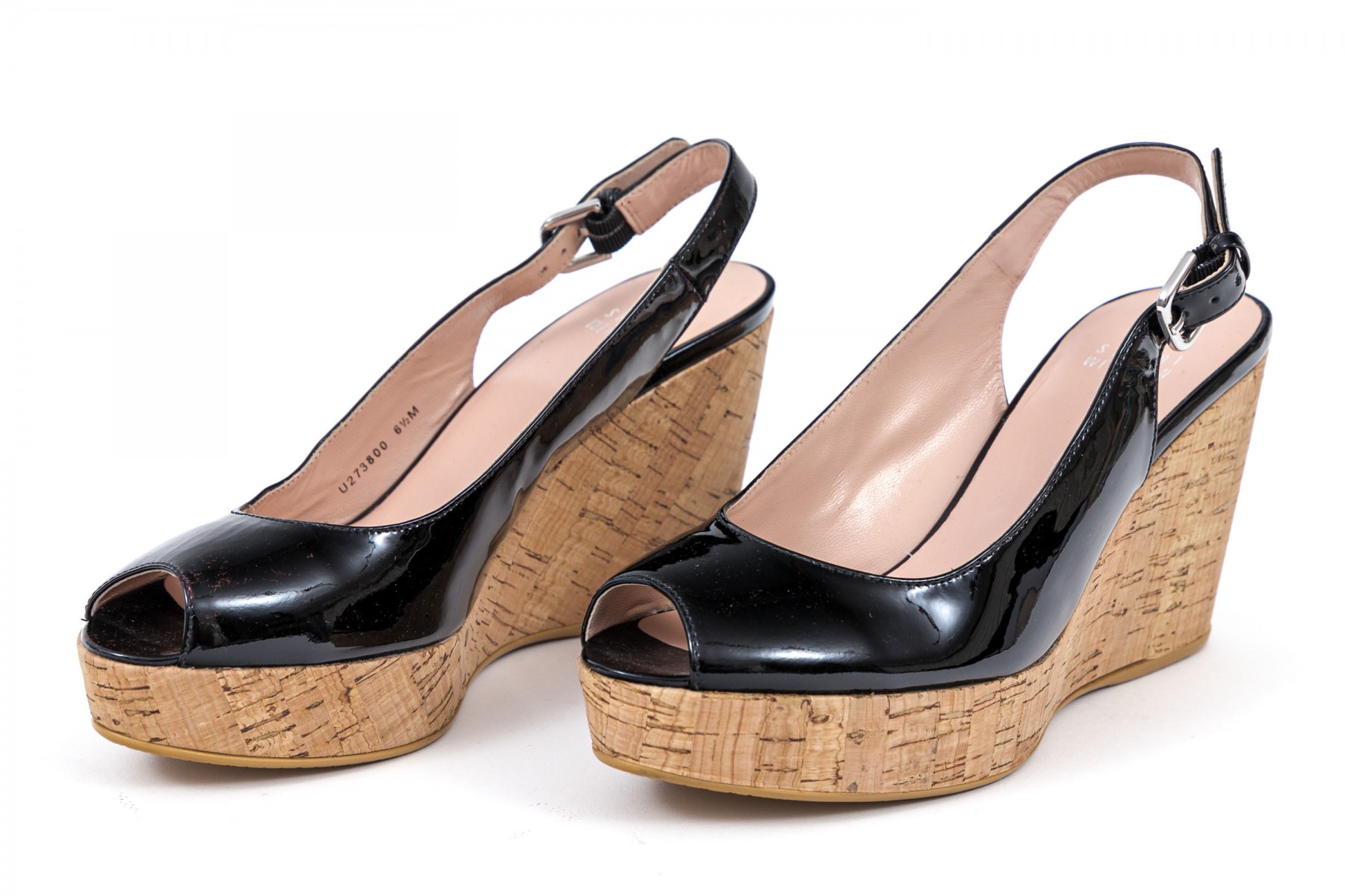 Stuart Weitzman Fun Black Patent Leather Peep Toe Cork Platform Wedges, Size 6 1/2 #267596. Black Rock Galleries provides high end estate liquidation services through online estate auctions and a 50,000 sq ft designer showroom. estate liquidator, estate sale, online auction, antiques, fine art, liquidation, clean outs, auction, consignment, interior design, fine jewelry, collectibles, appraisals, estate appraisals, estate services, decor, furniture, furniture consignment, antique center, consignment shop. We offer appraisal services and specialize in fine art, jewelry, antiques and decorative arts. Sell with us. Black Rock Galleries is the tri-state's largest estate liquidator serving New England and the greater New York City area. We are the trusted source for expert appraisals, auction services, estate sales, and consignments. Black Rock Galleries is the east coast's largest and most trusted estate liquidator, with locations in Connecticut, greater Boston, MA and Raleigh, NC, Fairfield, Southport, Apex, TX. We are the best source for expert appraisals, auction services, estate sales and consignments. We have served thousands of families and estates with compassion, professionalism and expertise. BRG works with attorneys, executors, realtors and families to bring the greatest return on personal and estate property in the current market. Our unique combination of services make us the easy choice to get the job done in a timely and stress-free manner. We are with you from the initial consultation to the final clean out. Our house-built online auction software platform offers clients a dynamic approach to liquidating their personal property. This venue is most successful in bringing the best return with the least amount of disruption for our clients. See our services page for a complete description of this offering. Stuart Weitzman Fun Black Patent Leather Peep Toe Cork Platform Wedges, Size 6 1/2 #267596