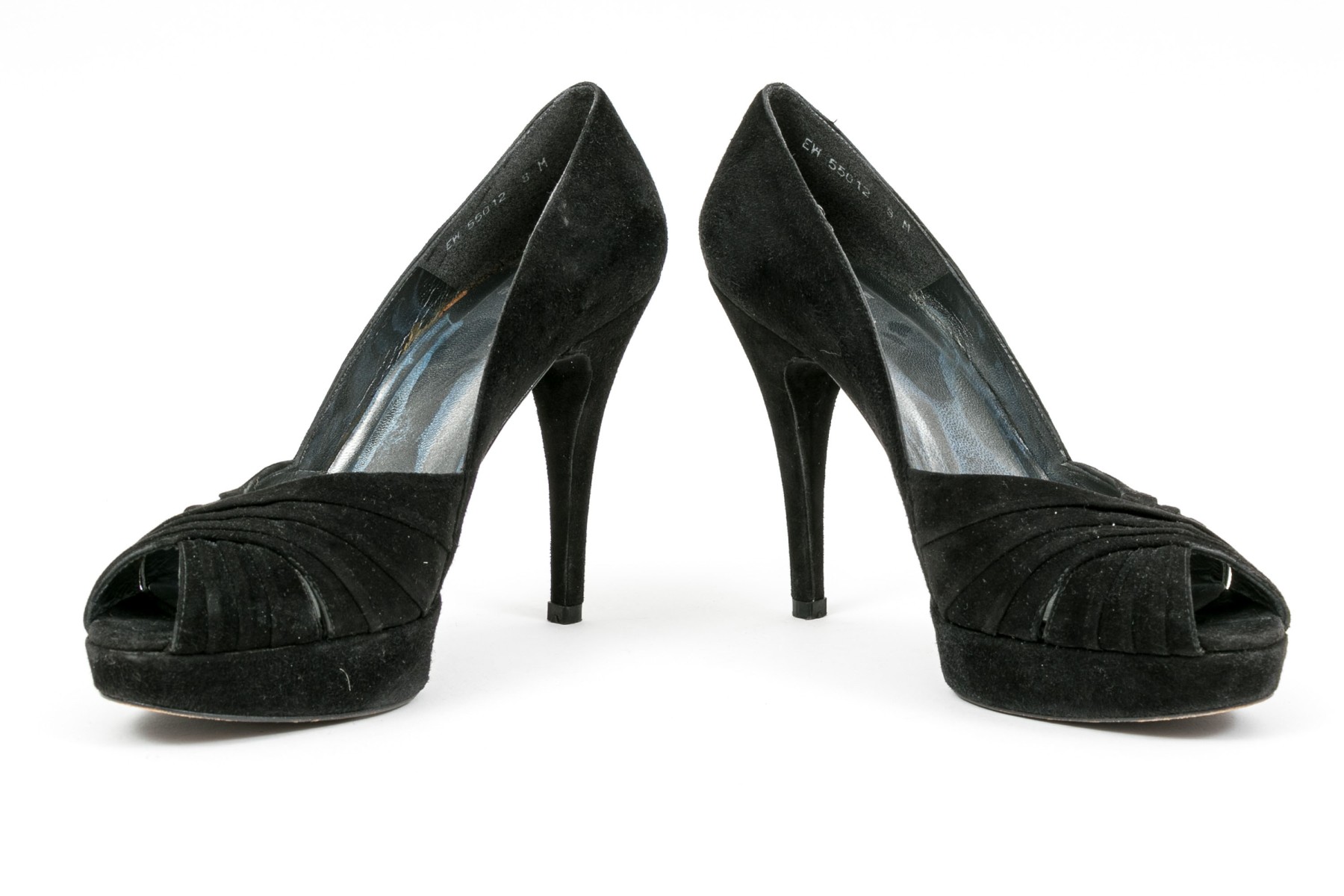 Stuart Weitzman Impactful Black Suede Gathered Peep Toe Platform Stilettos, Size 8 M #323360. Black Rock Galleries provides high end estate liquidation services through online estate auctions and a 50,000 sq ft designer showroom. estate liquidator, estate sale, online auction, antiques, fine art, liquidation, clean outs, auction, consignment, interior design, fine jewelry, collectibles, appraisals, estate appraisals, estate services, decor, furniture, furniture consignment, antique center, consignment shop. We offer appraisal services and specialize in fine art, jewelry, antiques and decorative arts. Sell with us. Black Rock Galleries is the tri-state's largest estate liquidator serving New England and the greater New York City area. We are the trusted source for expert appraisals, auction services, estate sales, and consignments. Black Rock Galleries is the east coast's largest and most trusted estate liquidator, with locations in Connecticut, greater Boston, MA and Raleigh, NC, Fairfield, Southport, Apex, TX. We are the best source for expert appraisals, auction services, estate sales and consignments. We have served thousands of families and estates with compassion, professionalism and expertise. BRG works with attorneys, executors, realtors and families to bring the greatest return on personal and estate property in the current market. Our unique combination of services make us the easy choice to get the job done in a timely and stress-free manner. We are with you from the initial consultation to the final clean out. Our house-built online auction software platform offers clients a dynamic approach to liquidating their personal property. This venue is most successful in bringing the best return with the least amount of disruption for our clients. See our services page for a complete description of this offering. Stuart Weitzman Impactful Black Suede Gathered Peep Toe Platform Stilettos, Size 8 M #323360