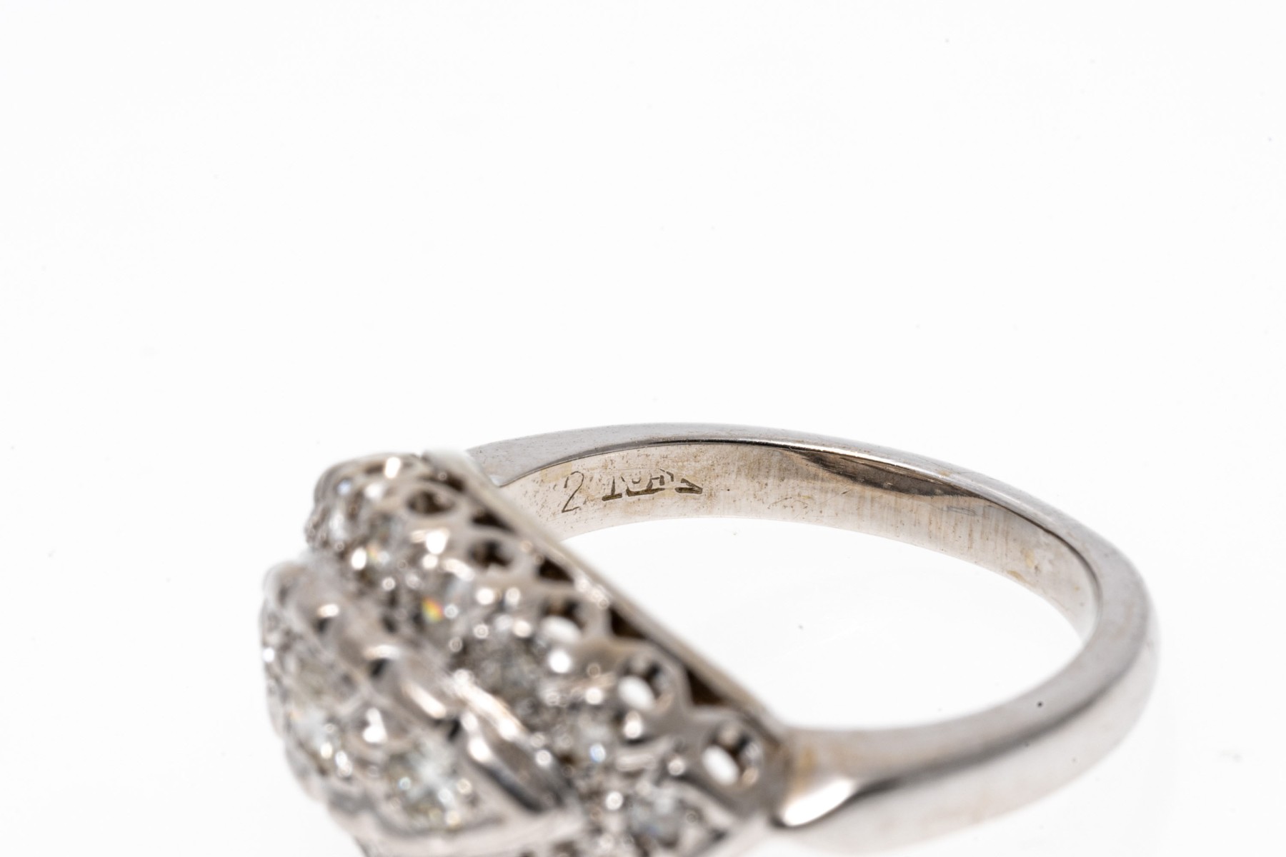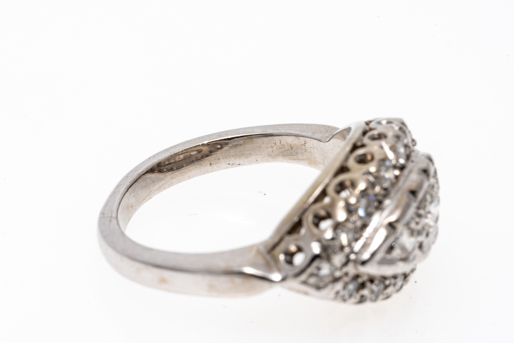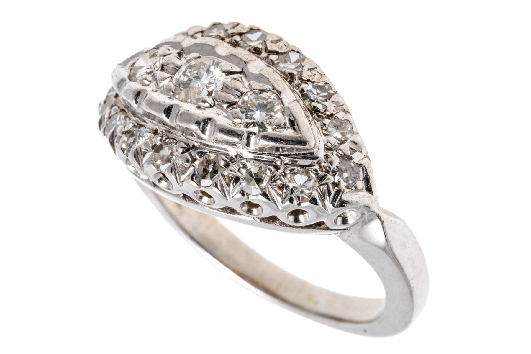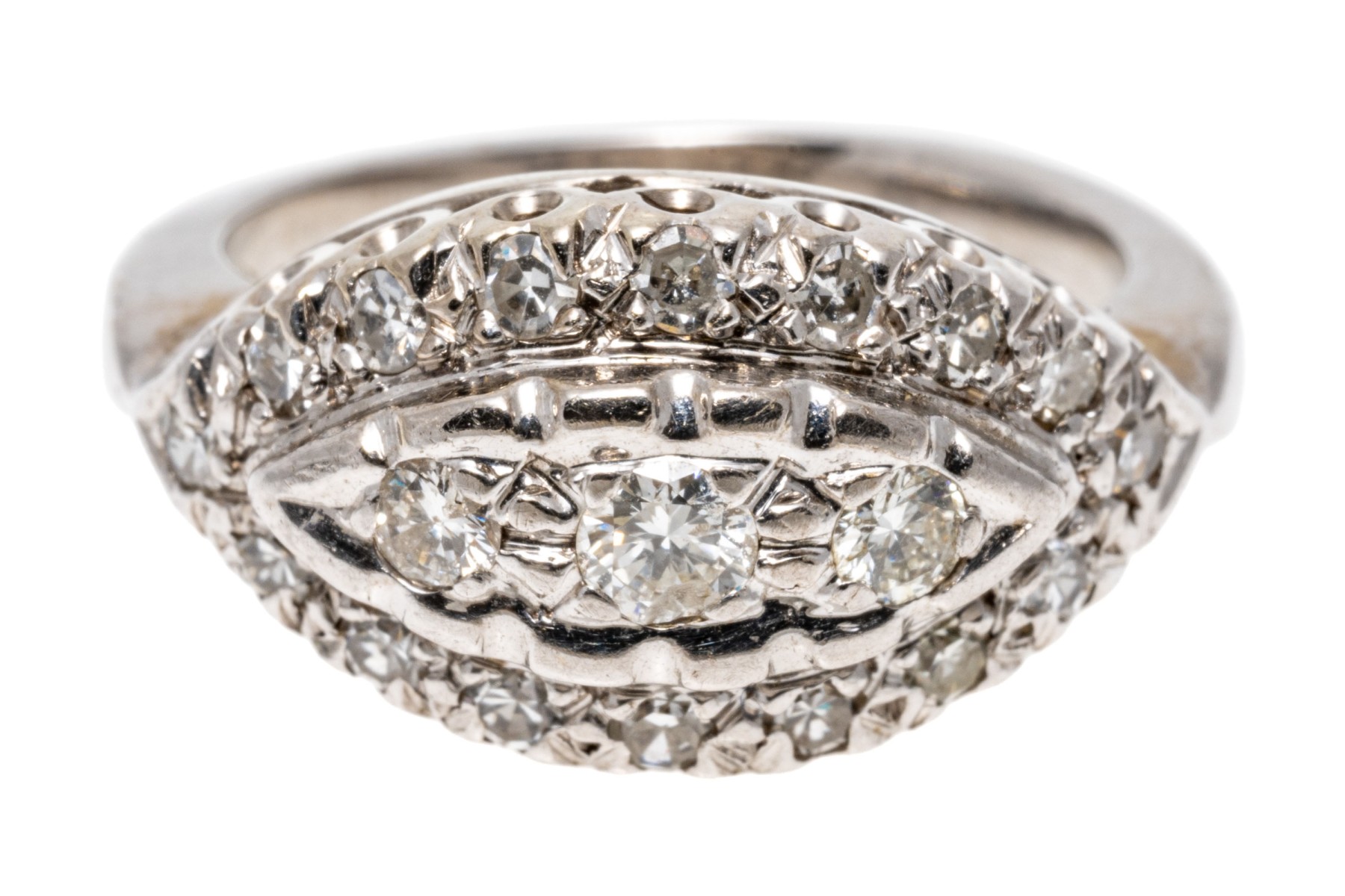 Bright diamond set 14K white old ring. The ring is set with round and round brilliant cut diamonds. The diamonds are approximately 0.44 TCW. Ring size 3.