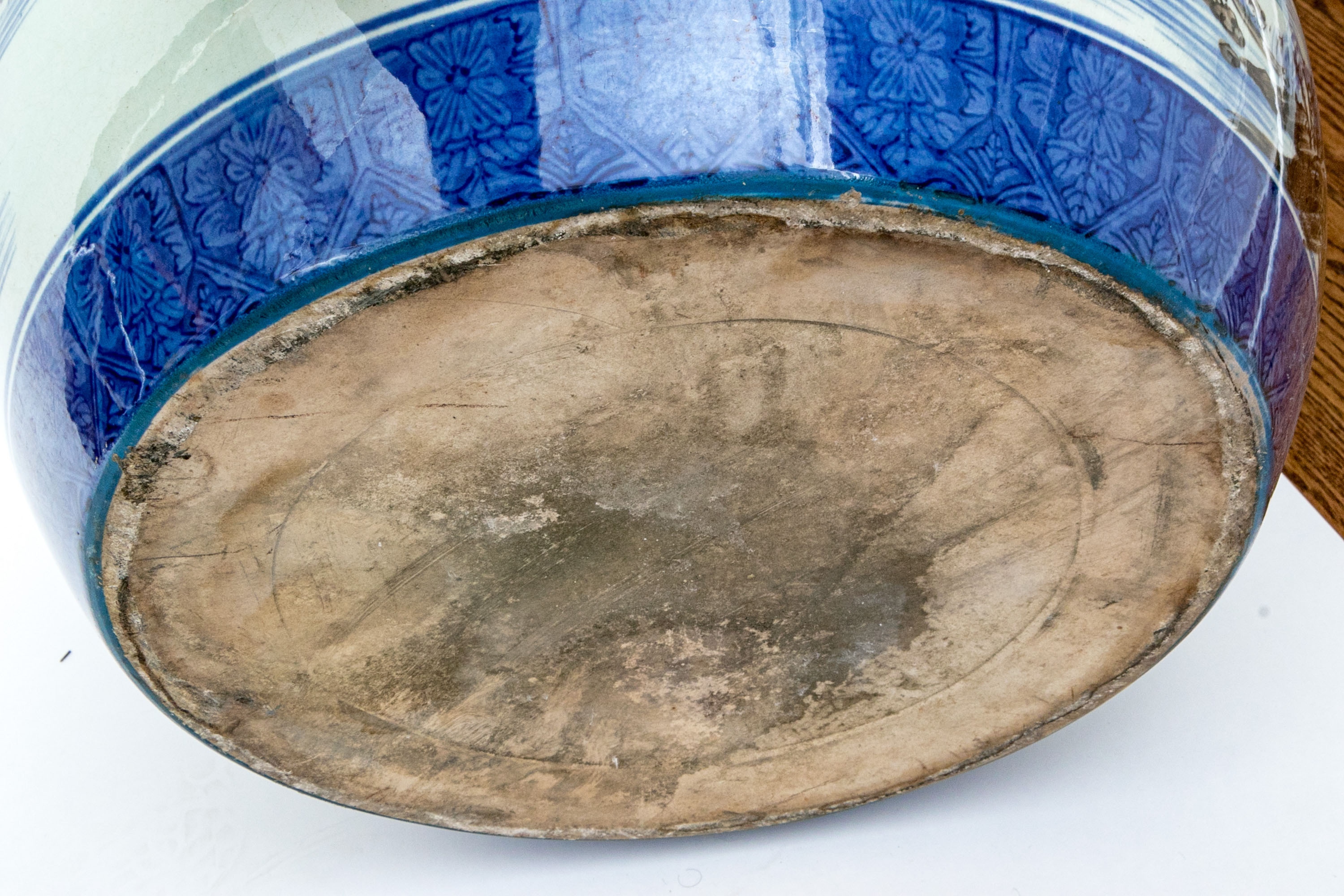 Decorative underglaze blue bands to the mouth and foot rim.