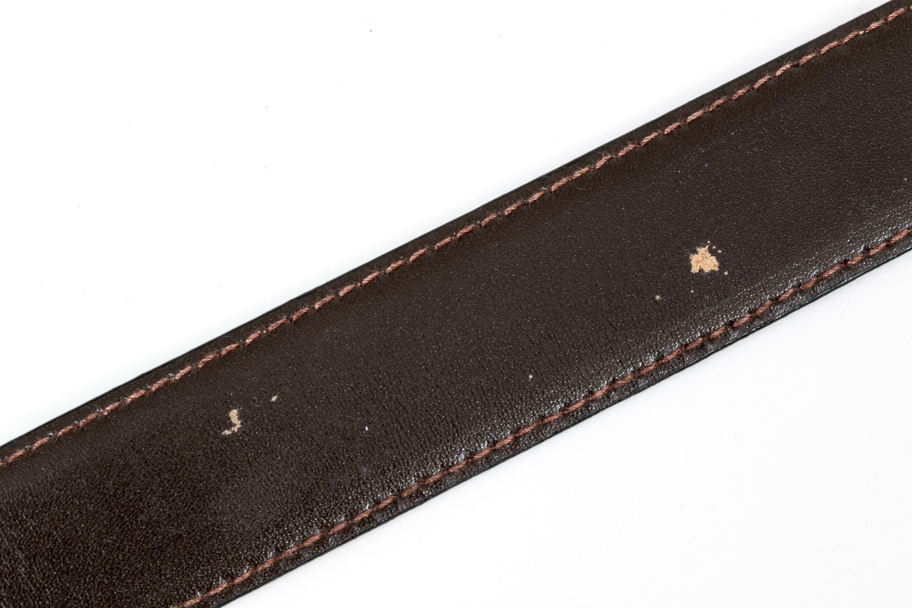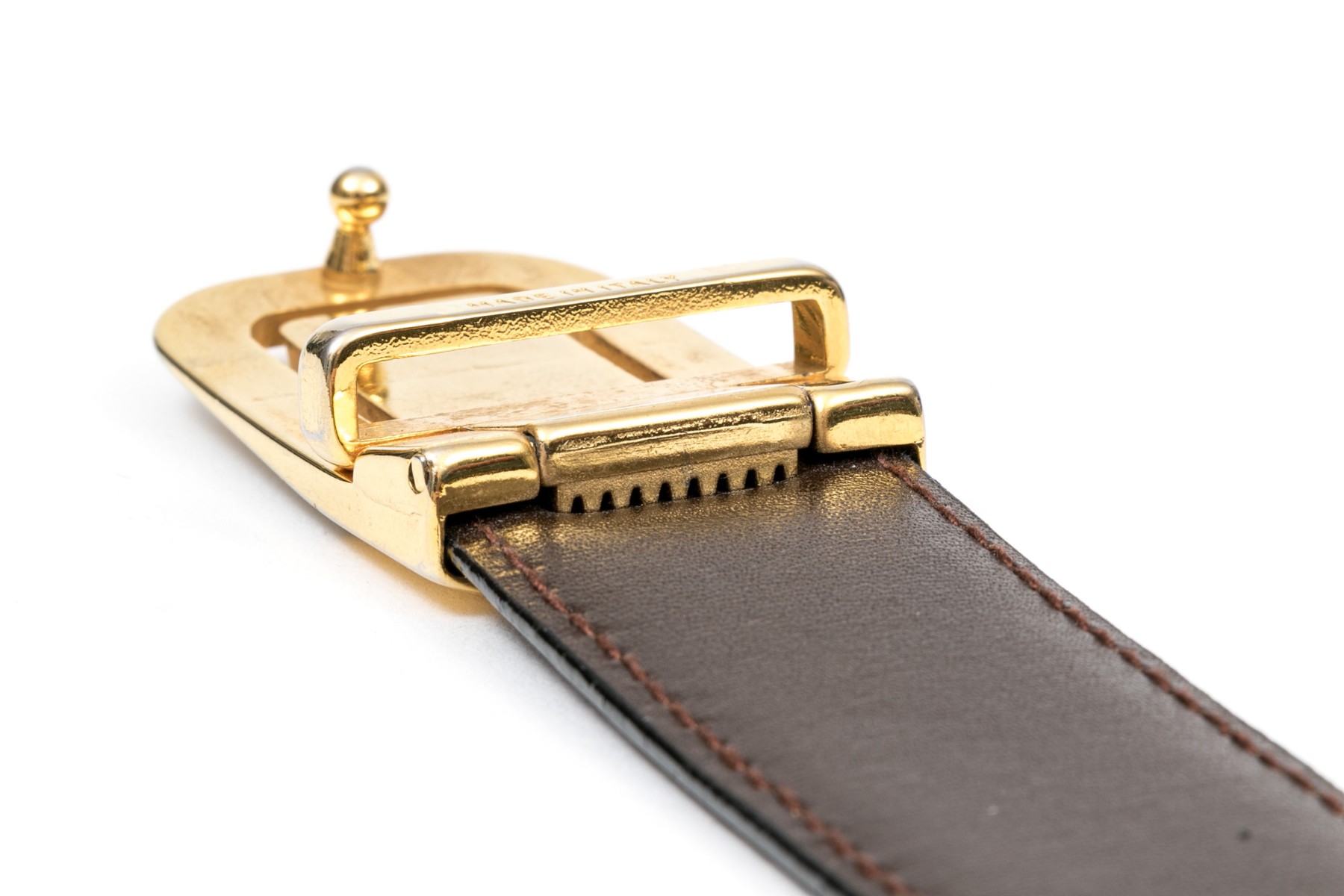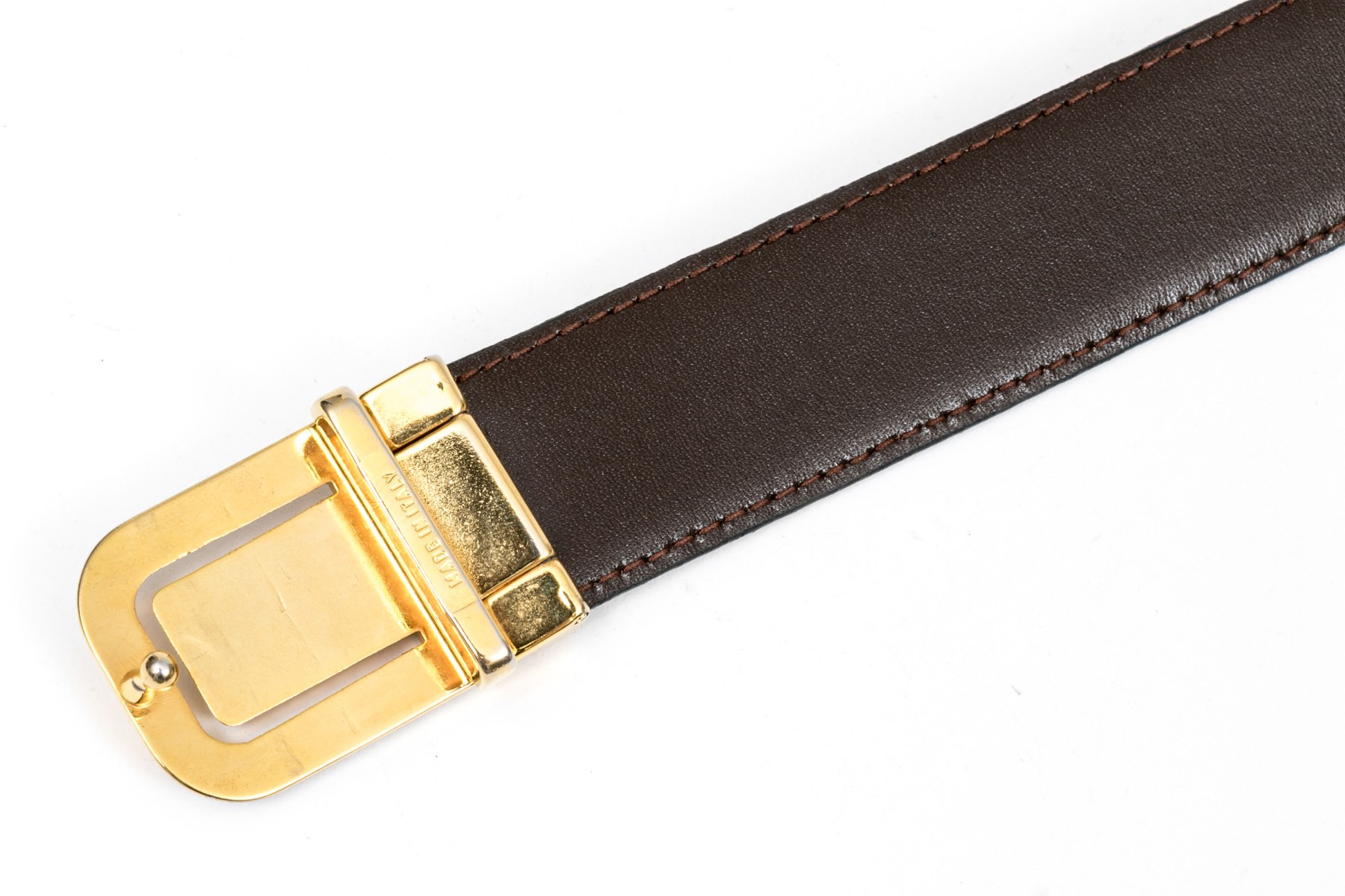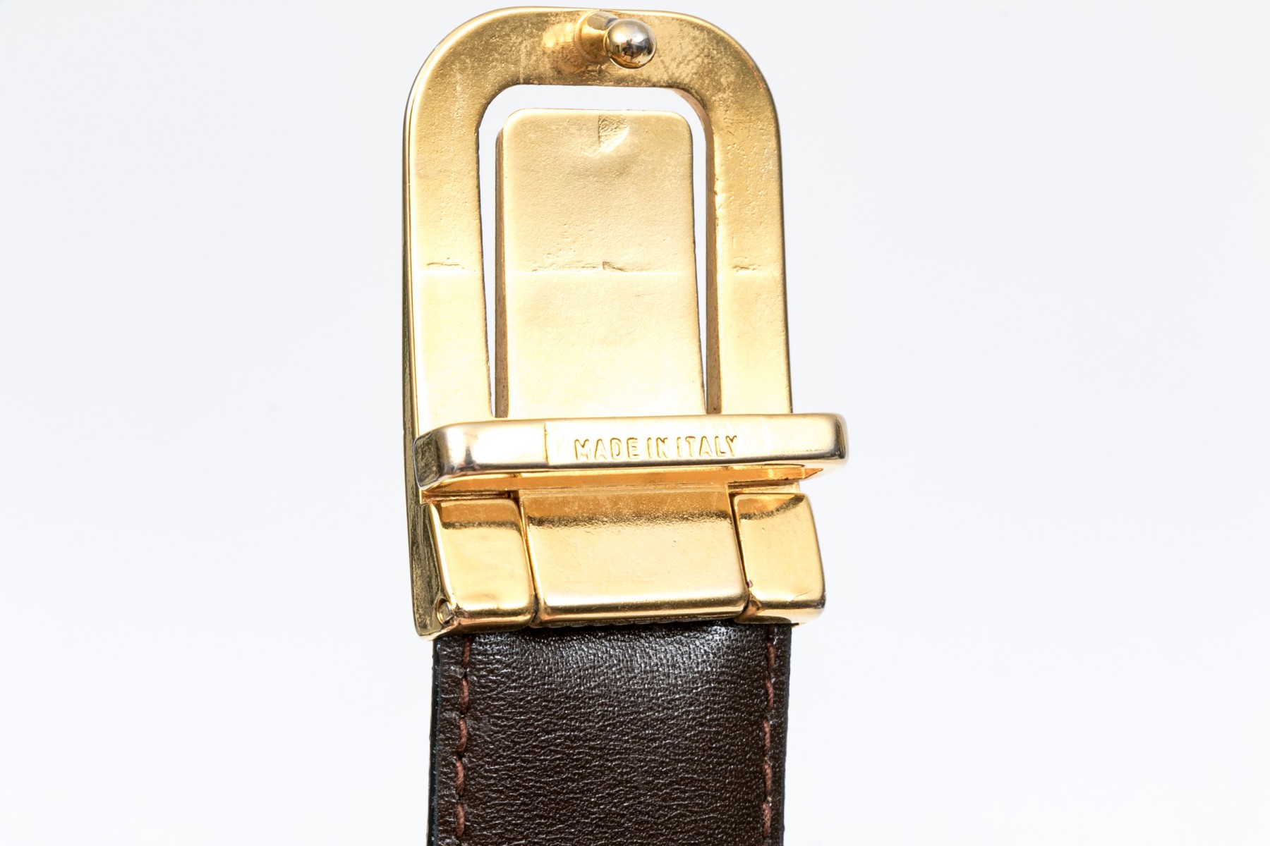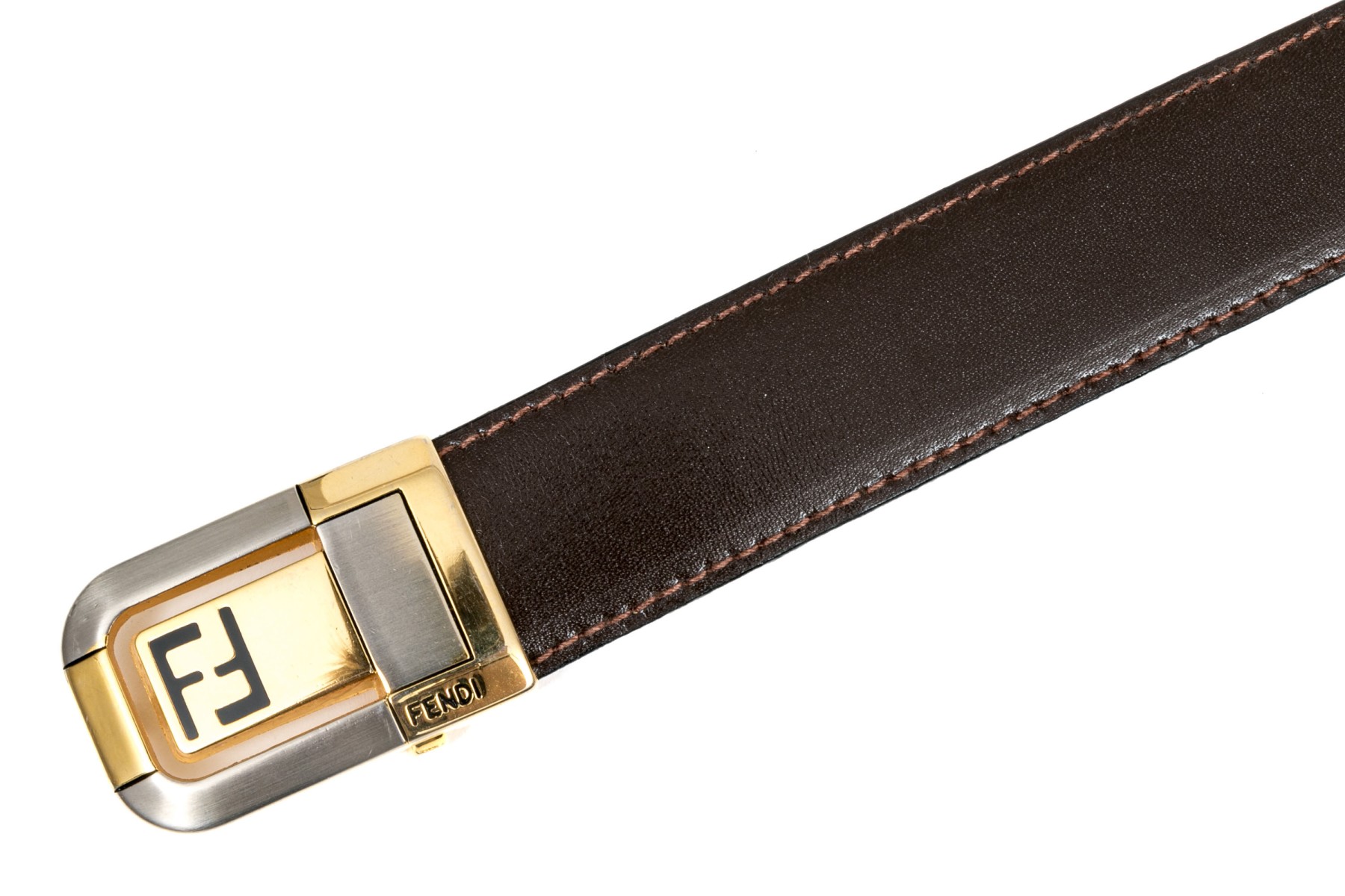 Brown leather belt by Fendi. Gold-toned belt buckle.