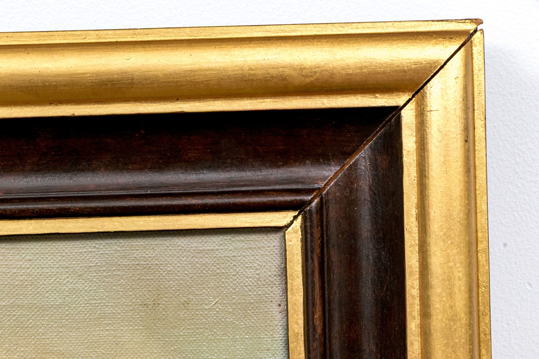 Displayed in a dark brown and gilt finished frame.