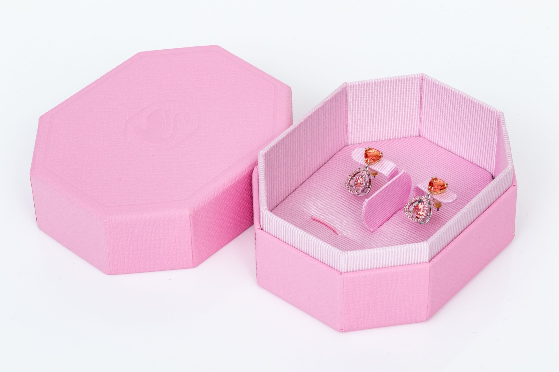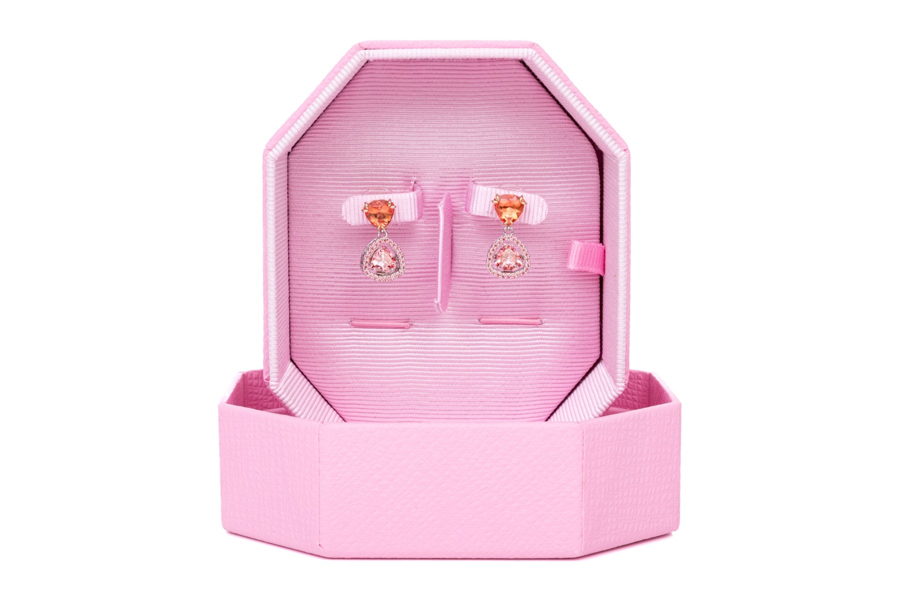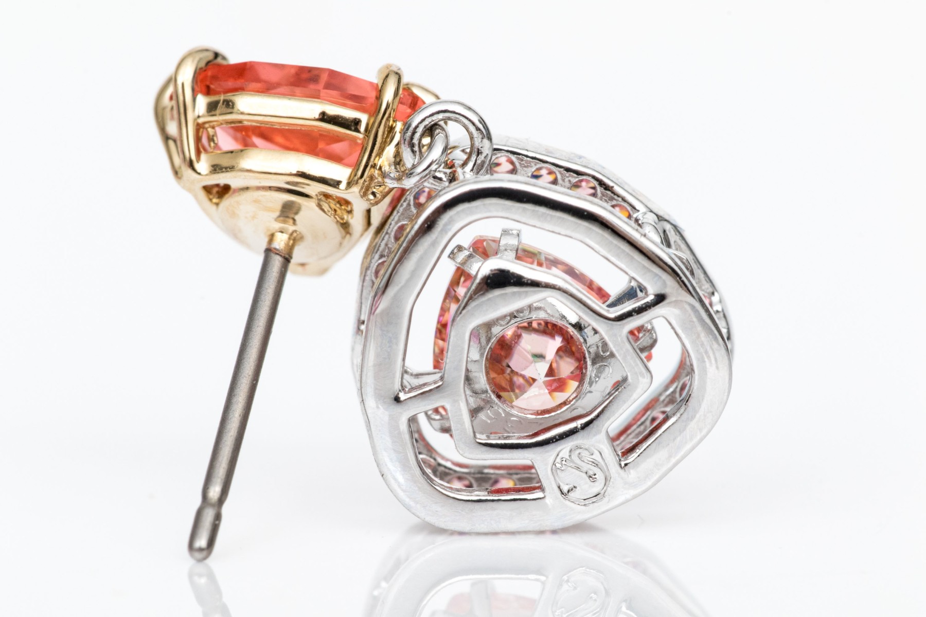 Swarovski orange and pink trillion crystal halo drop pendant earrings, finished with posts and plastic disc style backs, with box