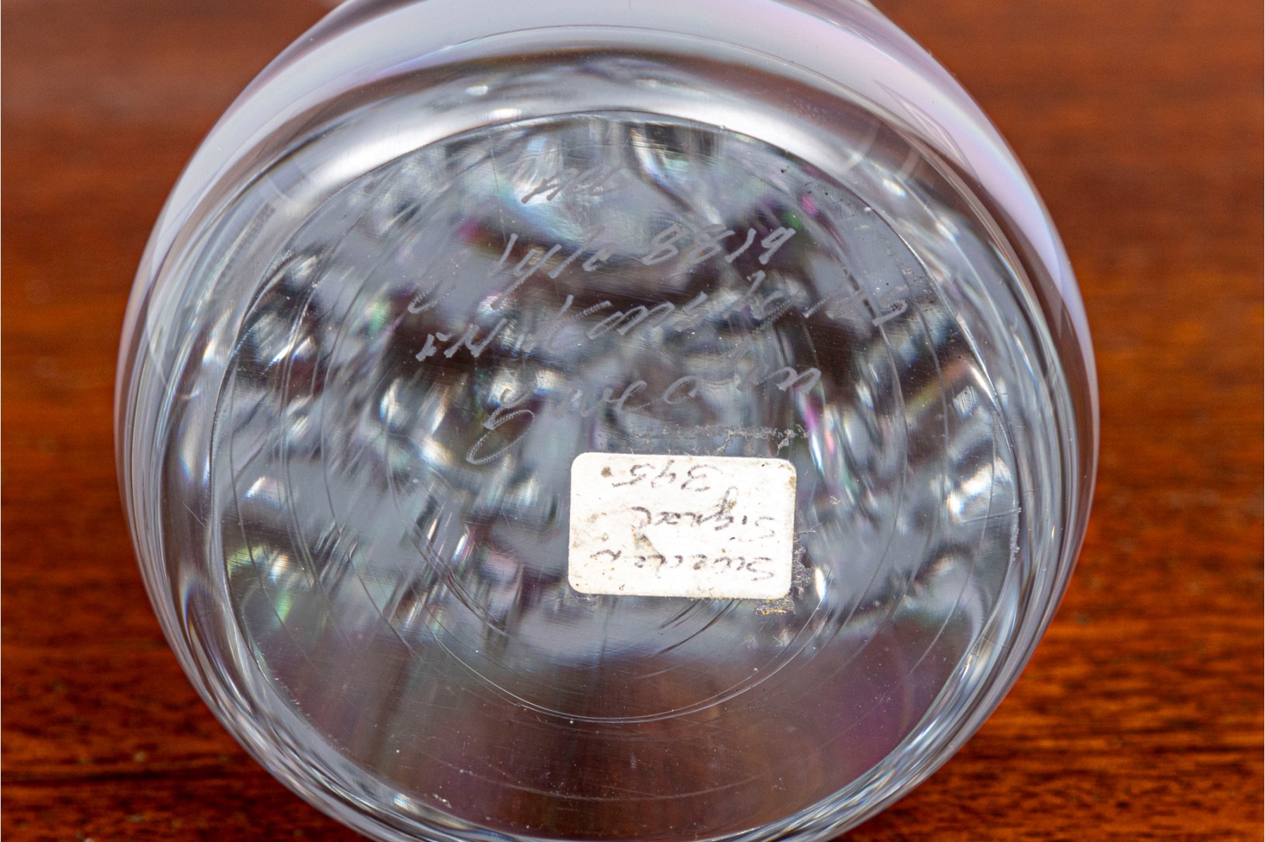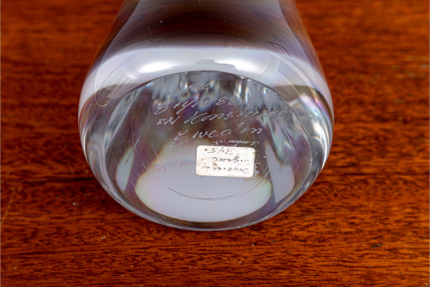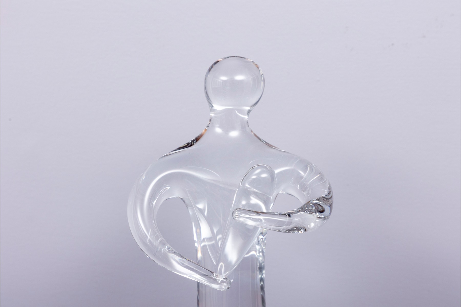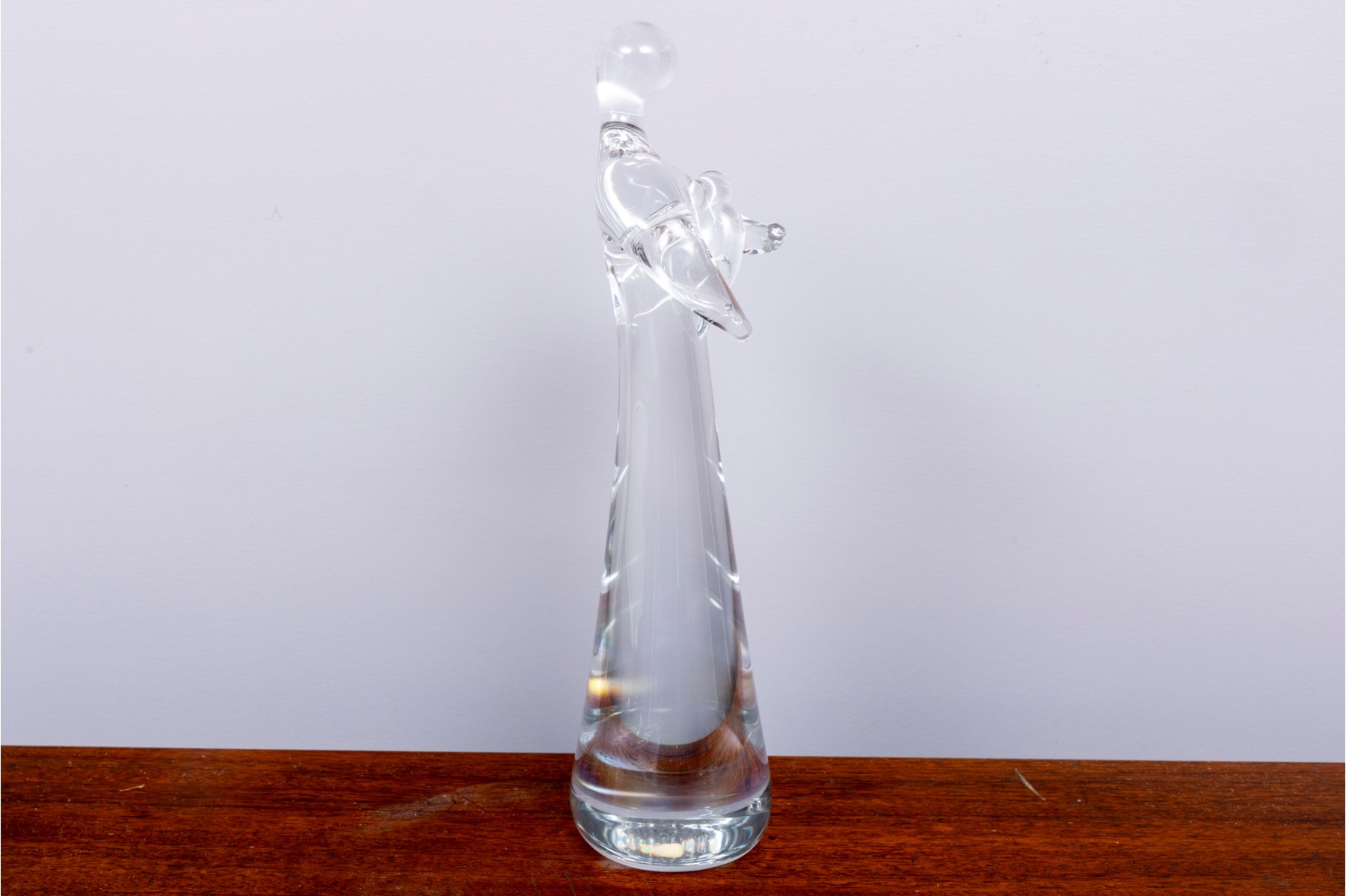 A lovely crystal art glass sculpture of a Madonna figure and child. Made in Sweden. An indistinct etched signature resides beneath the base.