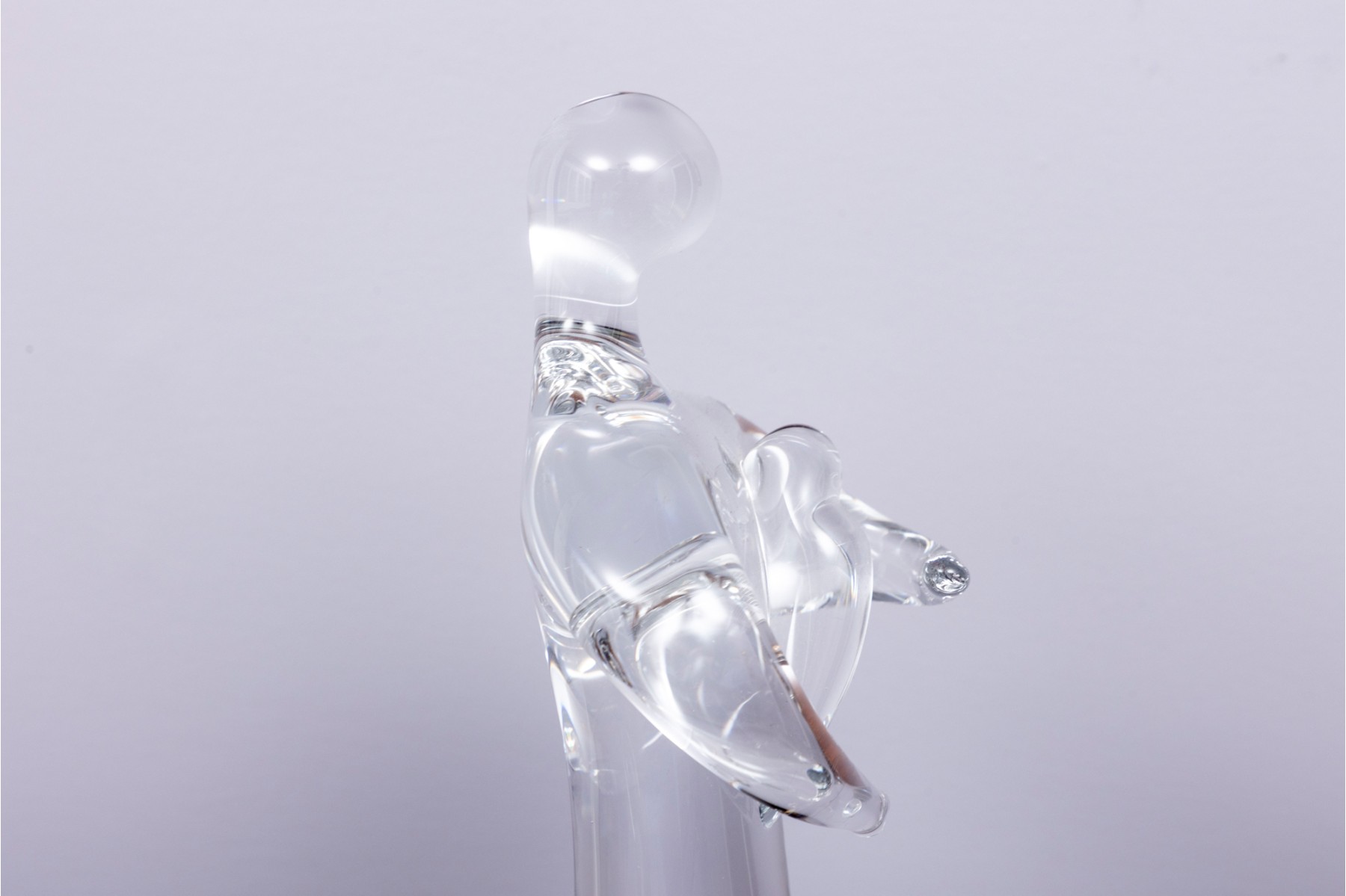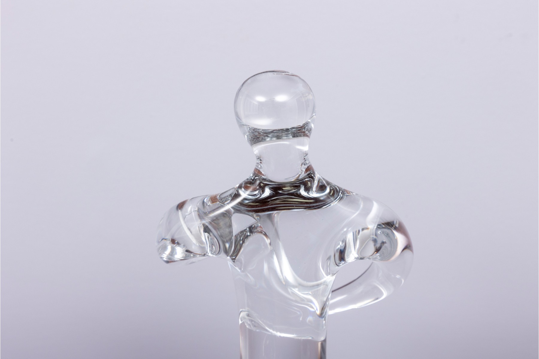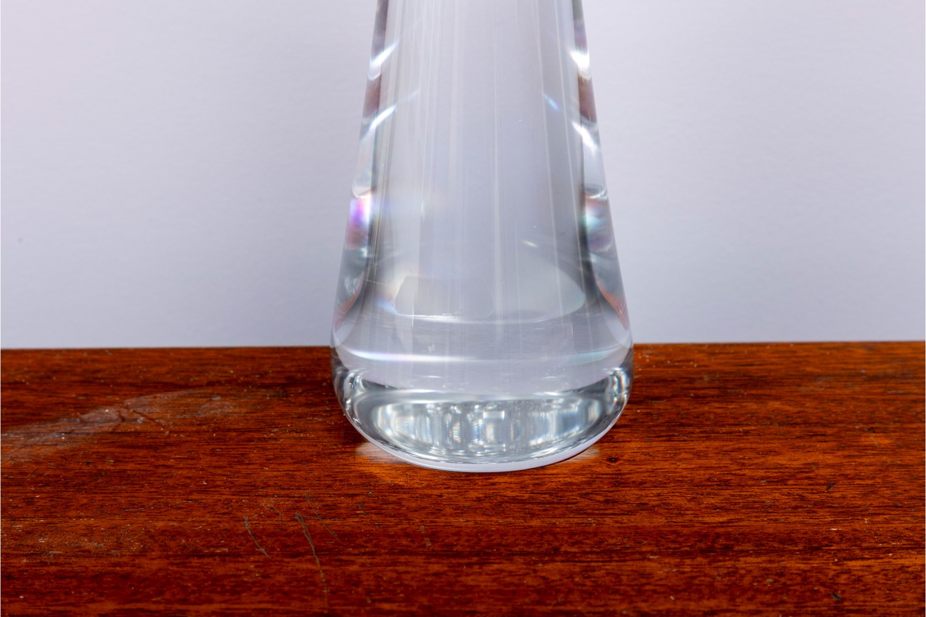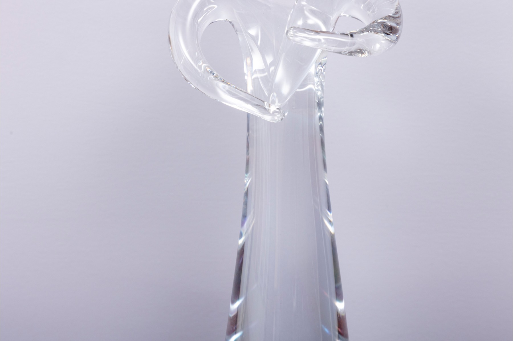 A lovely crystal art glass sculpture of a Madonna figure and child. Made in Sweden. An indistinct etched signature resides beneath the base.