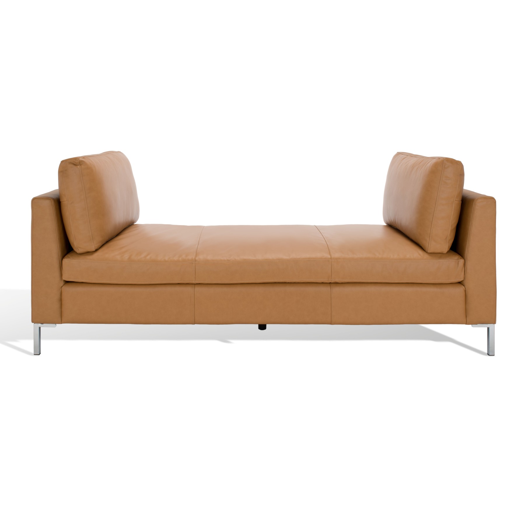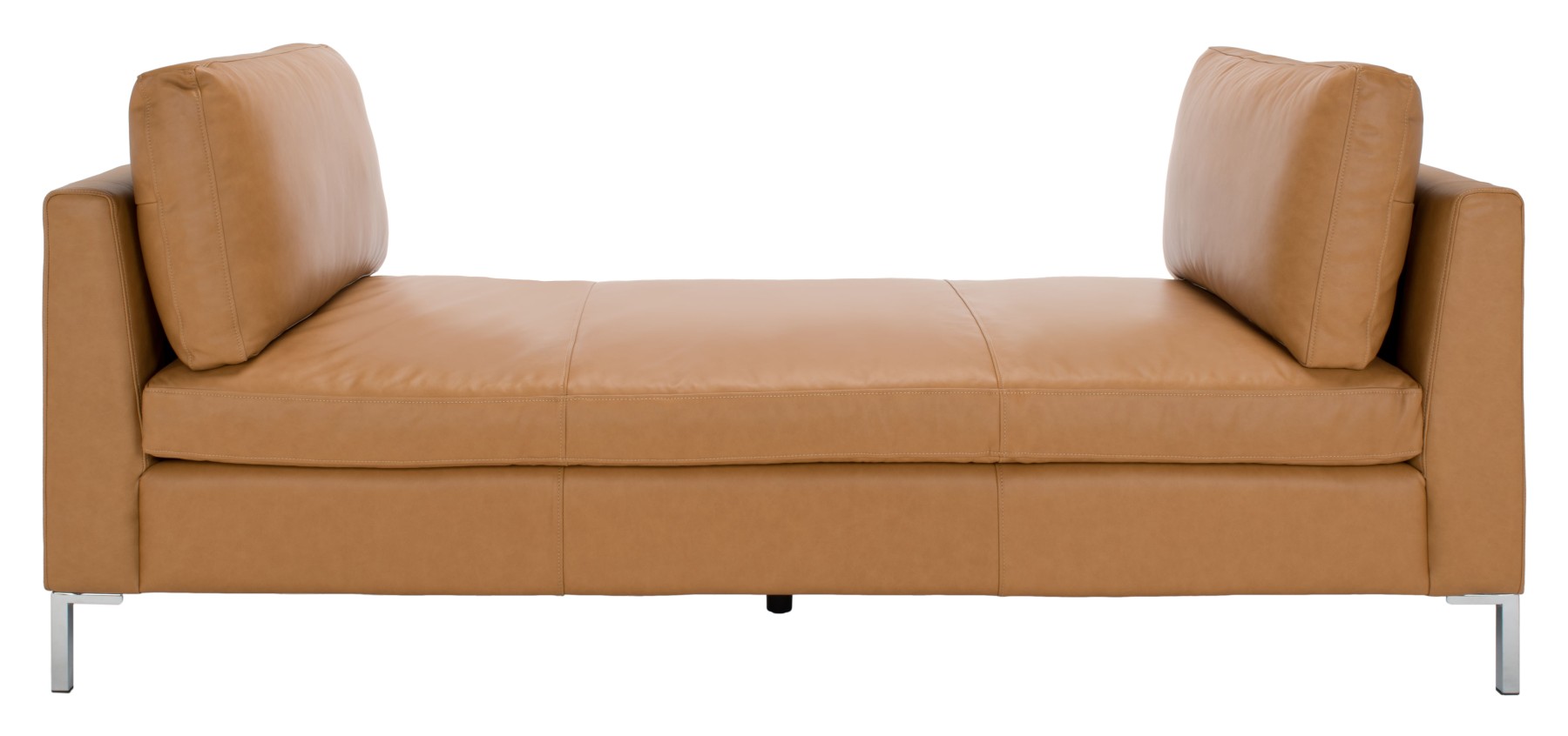 Chic and cosmopolitan, this Tatianna Bench celebrates luxurious lounging. Tatianna’s channel tufted sides add eye-catching intrigue to its plush light brown cushions in 100% top grain leather, making for elegant modern décor. Slim silver metal legs give a shimmering touch.