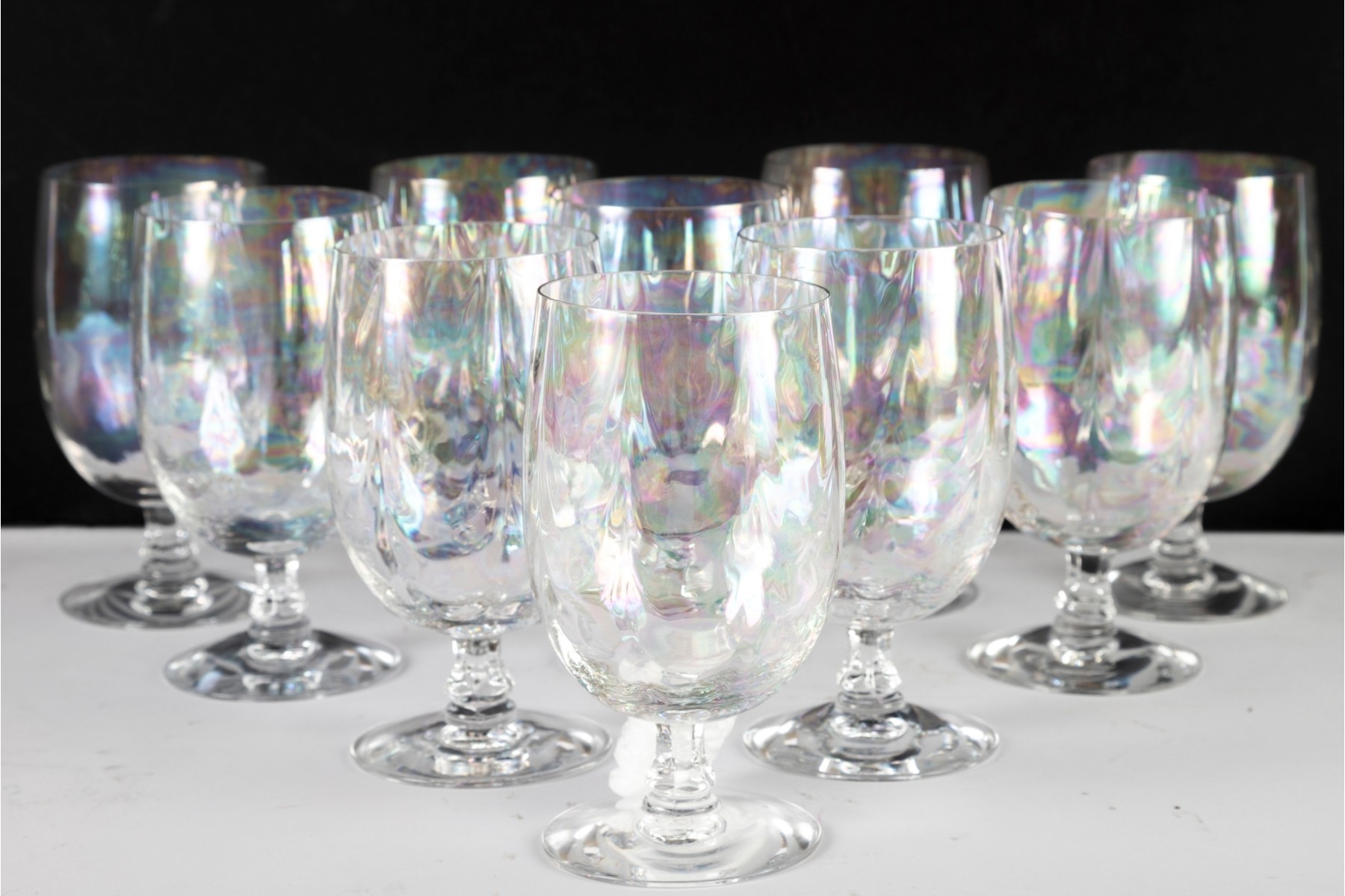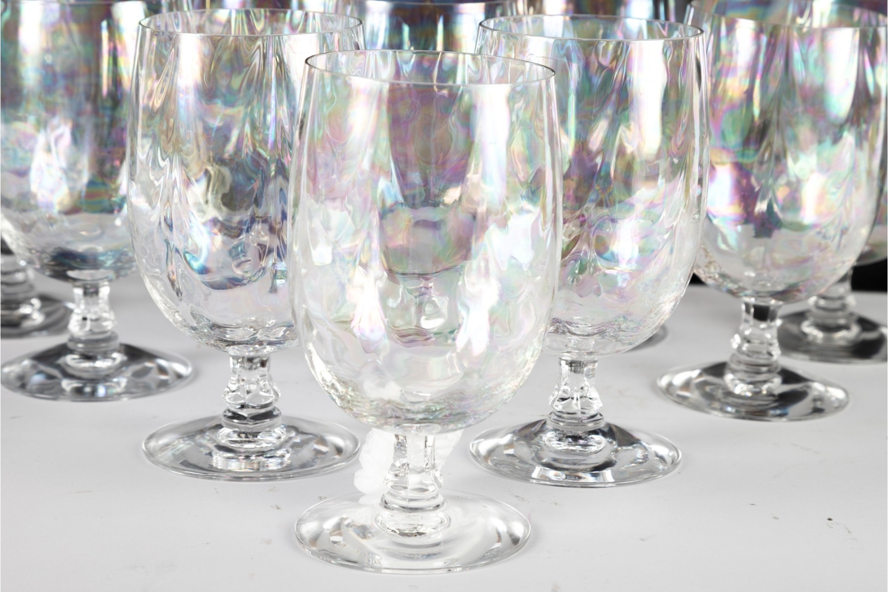 Elegant set of ten Fostoria "Firelight" iced tea glasses, showcasing the timeless charm of this beloved mid-century glassware pattern.