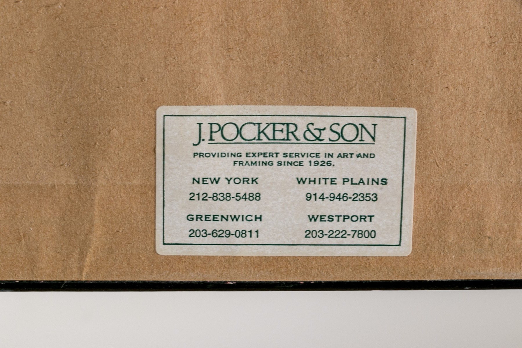 Presented glazed, with a gilt trimmed green mat within a J. Pocker gilt frame.