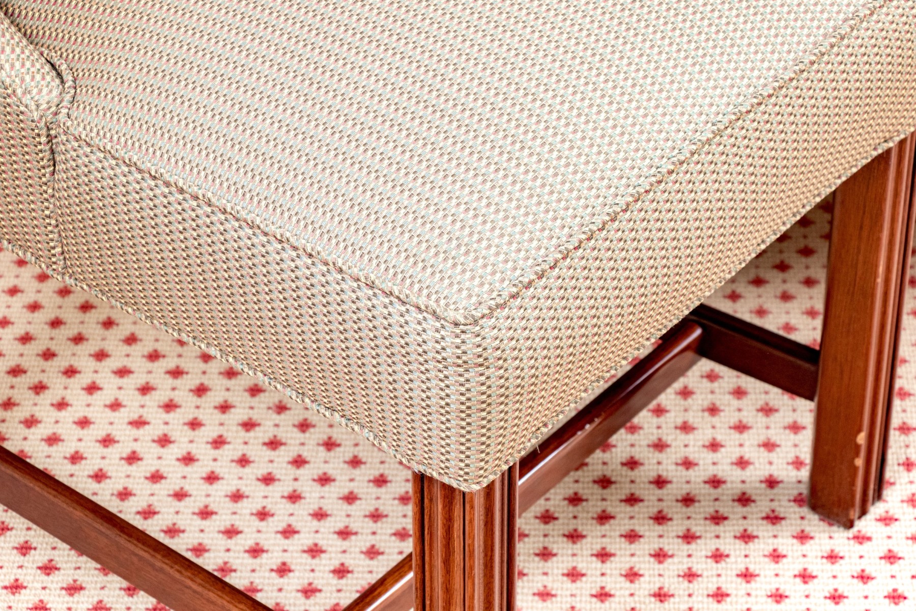 Good overall, upholstery slightly sunned with gentle wear to the piped trim commensurate with some age and modest use.