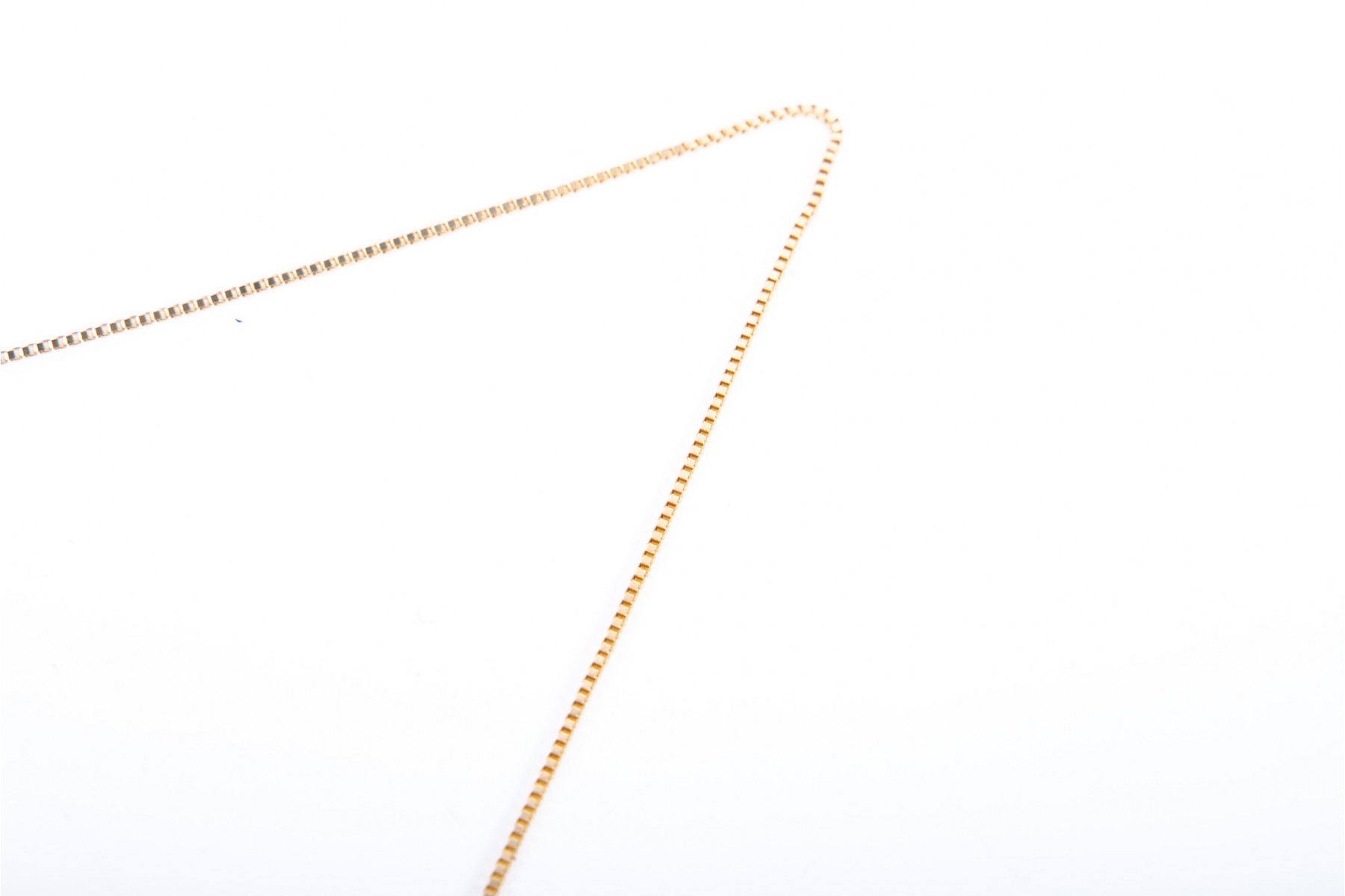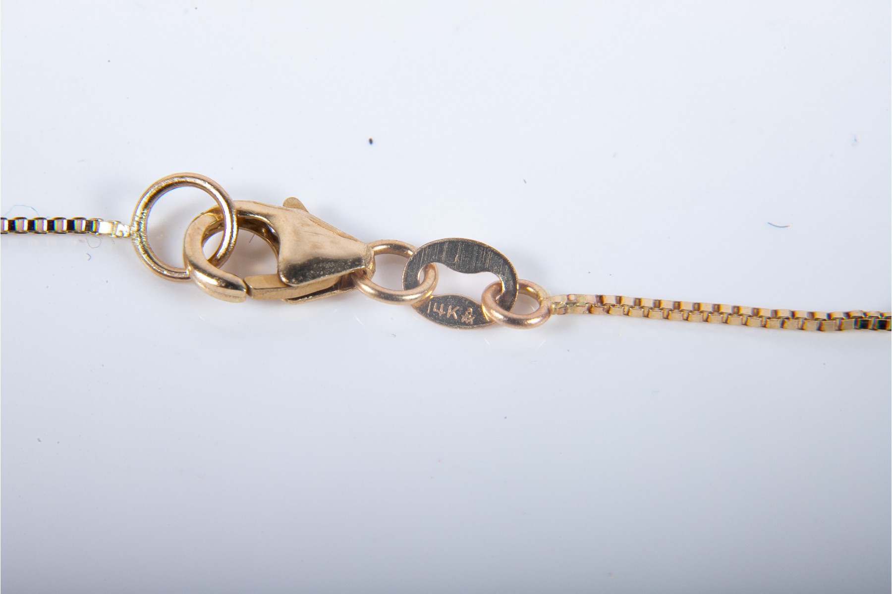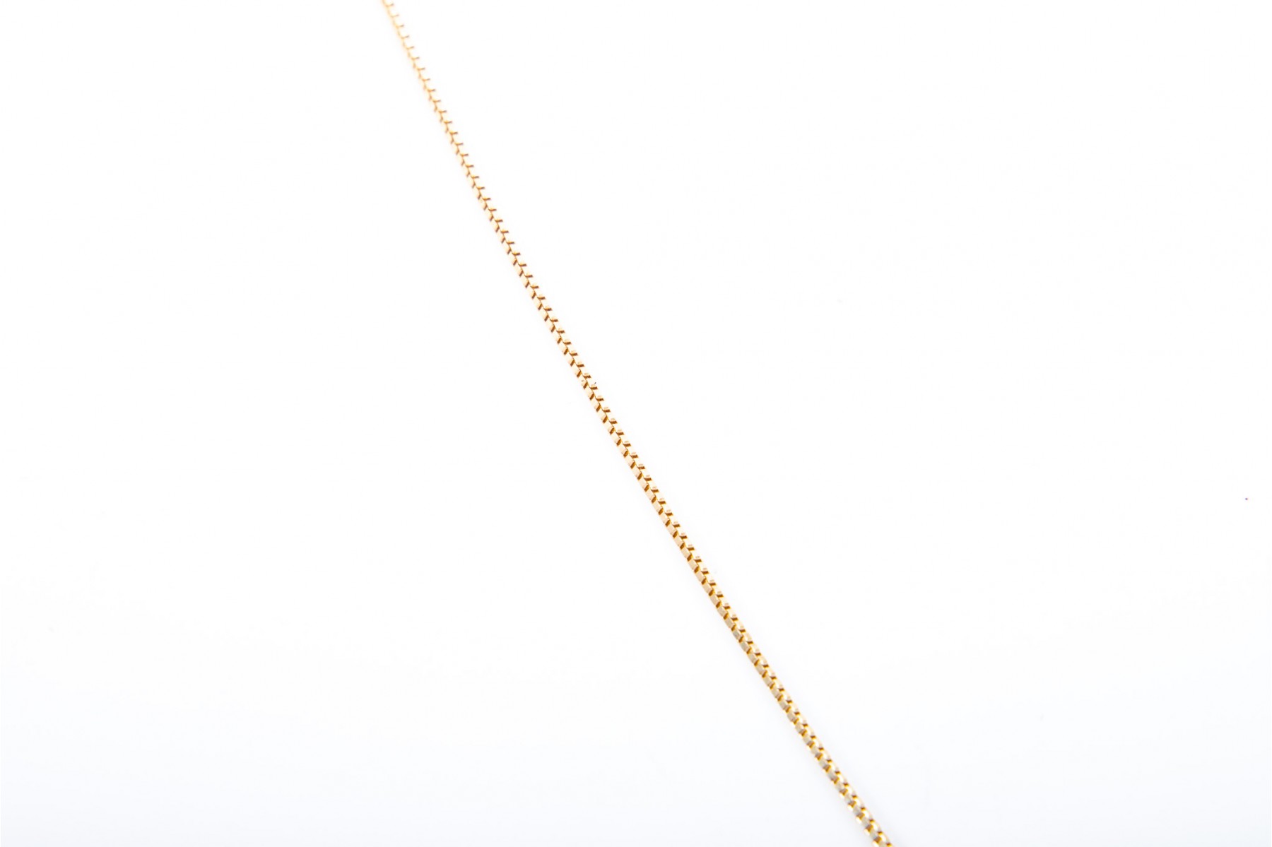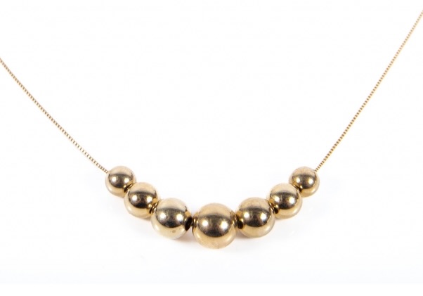 The Danbury Mint yellow gold box chain necklace displaying an elegant graduating arrangement of spherical beads. Accompanied by a black velvet display box from The Danbury Mint.