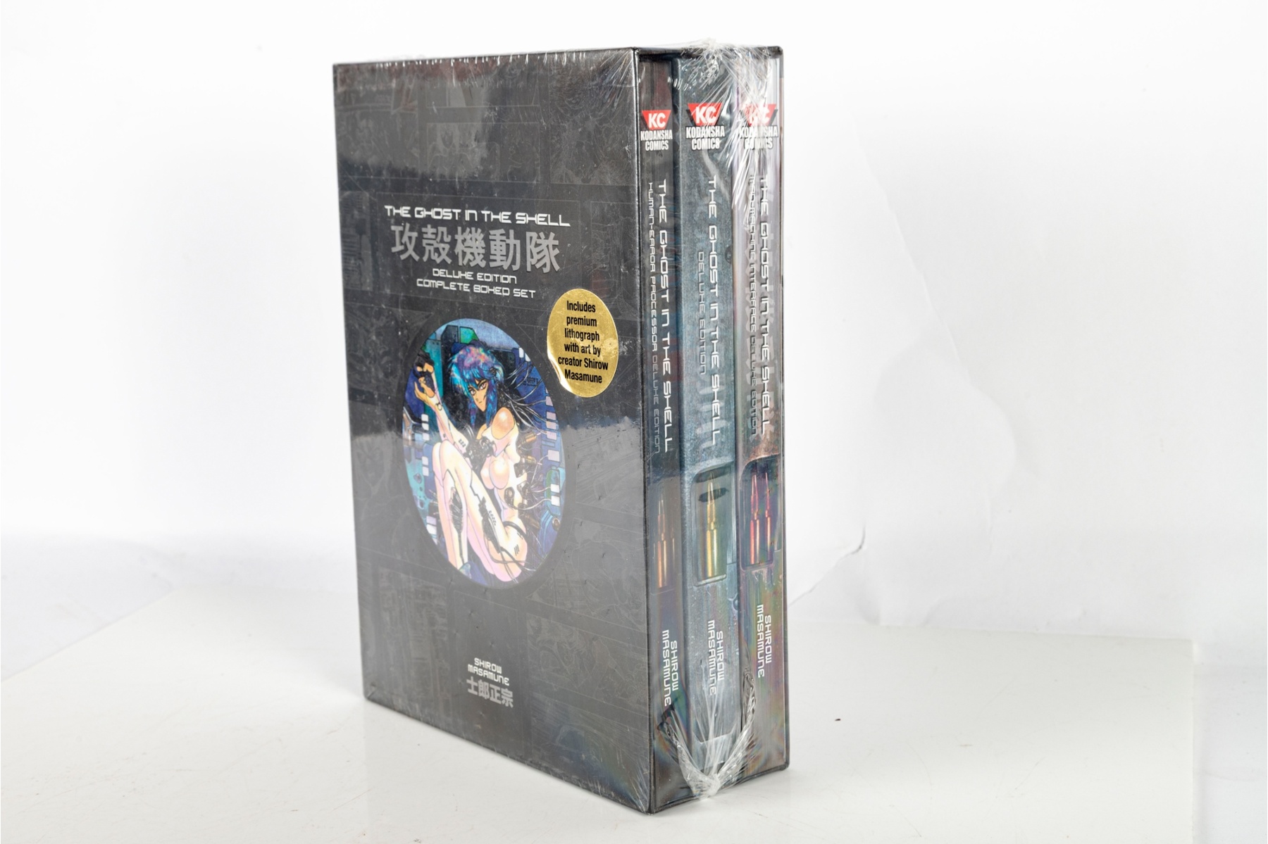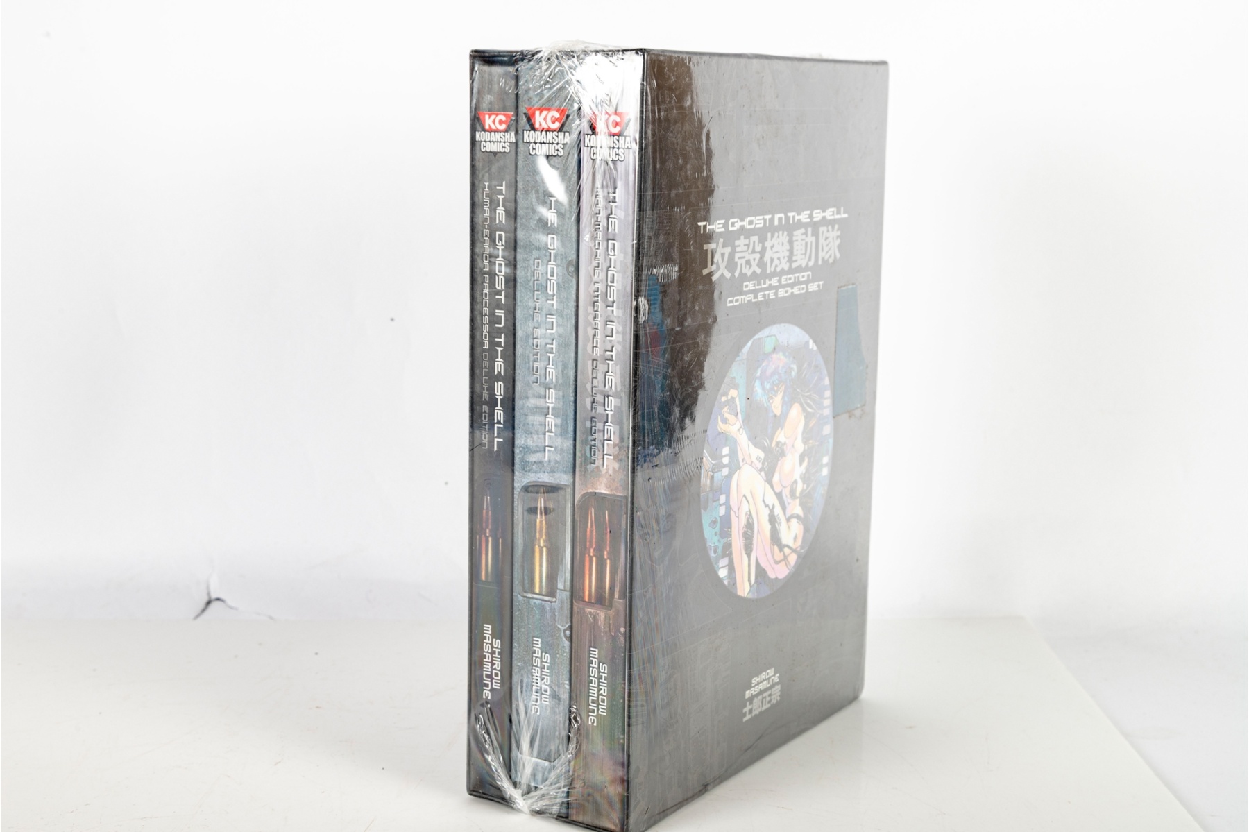 Deluxe three-volume boxed set of The Ghost in the Shell manga series by Shirow Masamune, published by Kodansha Comics. This complete boxed edition includes: