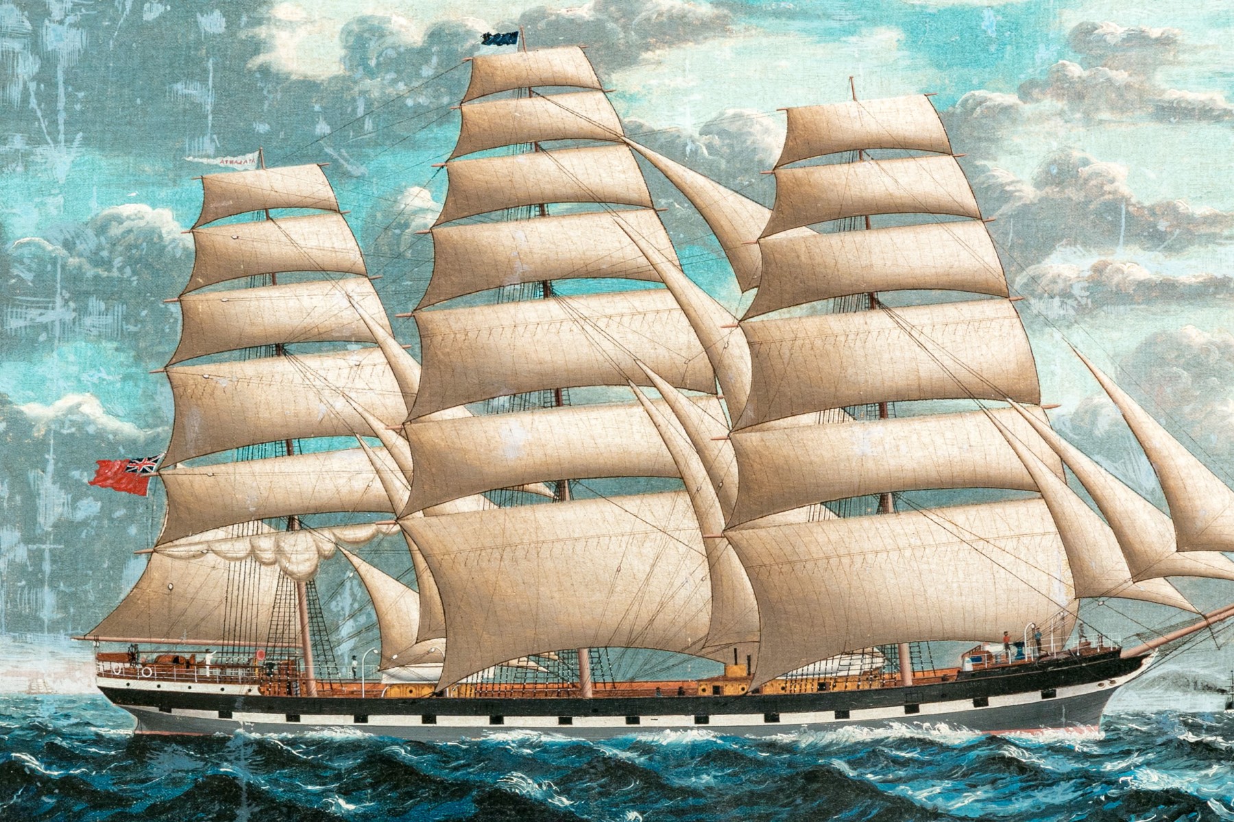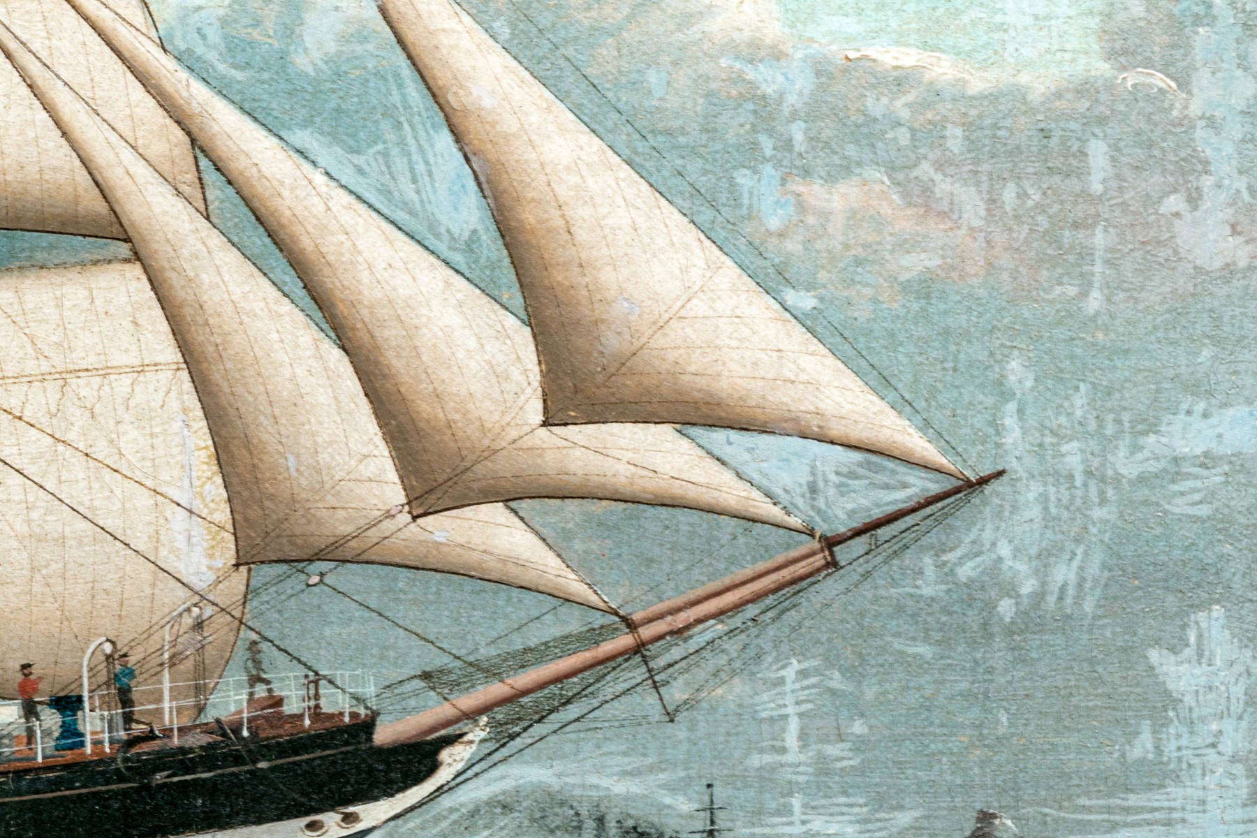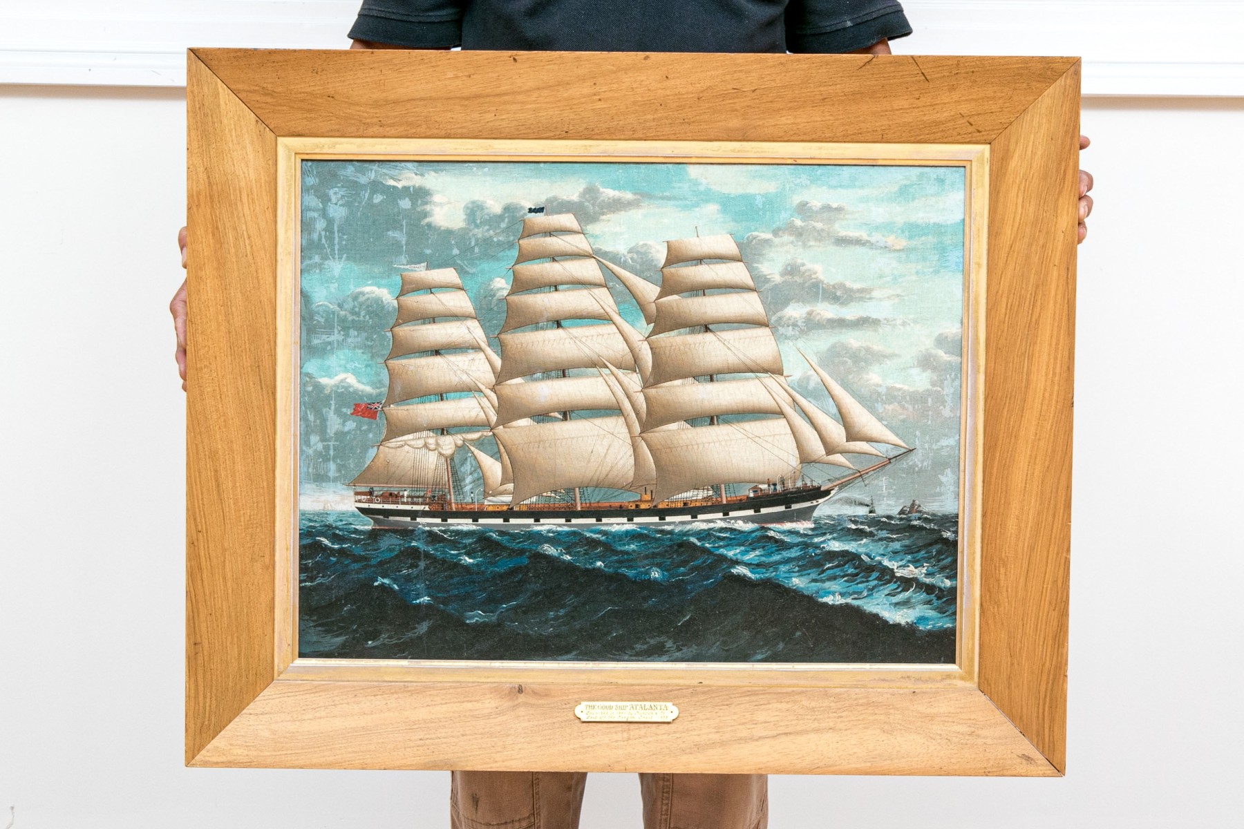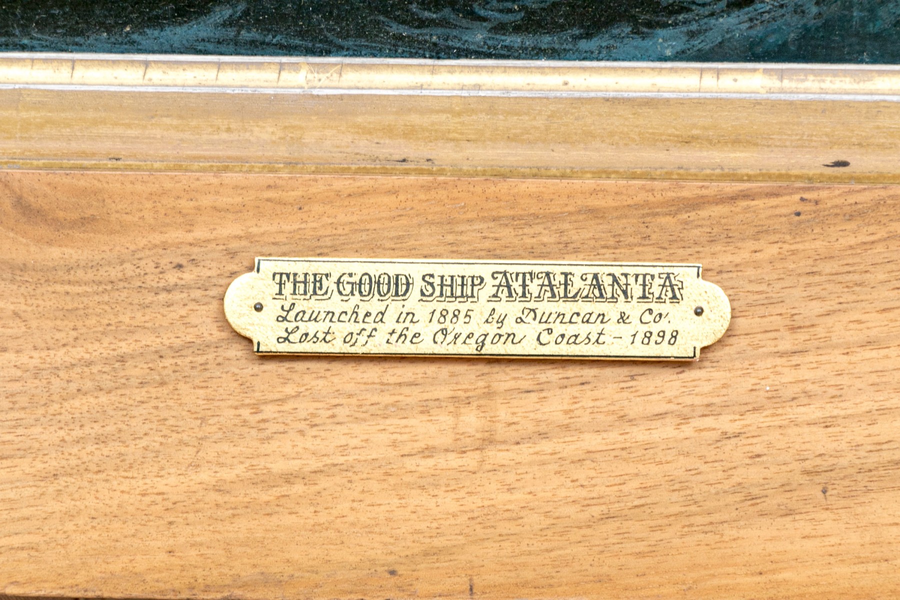 Unsigned. Art referenced " The Good Ship Atalanta, launched in 1885 by Duncan & Co. Last off the Oxegon Coast-1898" on plate.