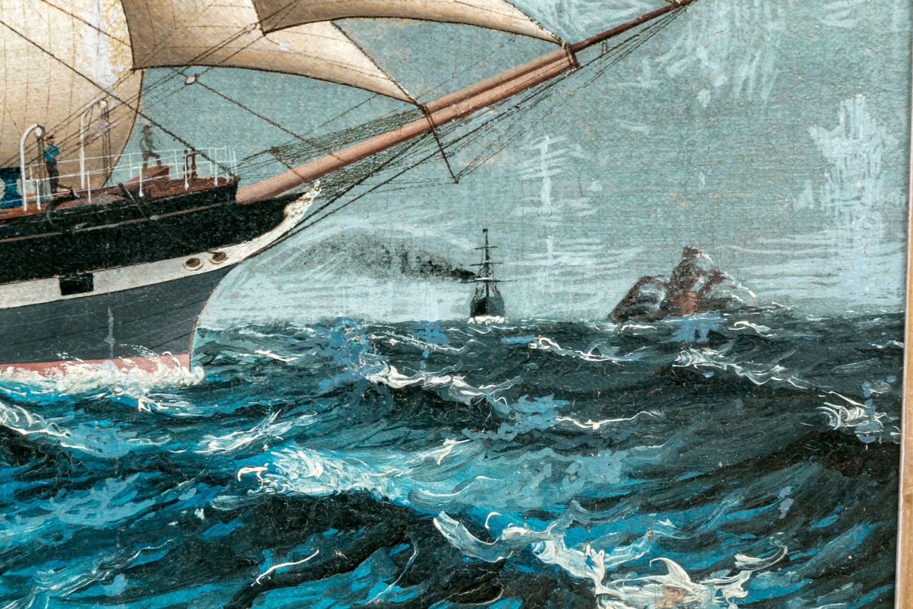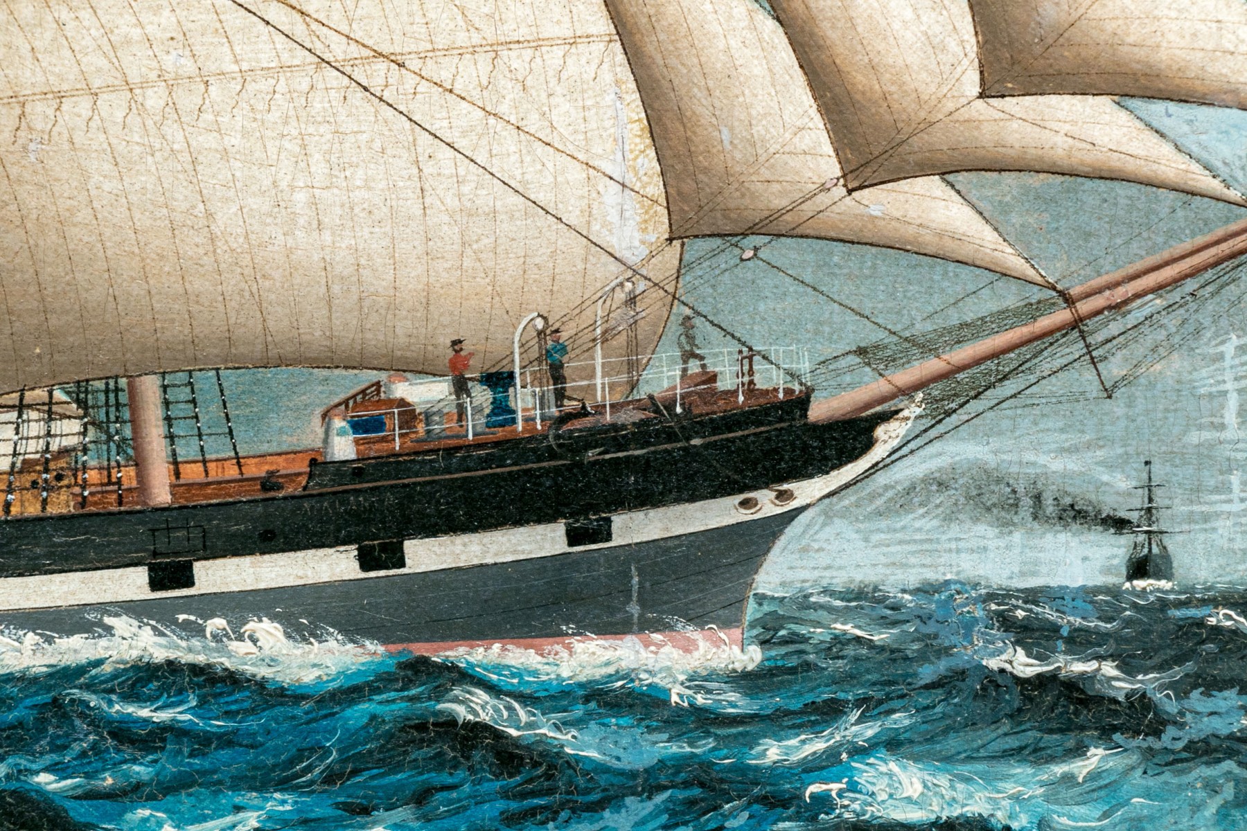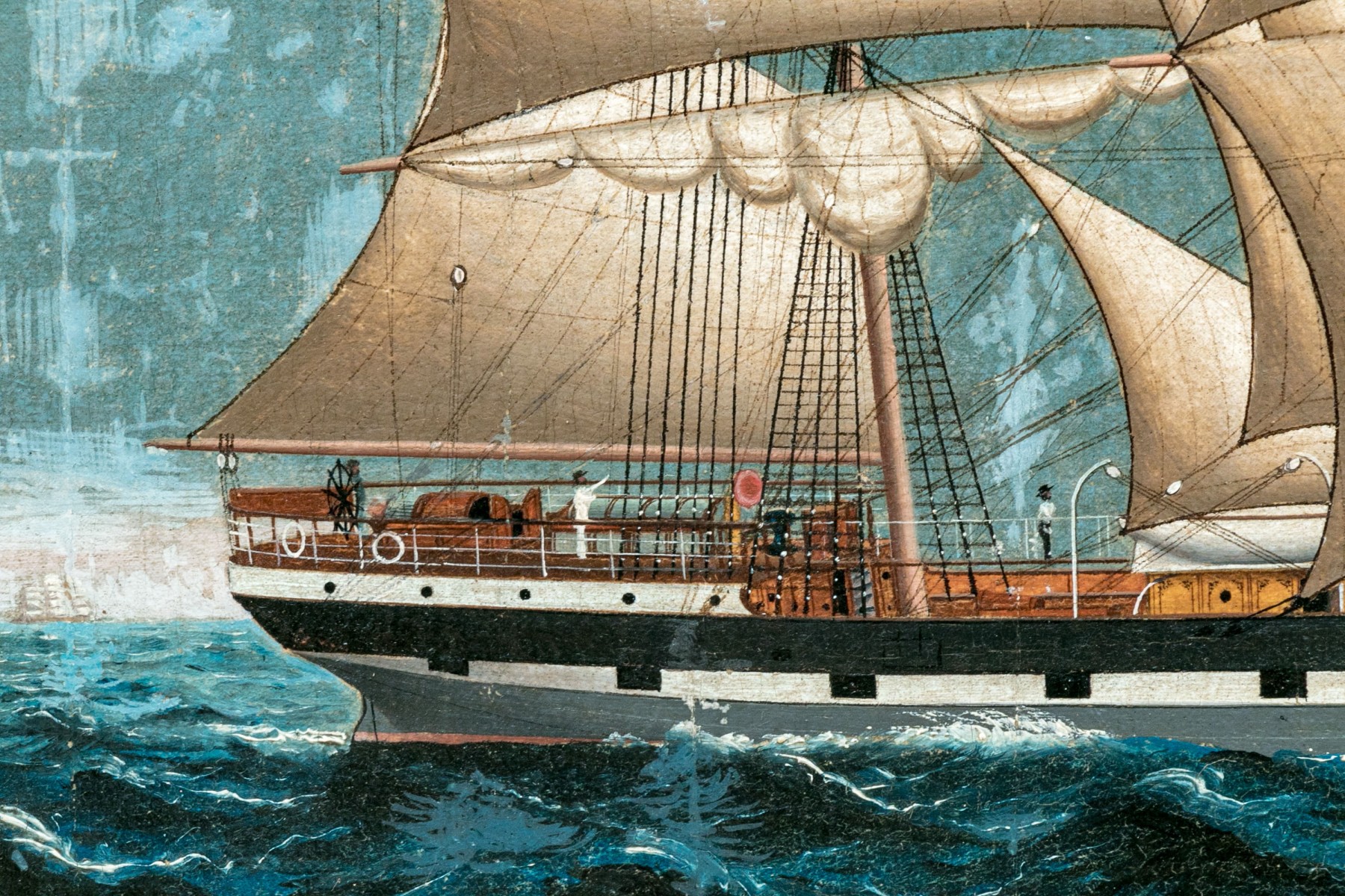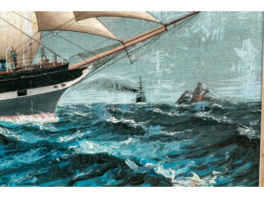 Unsigned. Art referenced " The Good Ship Atalanta, launched in 1885 by Duncan & Co. Last off the Oxegon Coast-1898" on plate.