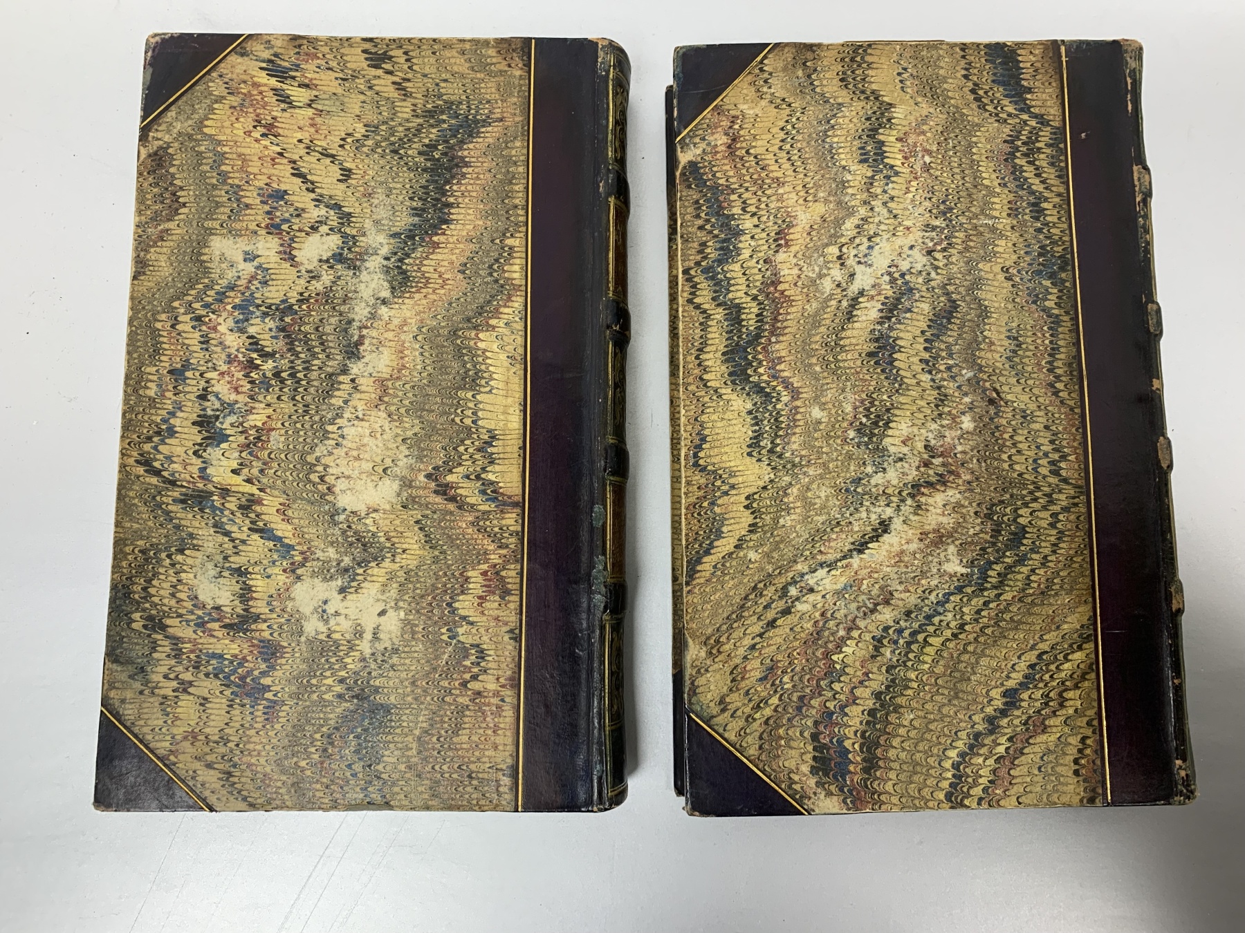 Condition: wear to spine and sides of spine, dulling to corners, wear to marbled boards and edges, bookplates inside front board and fly page, foxing/discoloration to front fly pages and illustration, map. Binding tight, book square.