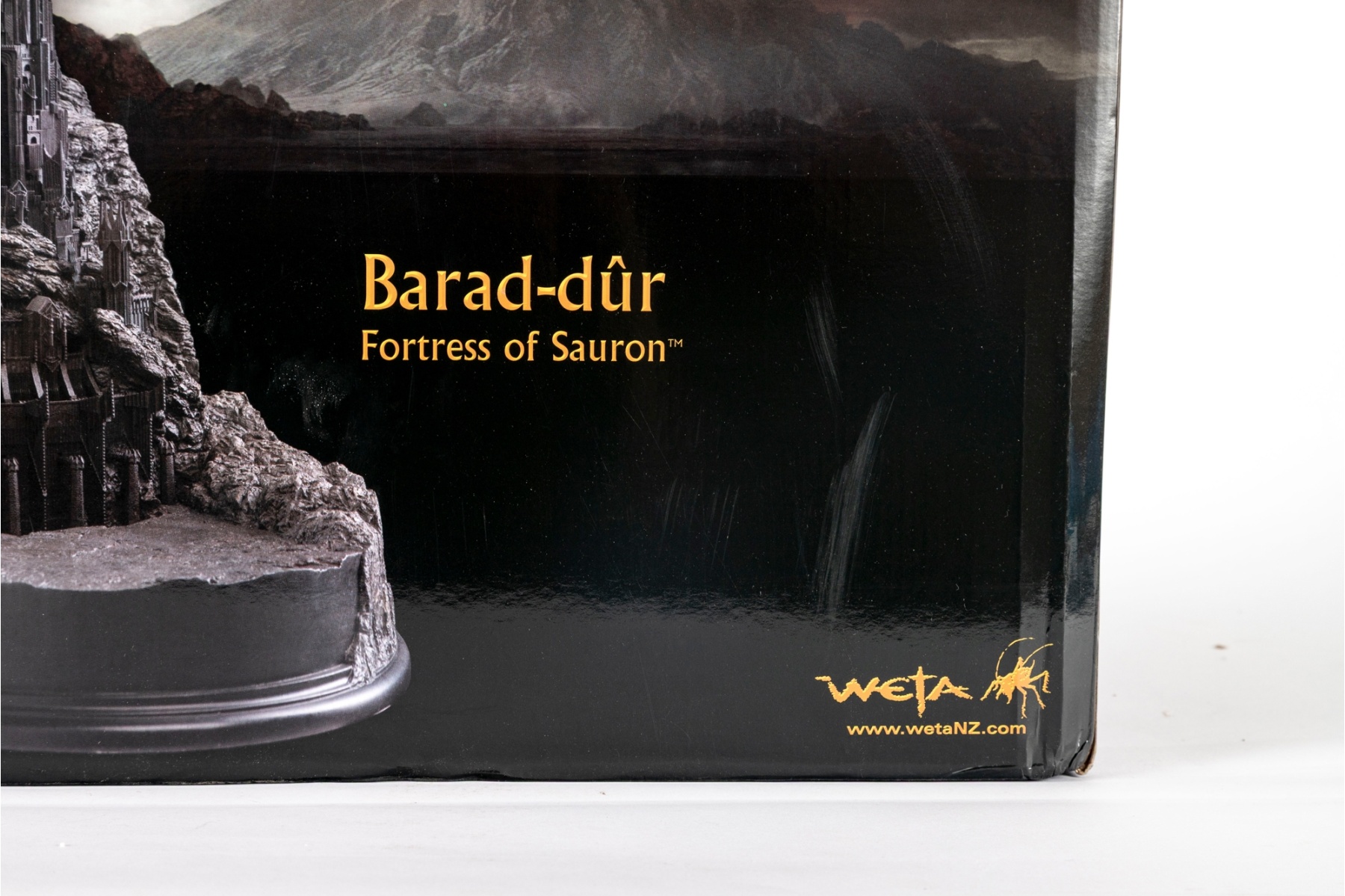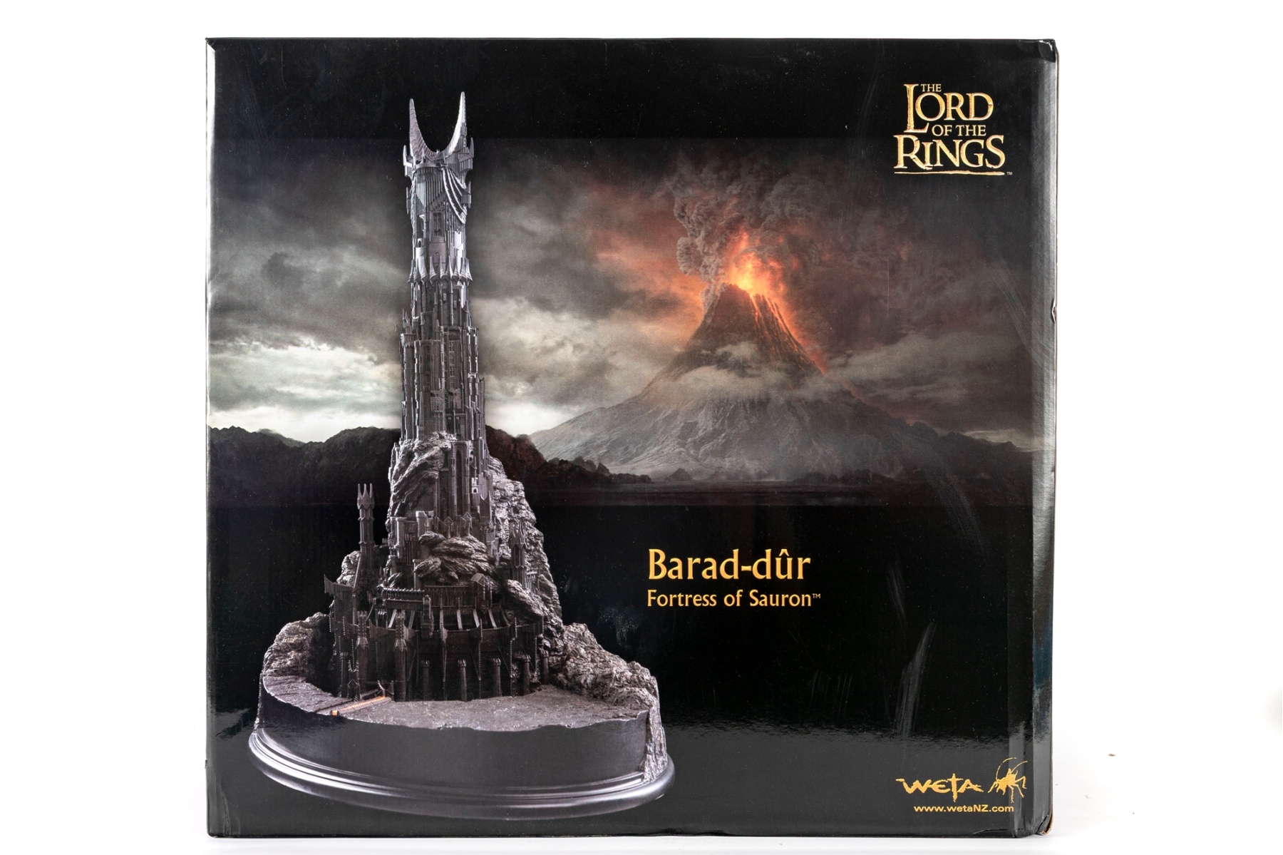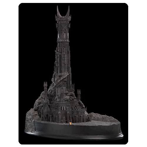 From Weta Workshop, creators of the original film props and miniatures for The Lord of the Rings trilogy, comes this breathtaking Barad-dûr – Fortress of Sauron collectible environment. Expertly sculpted and hand-painted, this detailed polystone model captures the dark majesty of Sauron’s black tower rising ominously over Mordor, with Mount Doom erupting in the distance.