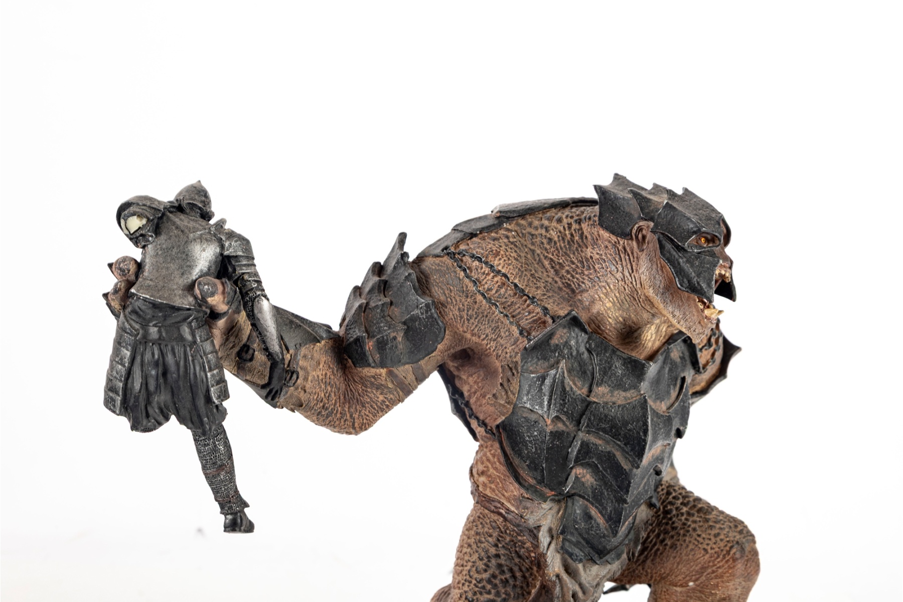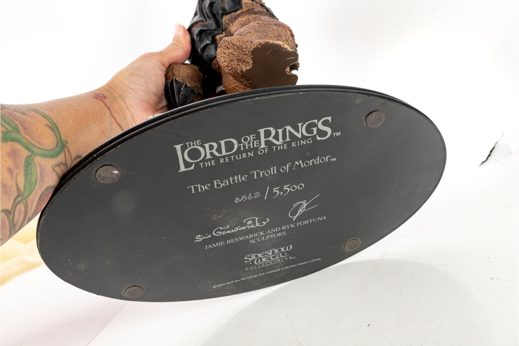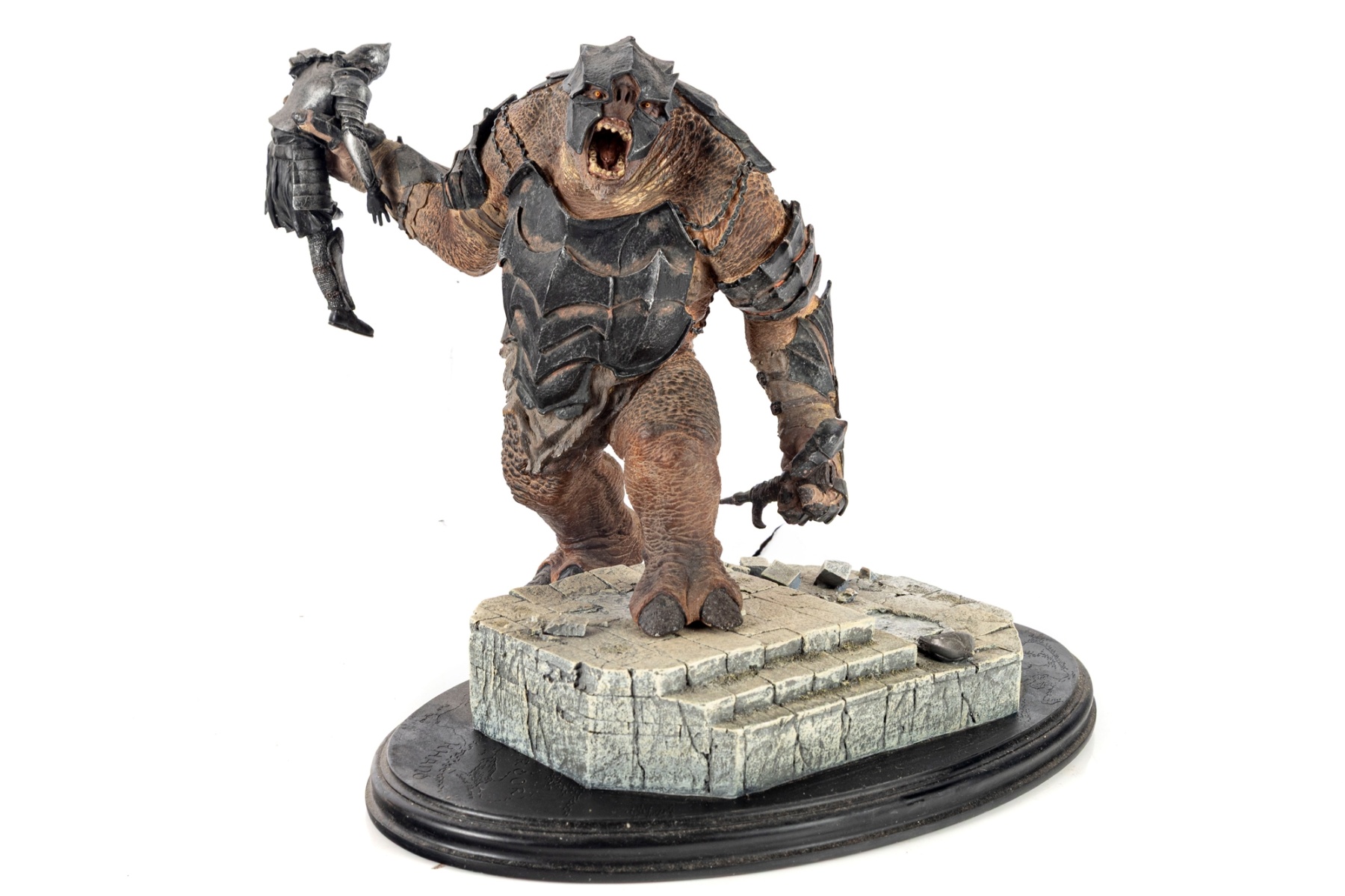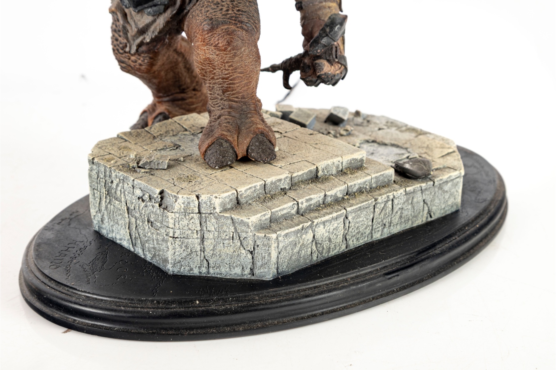 Limited edition The Lord of the Rings: The Return of the King collectible statue titled “The Battle Troll of Mordor”, numbered 0582/5500, produced by Sideshow Weta Collectibles.