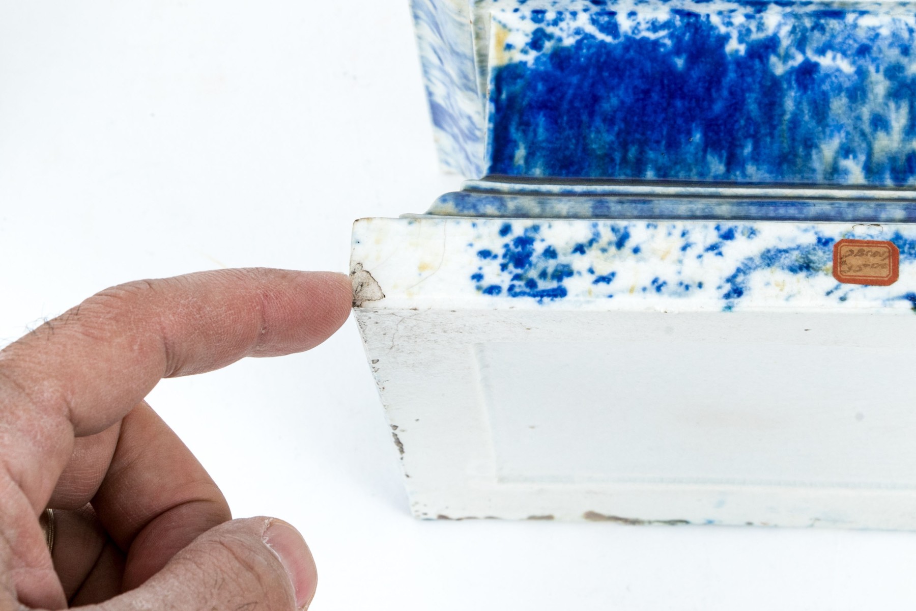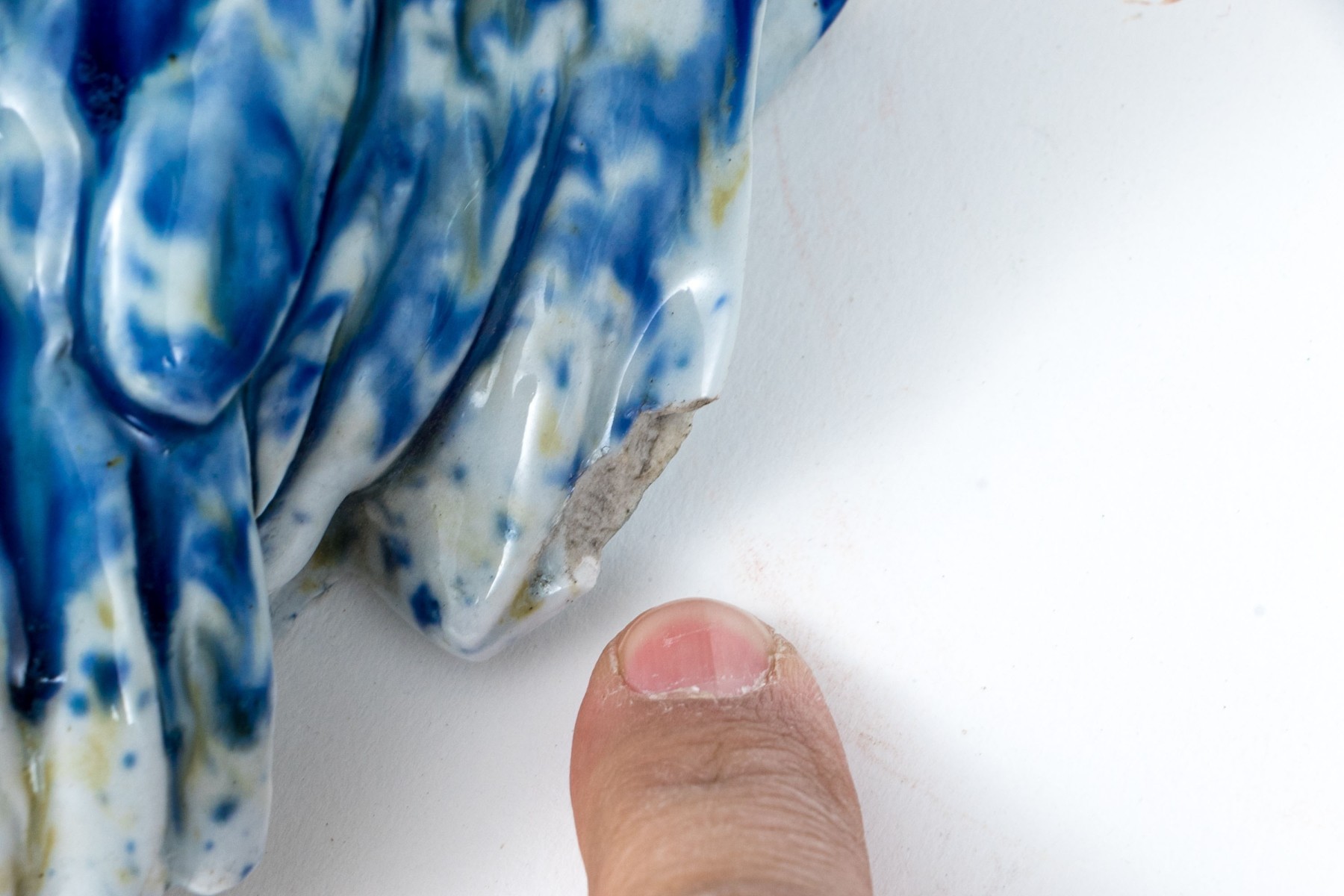 There are chips to the underfoot with losses of the bird in addition to chips and losses to the pedestal notable around the mouth lip.