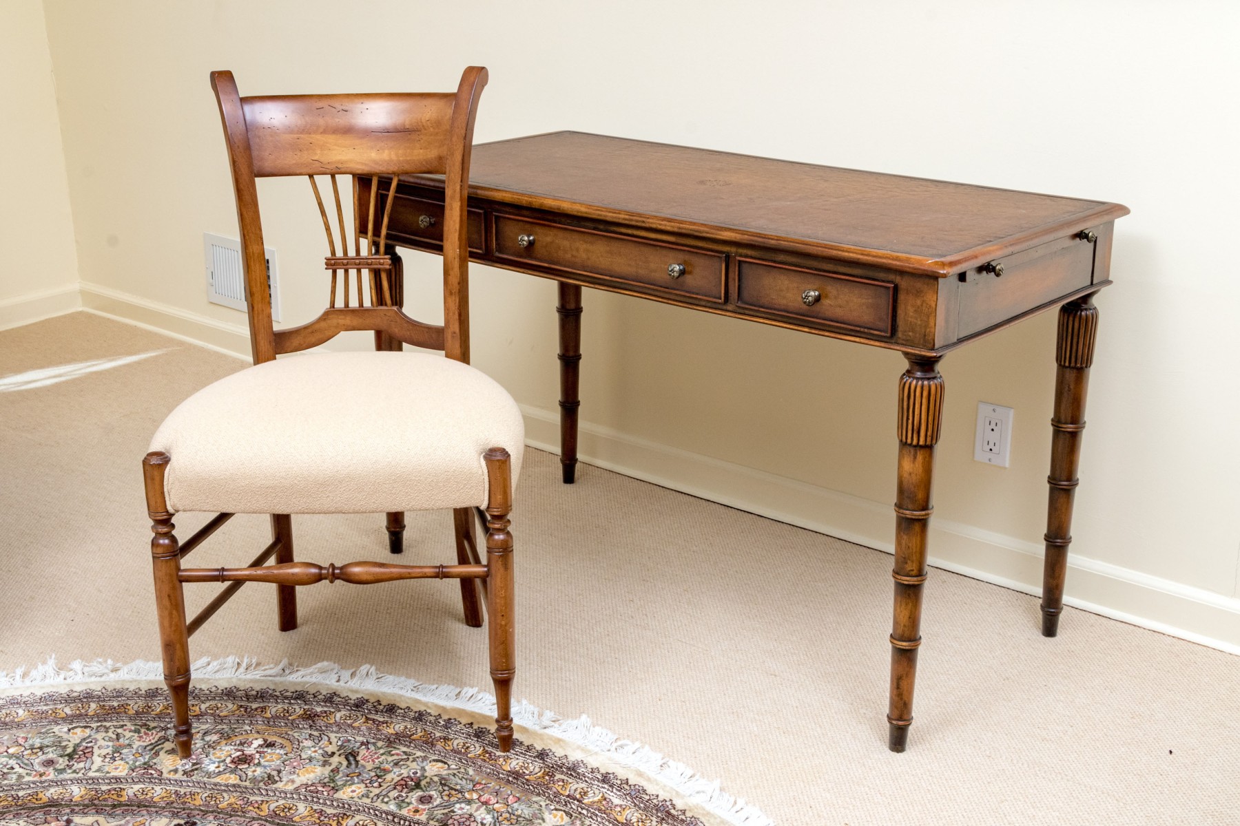 Theodore Alexander Chinoiserie Walnut And Leather Writing Desk With Baker Chair #327185. Black Rock Galleries provides high end estate liquidation services through online estate auctions and a 50,000 sq ft designer showroom. estate liquidator, estate sale, online auction, antiques, fine art, liquidation, clean outs, auction, consignment, interior design, fine jewelry, collectibles, appraisals, estate appraisals, estate services, decor, furniture, furniture consignment, antique center, consignment shop. We offer appraisal services and specialize in fine art, jewelry, antiques and decorative arts. Sell with us. Black Rock Galleries is the tri-state's largest estate liquidator serving New England and the greater New York City area. We are the trusted source for expert appraisals, auction services, estate sales, and consignments. Black Rock Galleries is the east coast's largest and most trusted estate liquidator, with locations in Connecticut, greater Boston, MA and Raleigh, NC, Fairfield, Southport, Apex, TX. We are the best source for expert appraisals, auction services, estate sales and consignments. We have served thousands of families and estates with compassion, professionalism and expertise. BRG works with attorneys, executors, realtors and families to bring the greatest return on personal and estate property in the current market. Our unique combination of services make us the easy choice to get the job done in a timely and stress-free manner. We are with you from the initial consultation to the final clean out. Our house-built online auction software platform offers clients a dynamic approach to liquidating their personal property. This venue is most successful in bringing the best return with the least amount of disruption for our clients. See our services page for a complete description of this offering. Theodore Alexander Chinoiserie Walnut And Leather Writing Desk With Baker Chair #327185