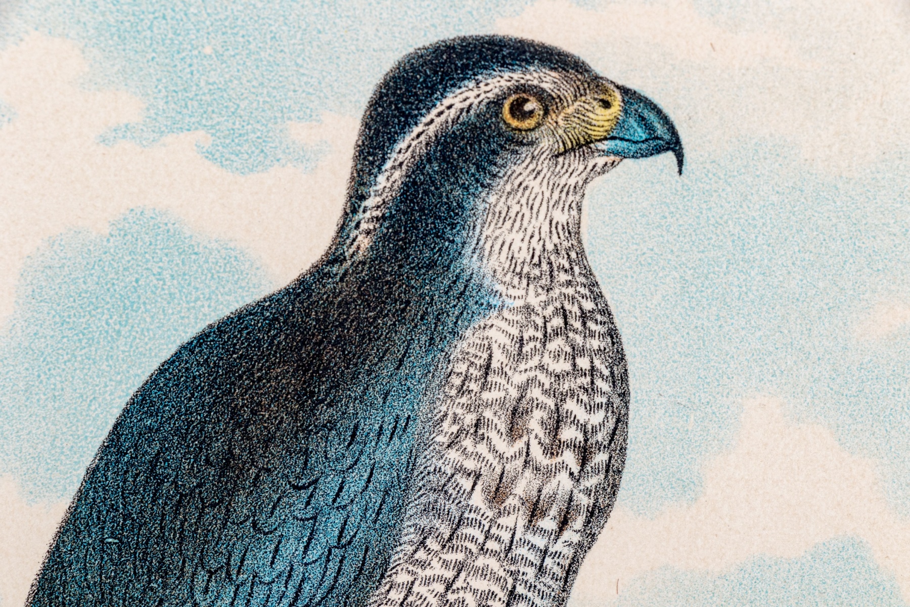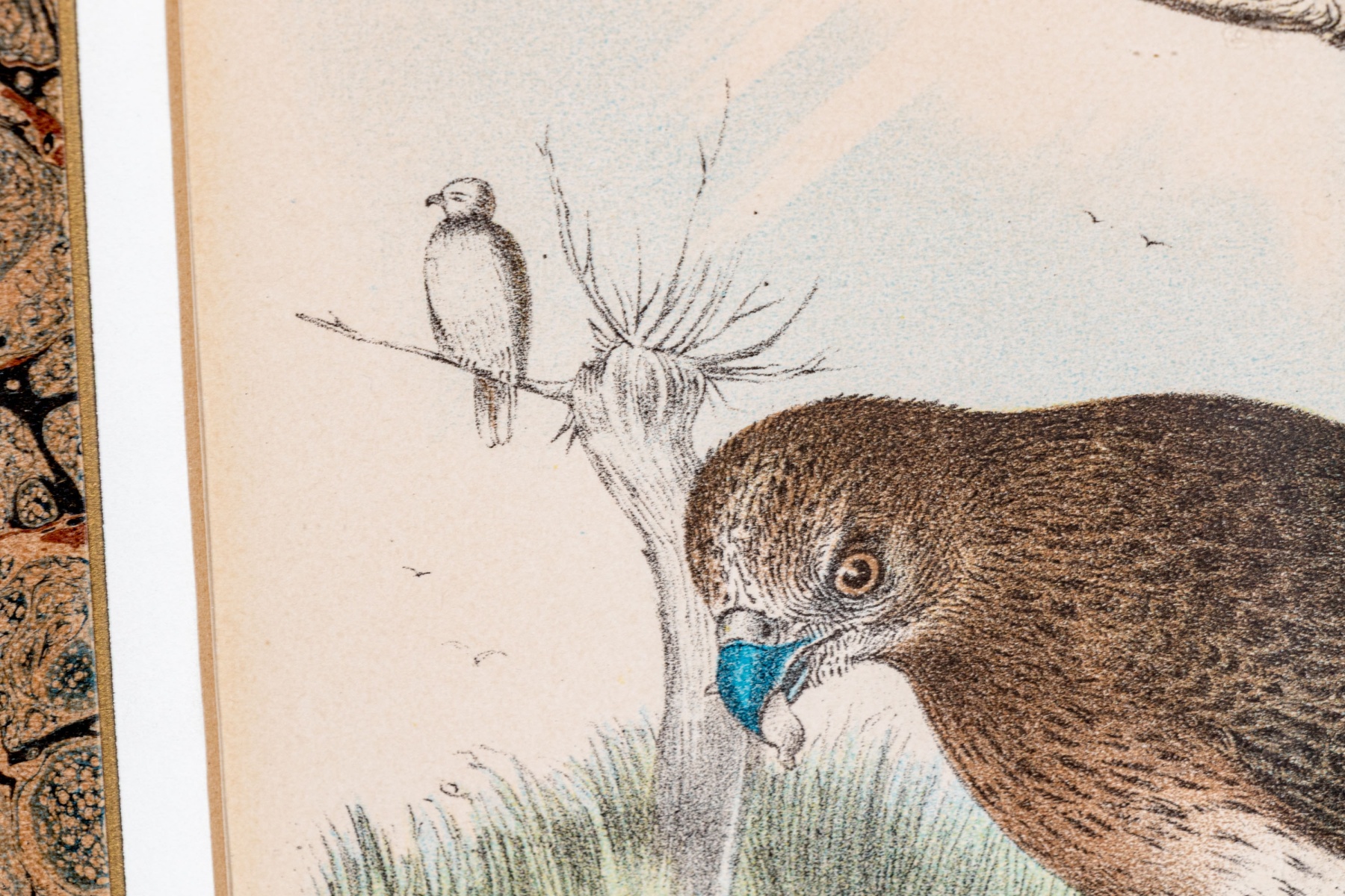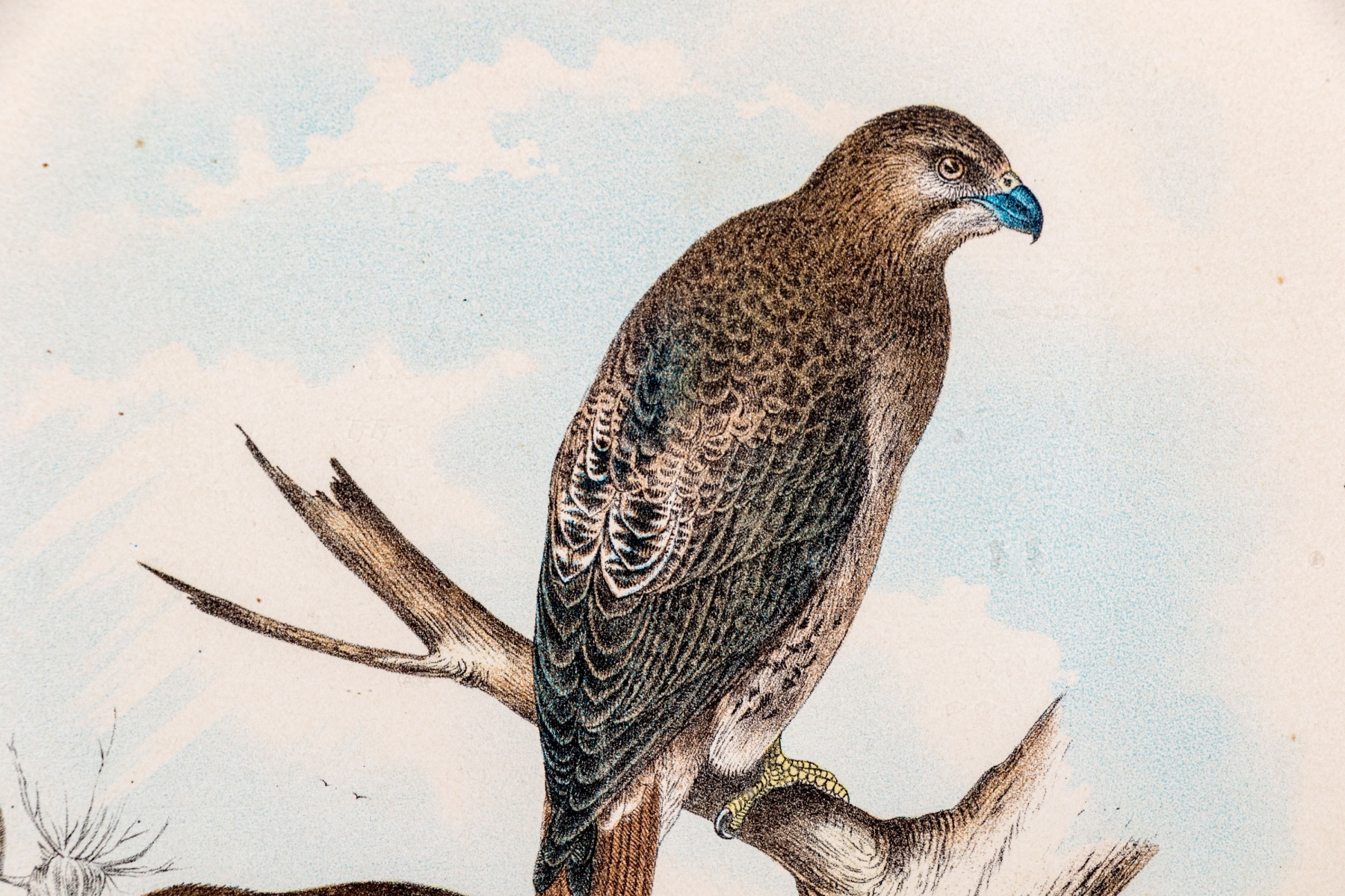A wonderful pair of hand-colored prints after the original artworks by Theodore Jasper (American, 1814-1897) "Ash-Colored or Black-Cap Hawk" and "The Red-Tailed Hawk (Buteo Borealis)" as seen in Jacob Studer (American, 1840-1904) "Popular Ornithology of North America." One print marked PL XX. And second plate marked PL. XXX to upper right.