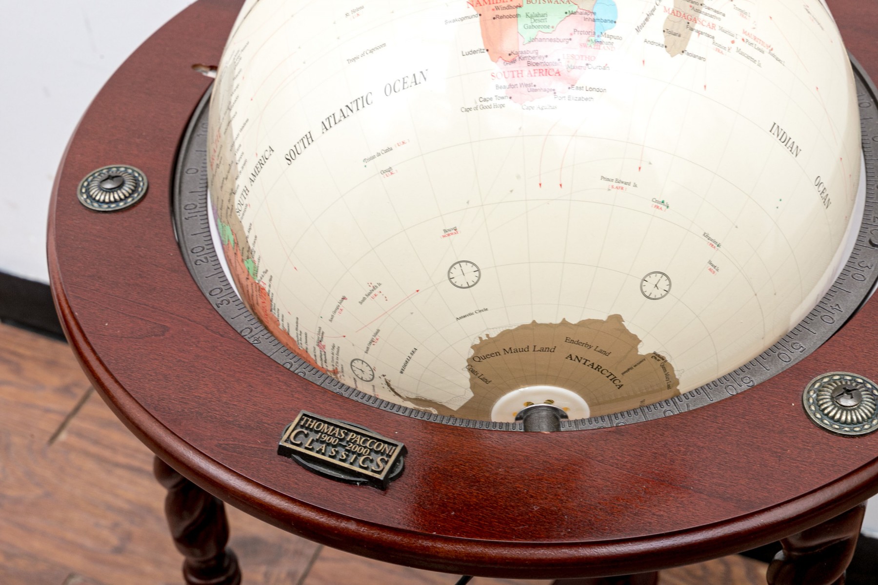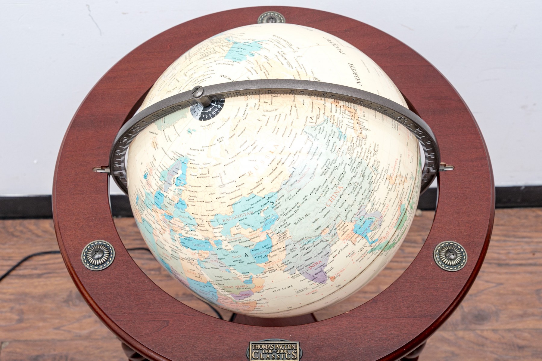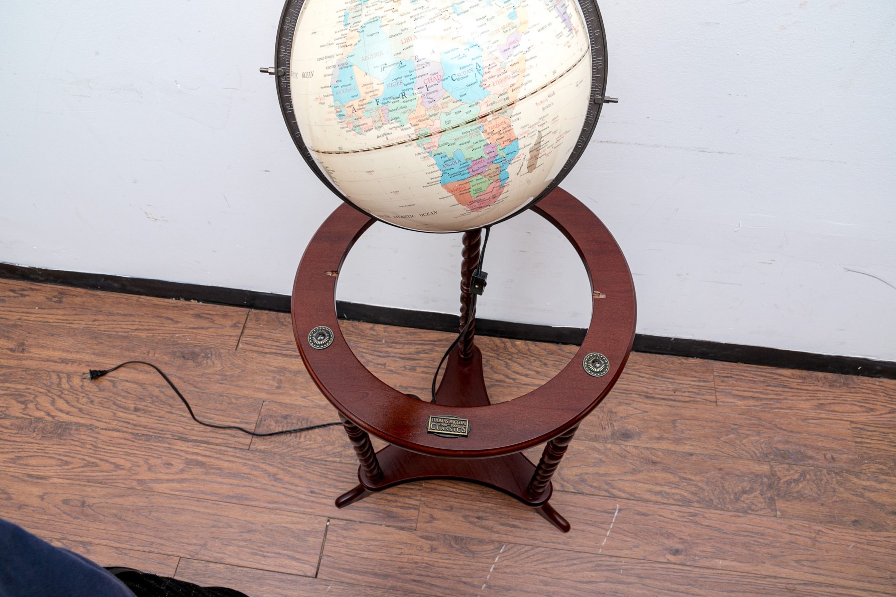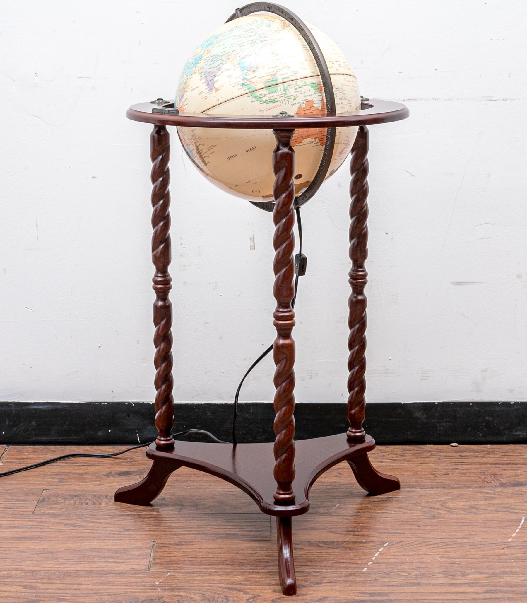 Thomas Pacconi 1900-2000 World Classics globe on a floor stand with elegant barley twist legs.