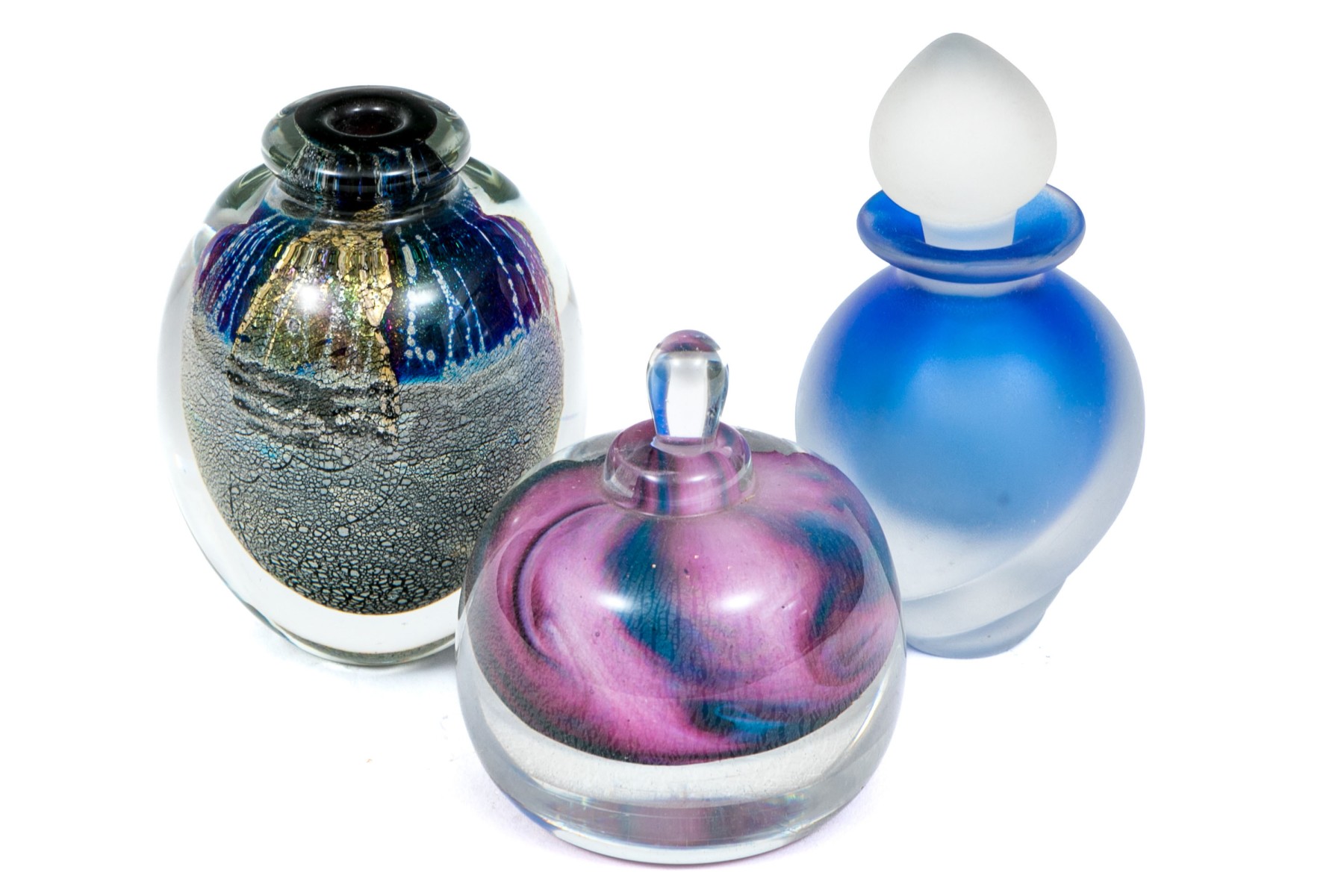 a blue, gray and gilt one signed indistinctly and dated 1981. Lacking the stopper.
