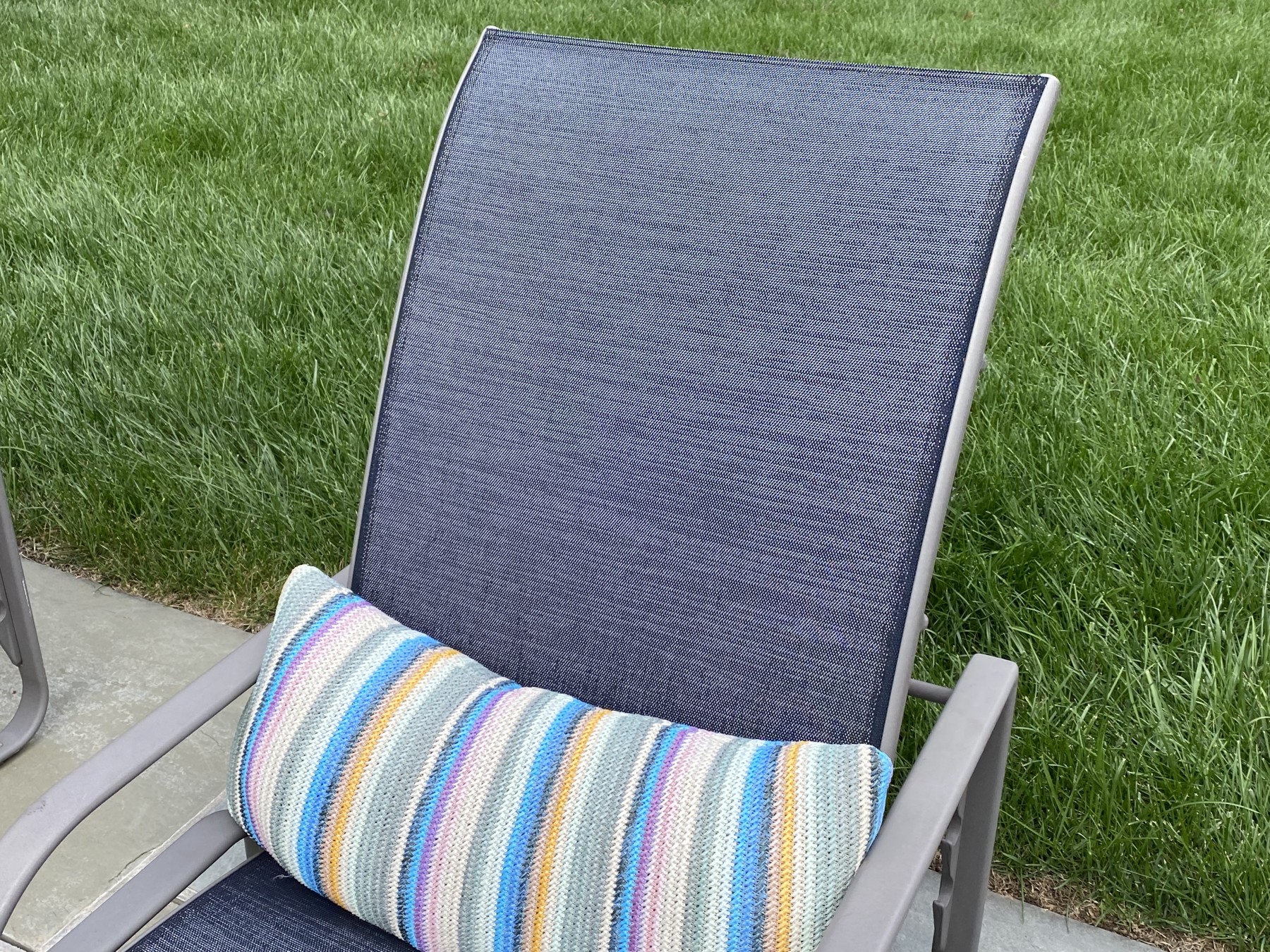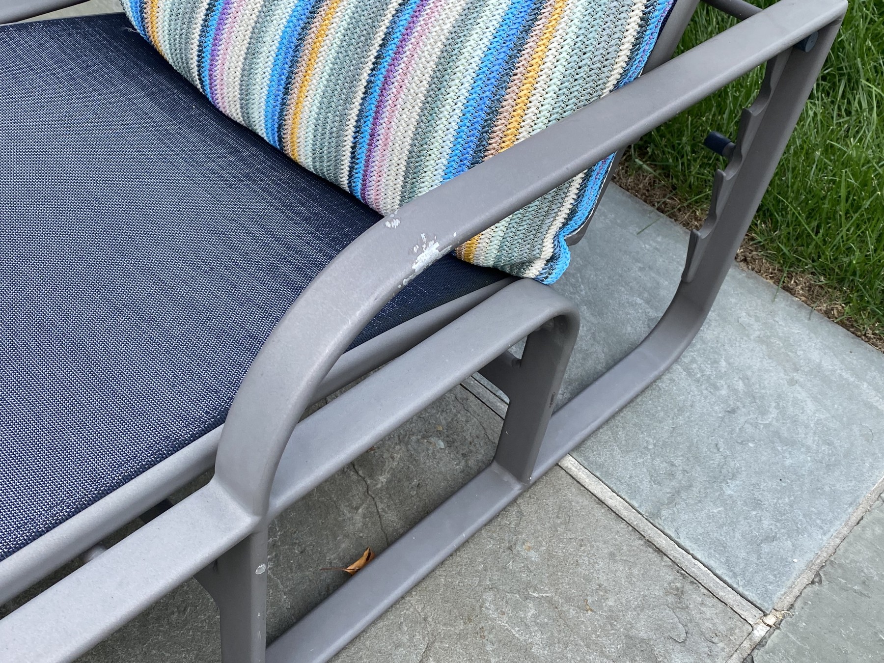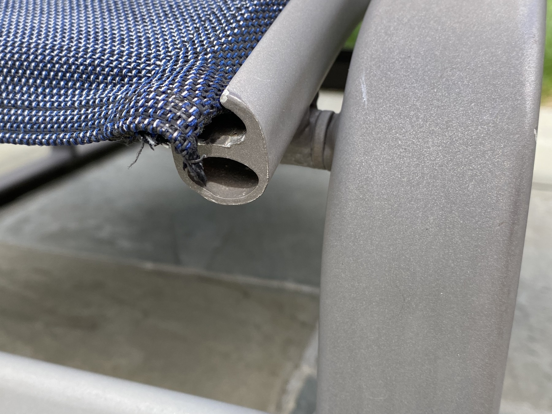 The webbing past its useable life - color bleached. One chaise is missing end cap. Minor losses and scratches to finish. Pleas review photos.