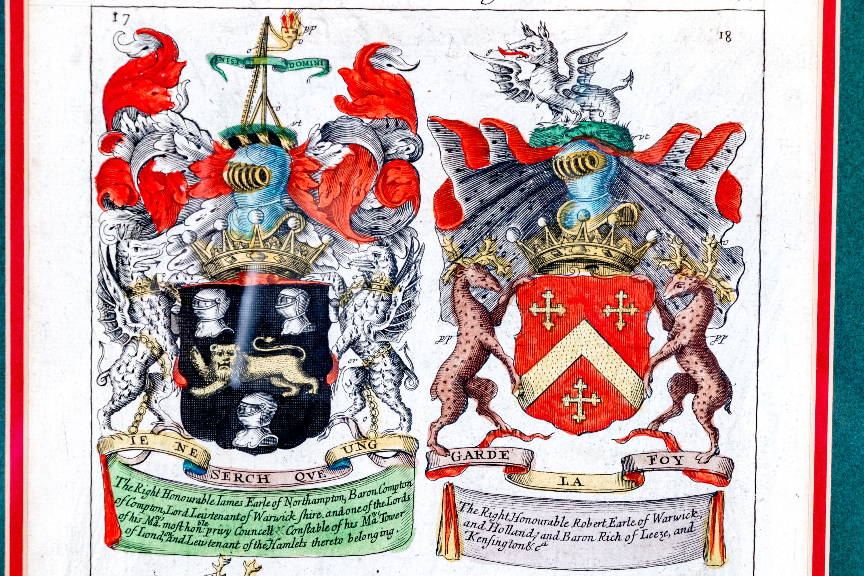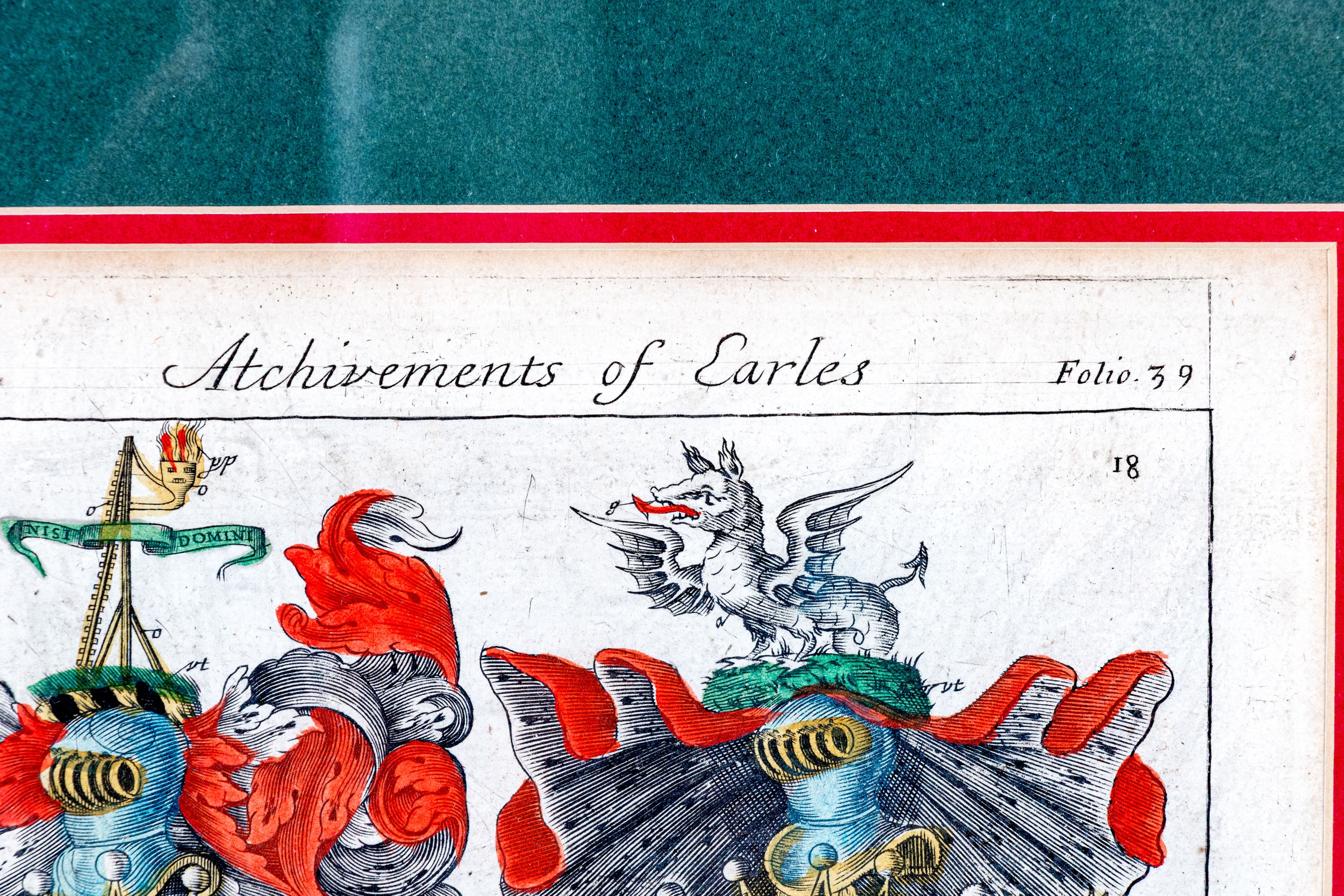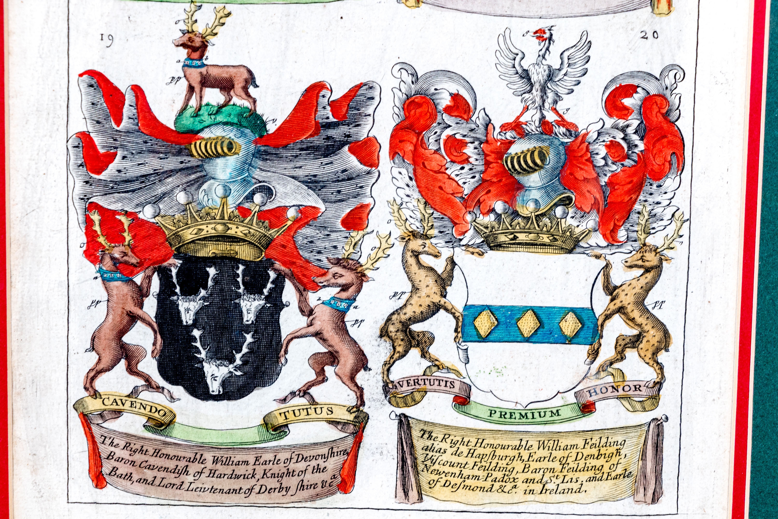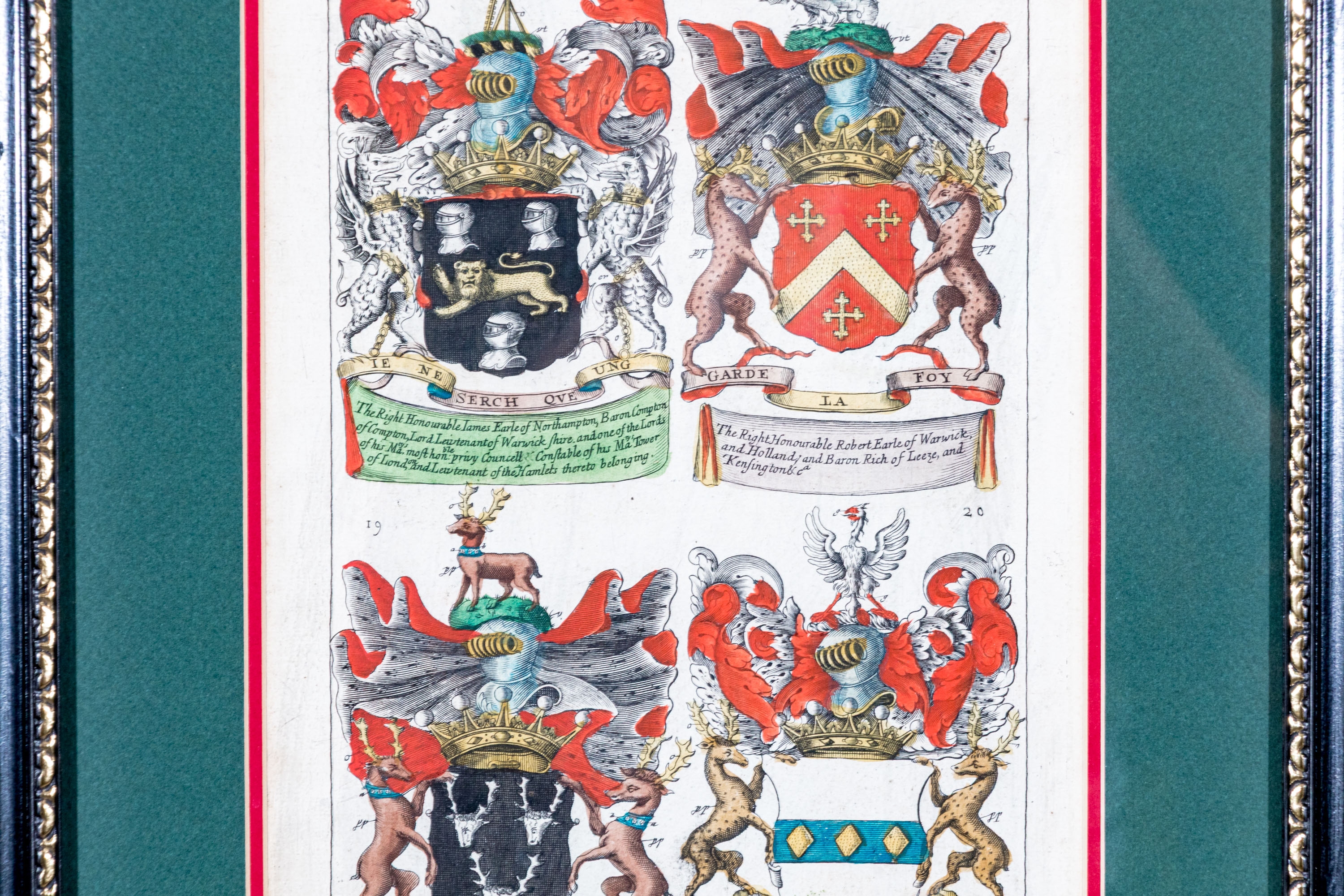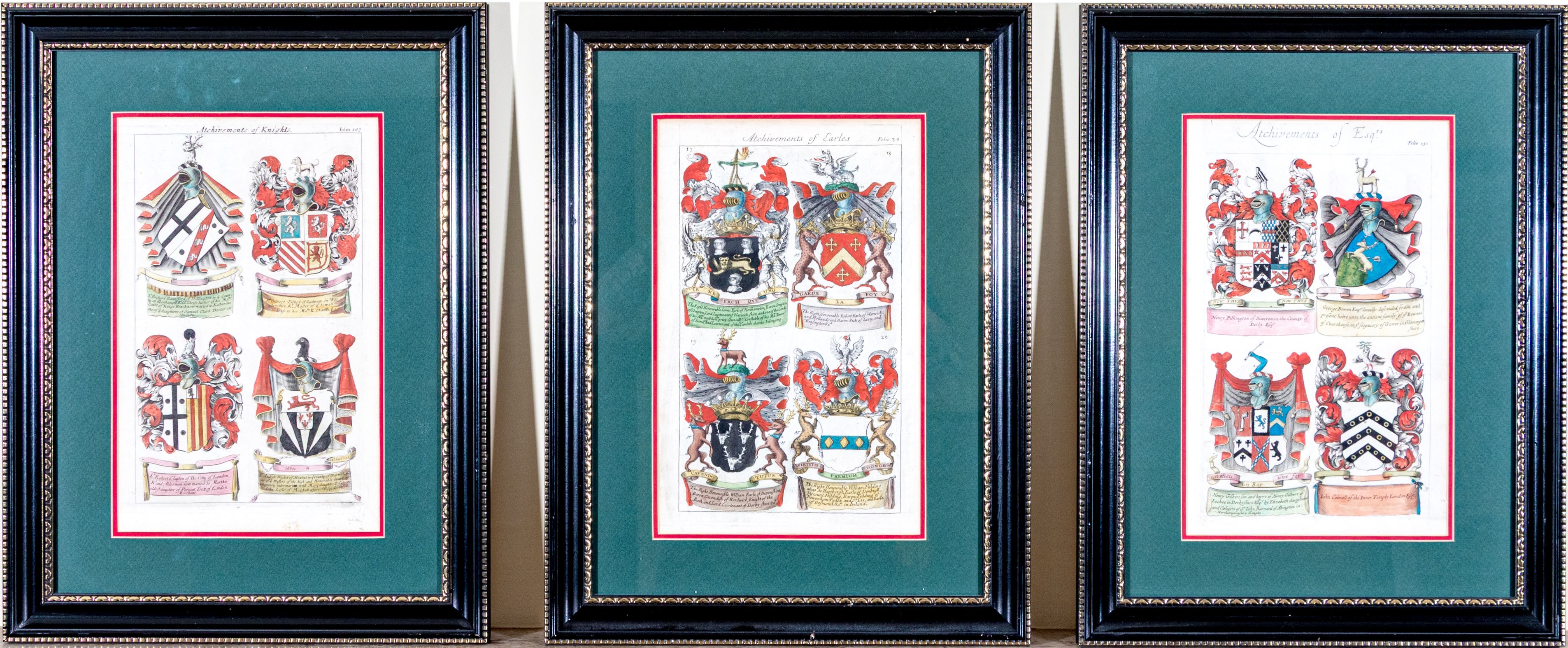 A fabulous set of three decorative prints depicting a variety of coats of arms in beautiful color.