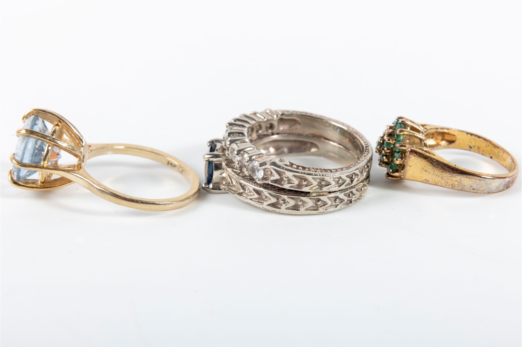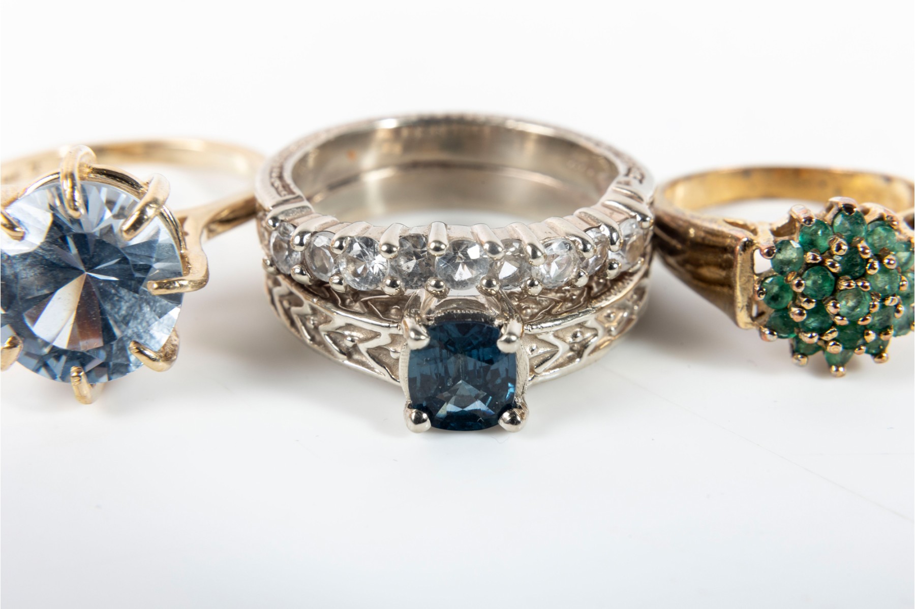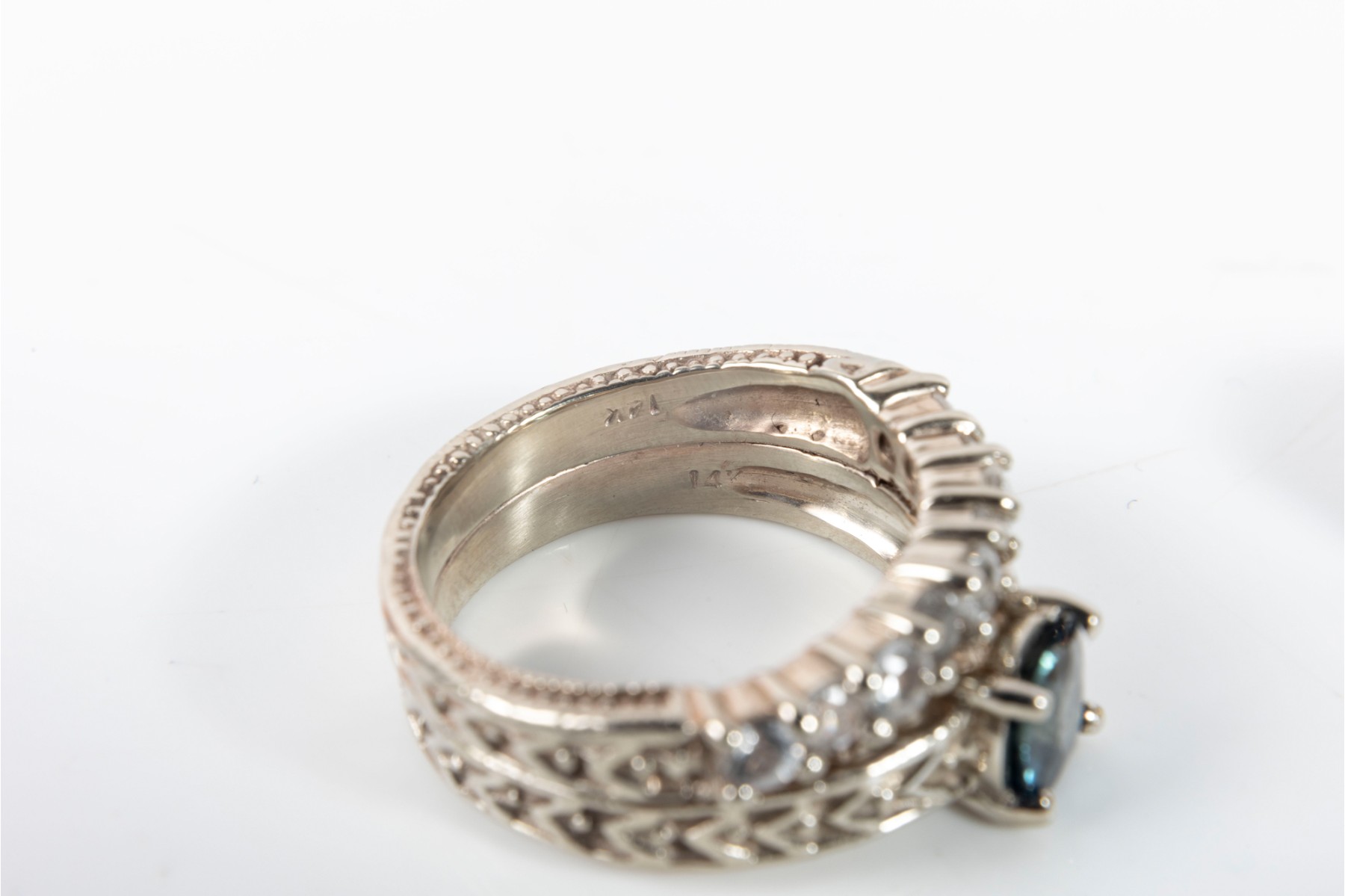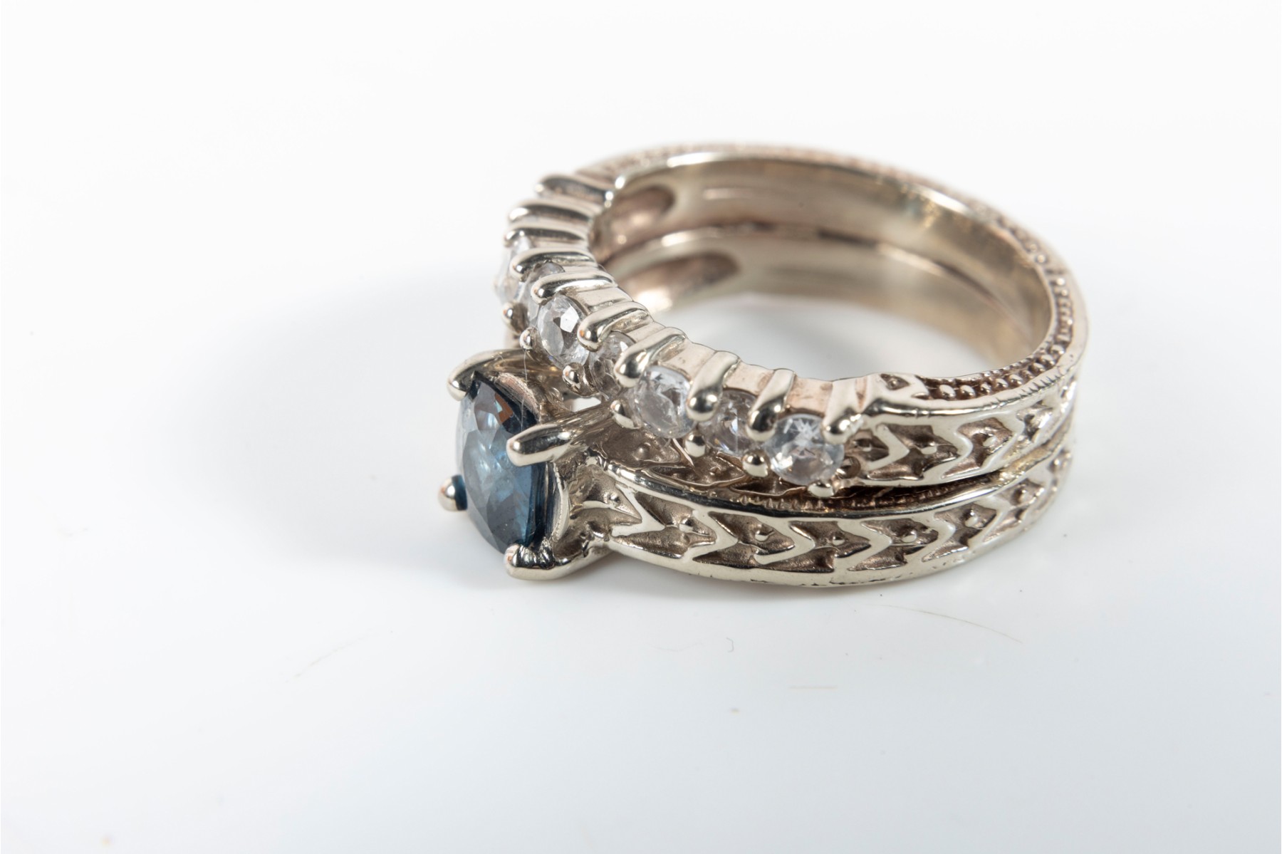 - Chunky 14KT Palladium Sapphire & White Topaz Ring (Size: 9) [Weight: 8.1 Gross DWT]