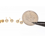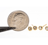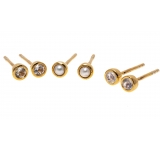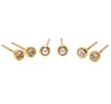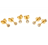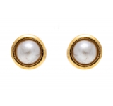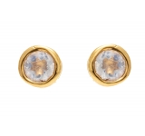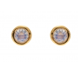 Three pairs of sterling silver vermeil earrings. Each pair of the stud style earrings are set with either white topaz, cultured pearls or moonstones. Post and clutch backings.