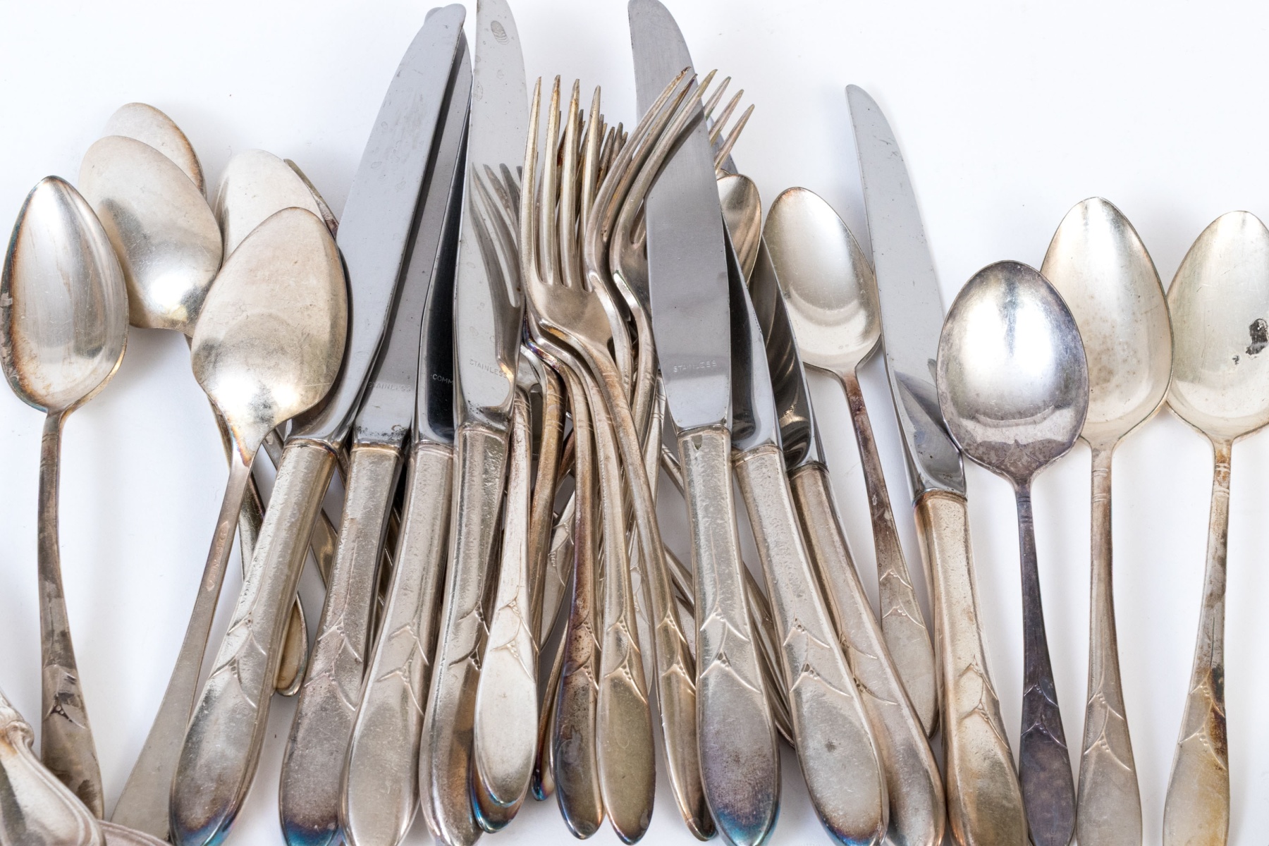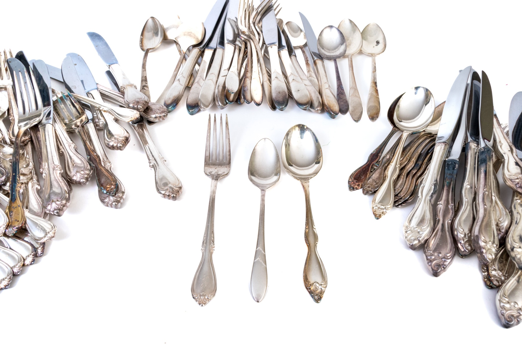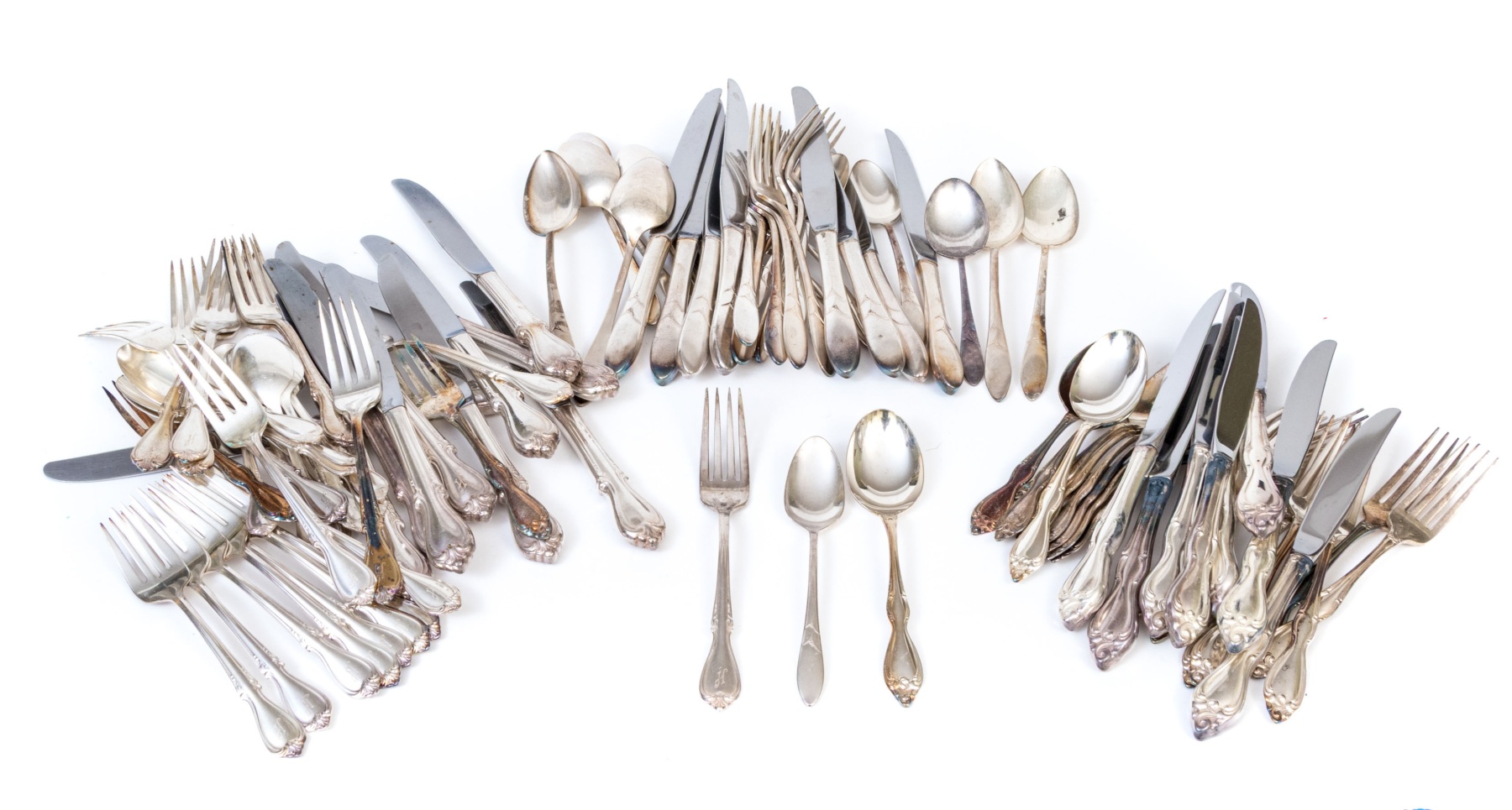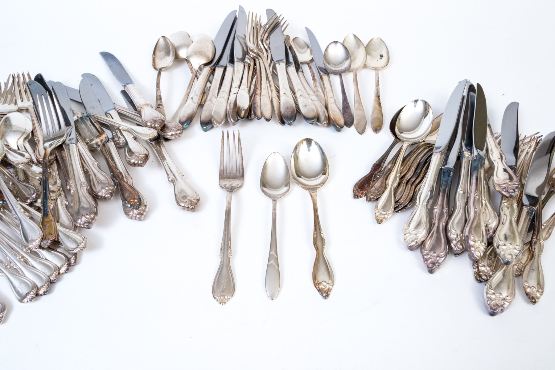 Comprised of three partial flatware services including Will'm A. Rogers Oneida Ltd. See lot images.