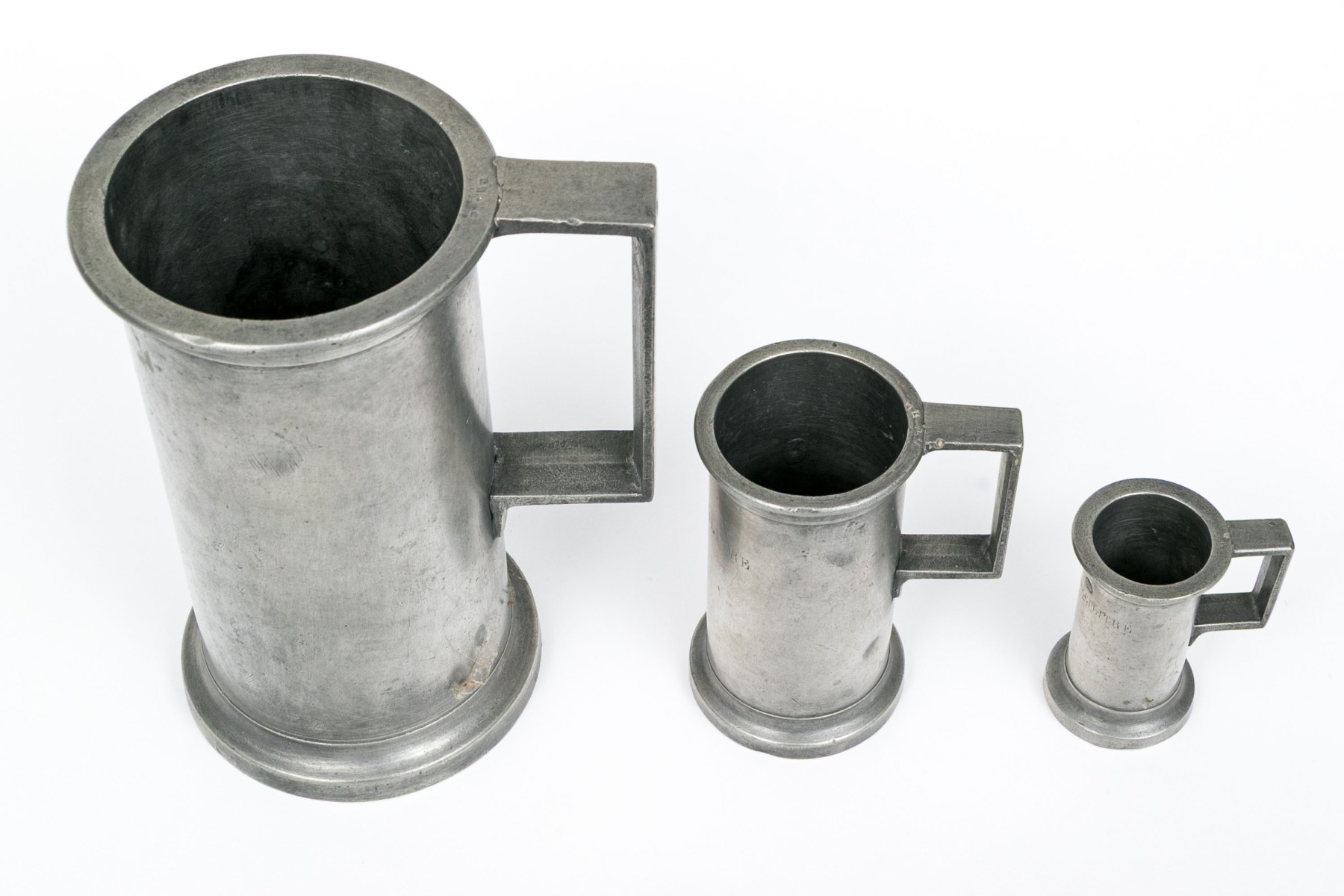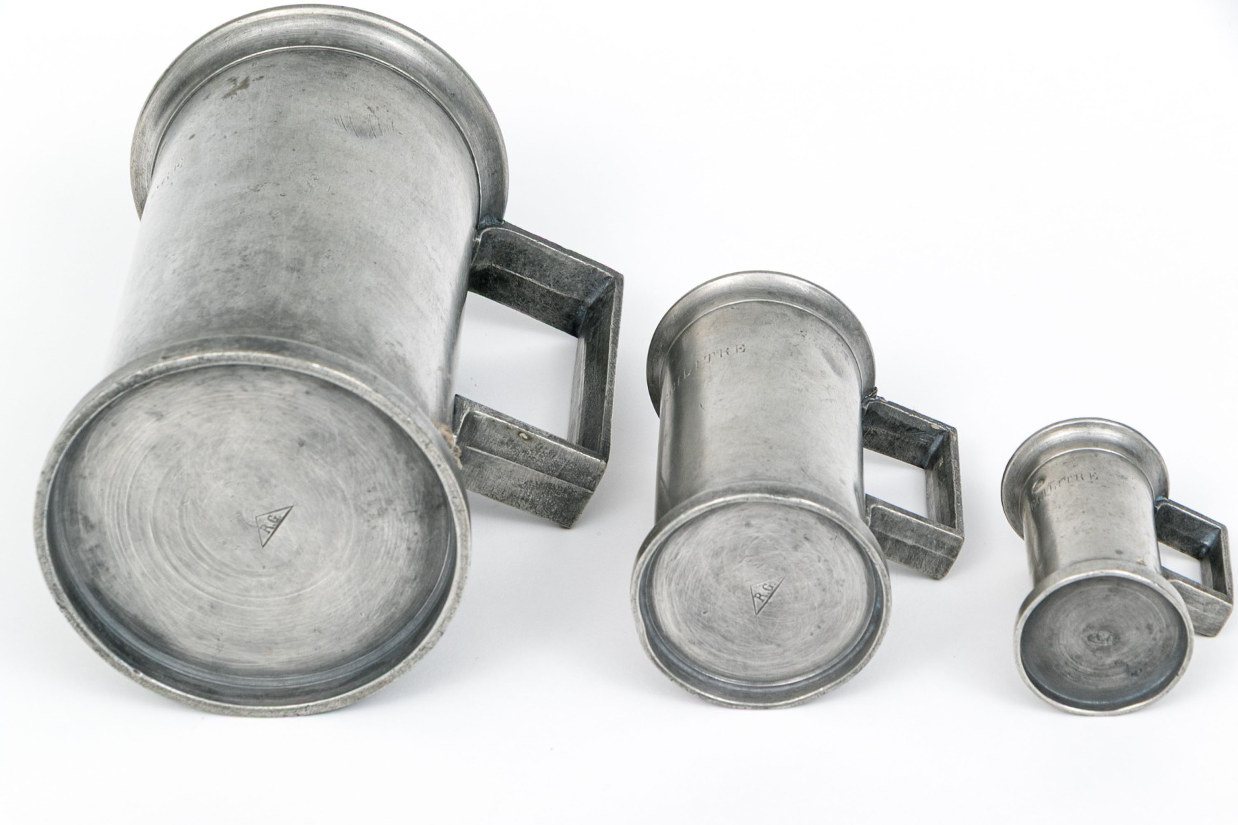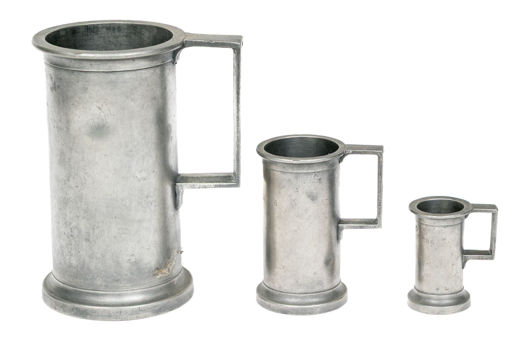 A delightful trio of pewter measuring tankards. Comprised of a large, small and smaller.