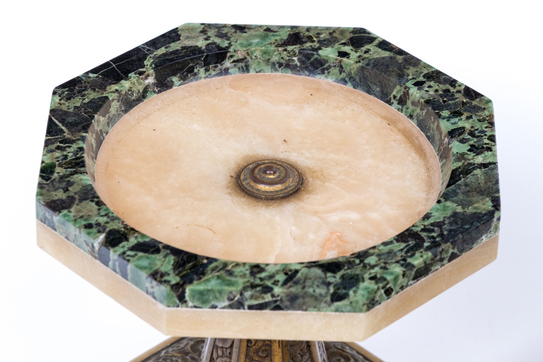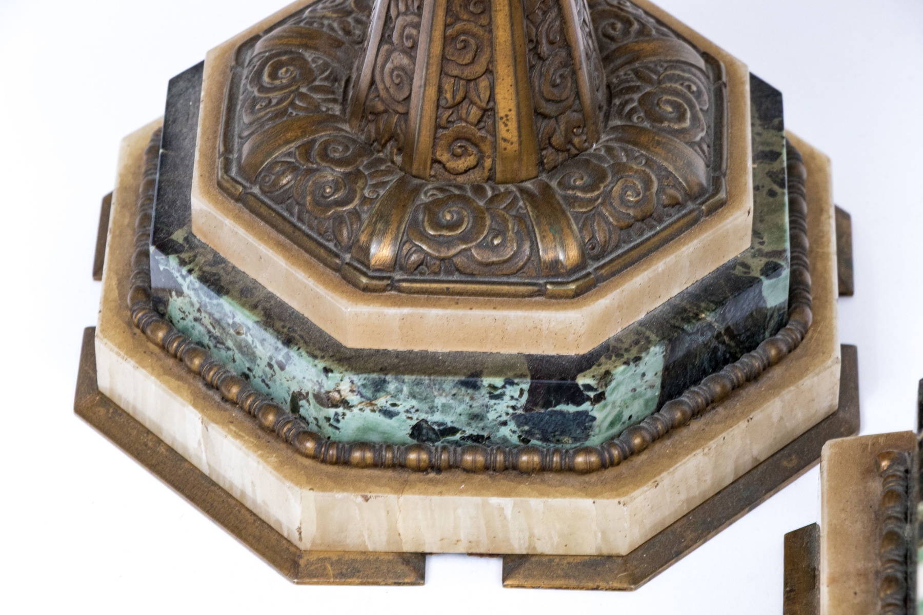 Not guaranteed to be in working order. A split to marble base one of the sphinx rests upon. Some dulling to finish but has a great look.