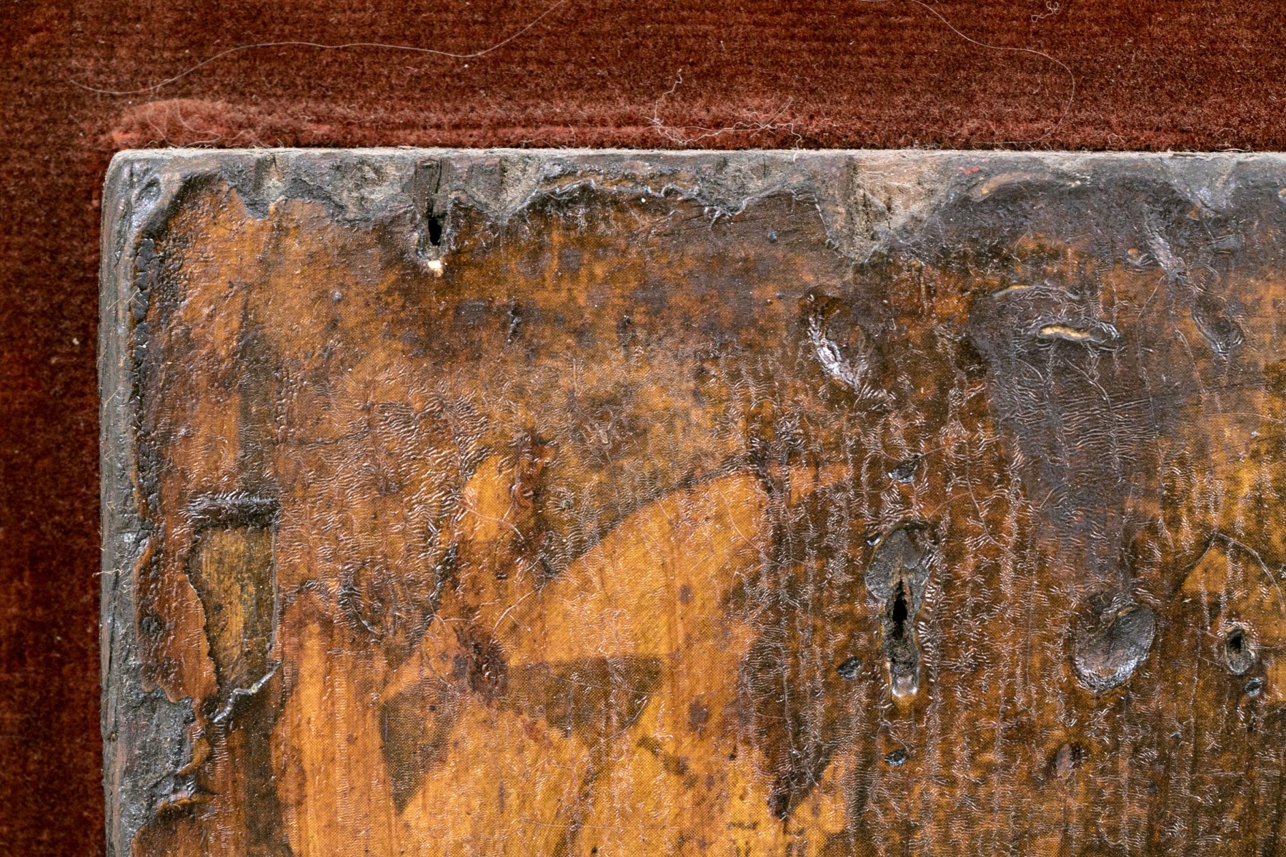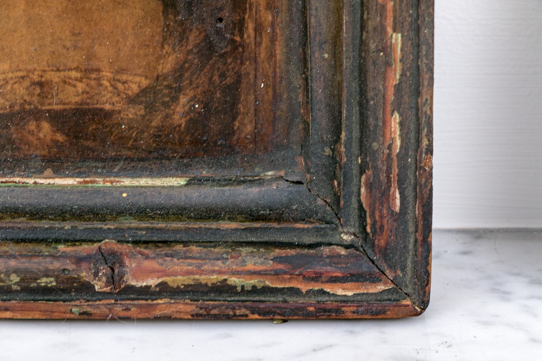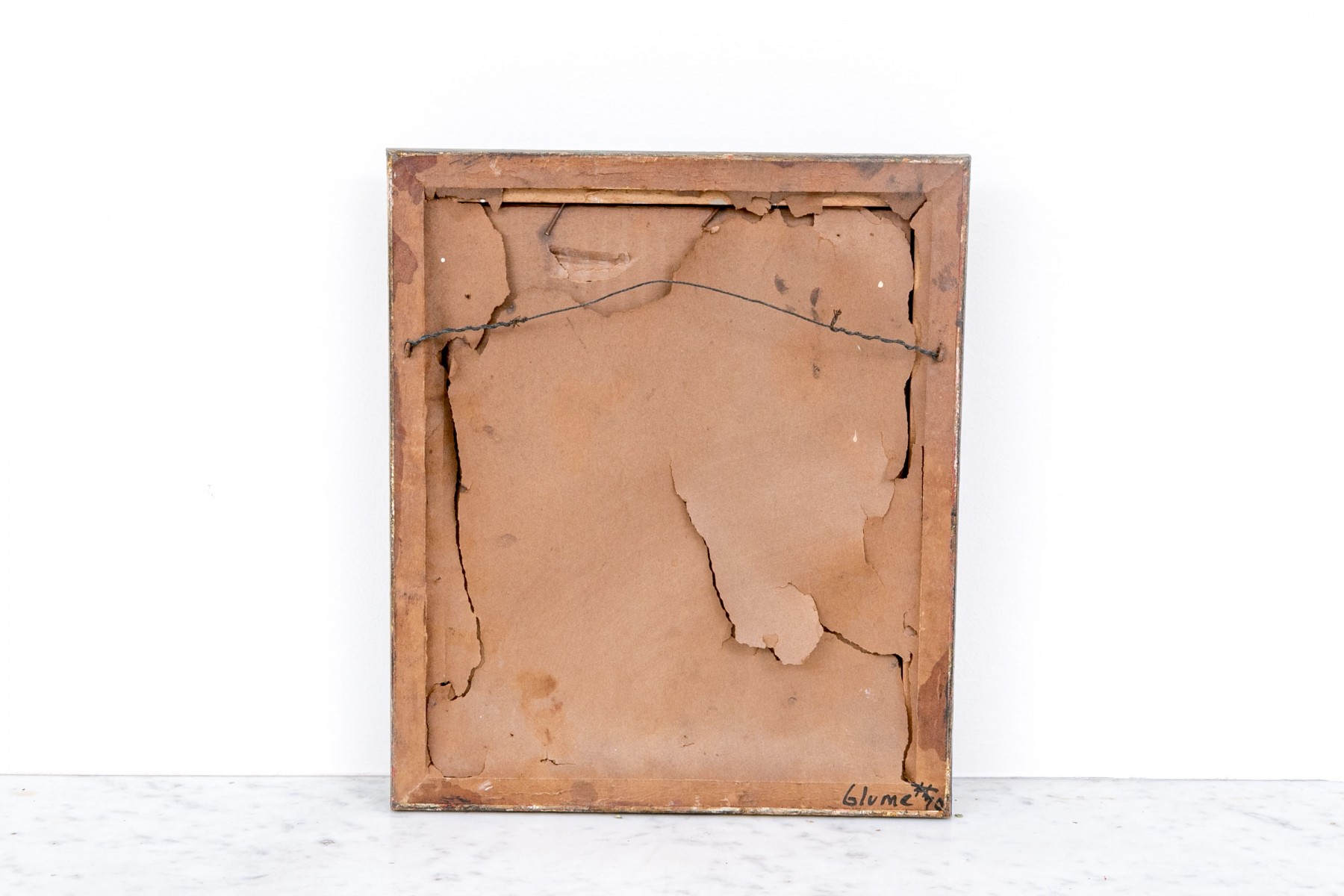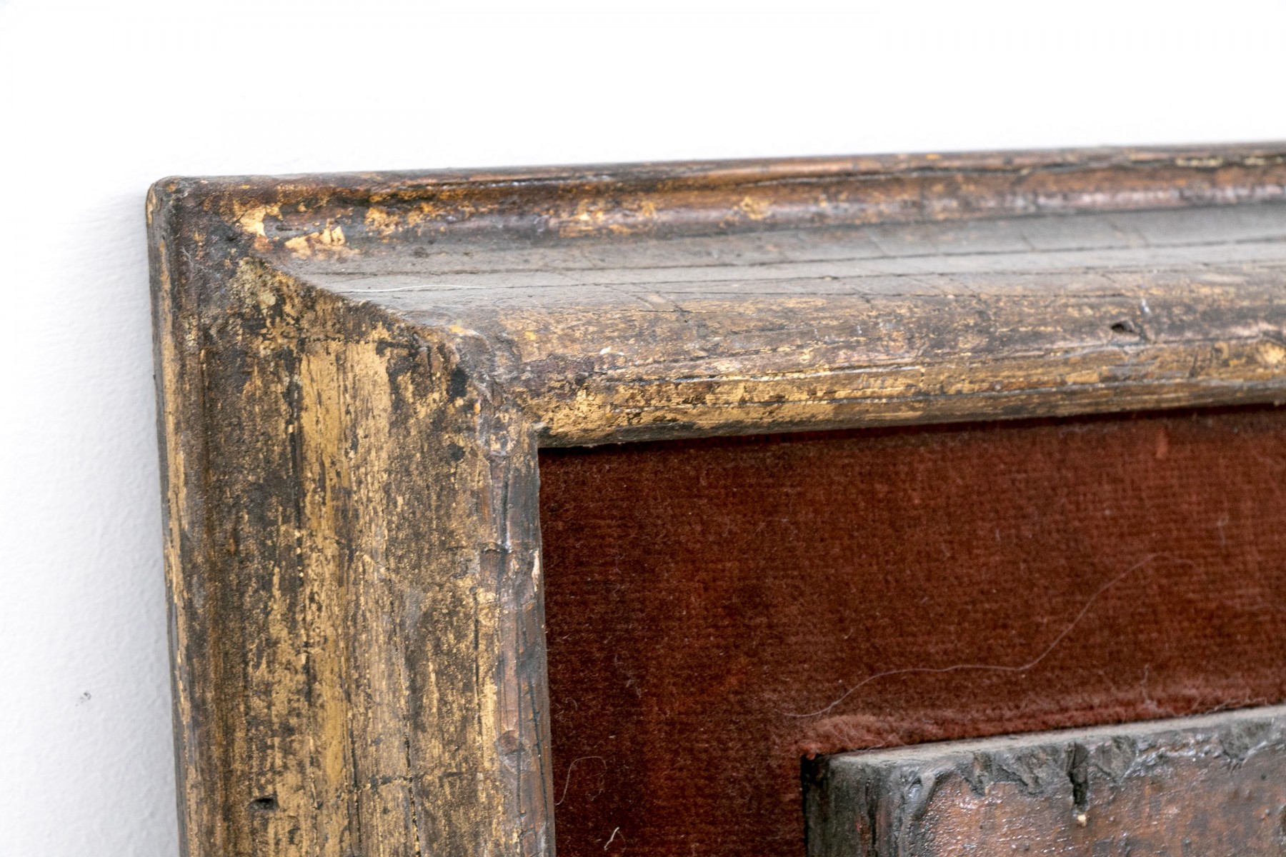The framed panel on brown felt bears signature top right. Condition: Many losses and large loss on top right of one panel. All pieces exhibit wear commensurate with age.