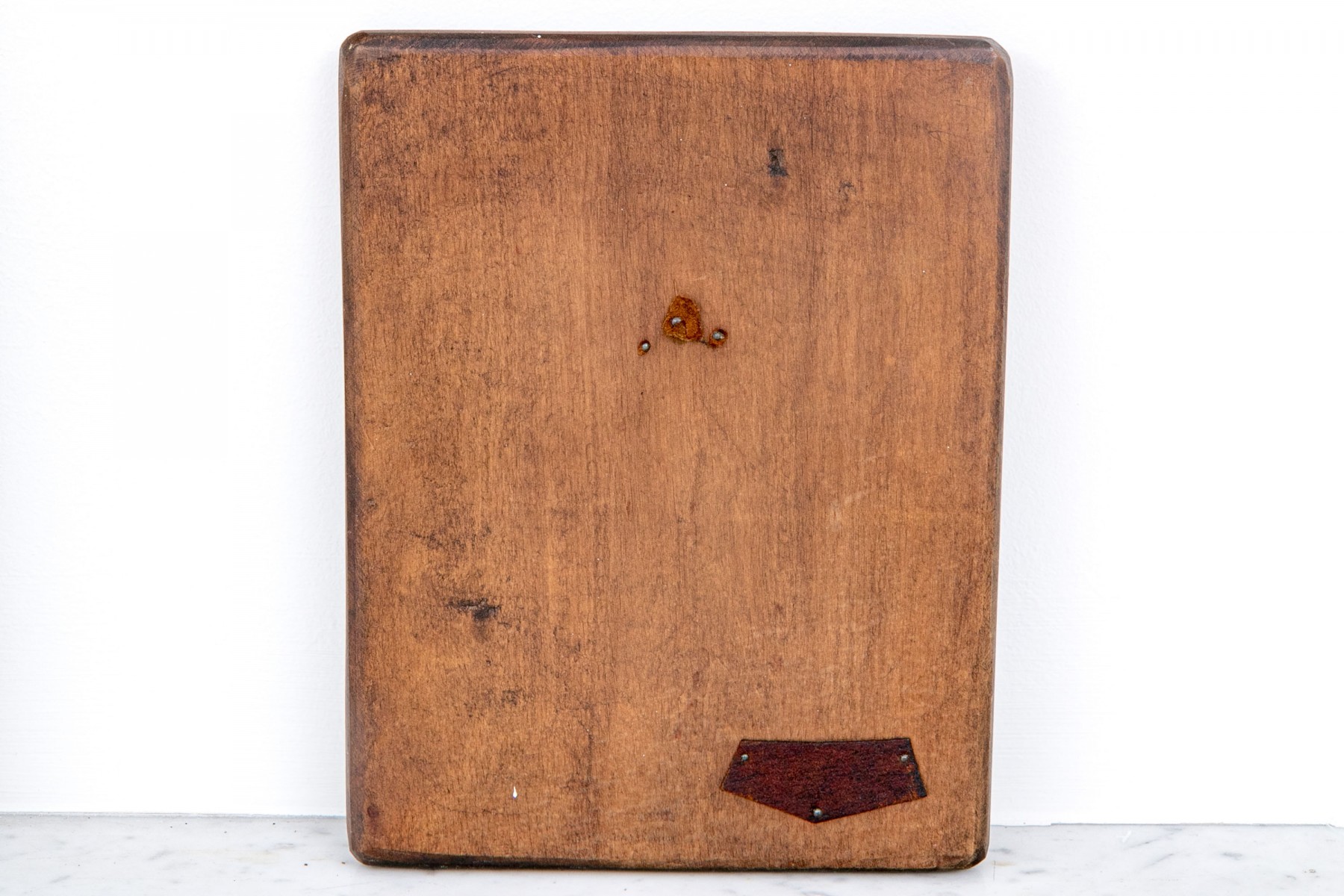 Dimensions: 15 1/2" H x 8" W x 1 1/2" D. Smaller signed HC OY?, 8 3/4" H x 7" W x 1" D, smallest panel. 12" H x 10 1/2" W x 2" D, panel with wood and felt frame 7" H x 5 1/2" W, framed panel