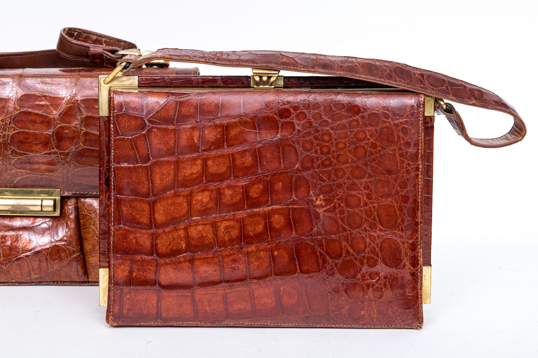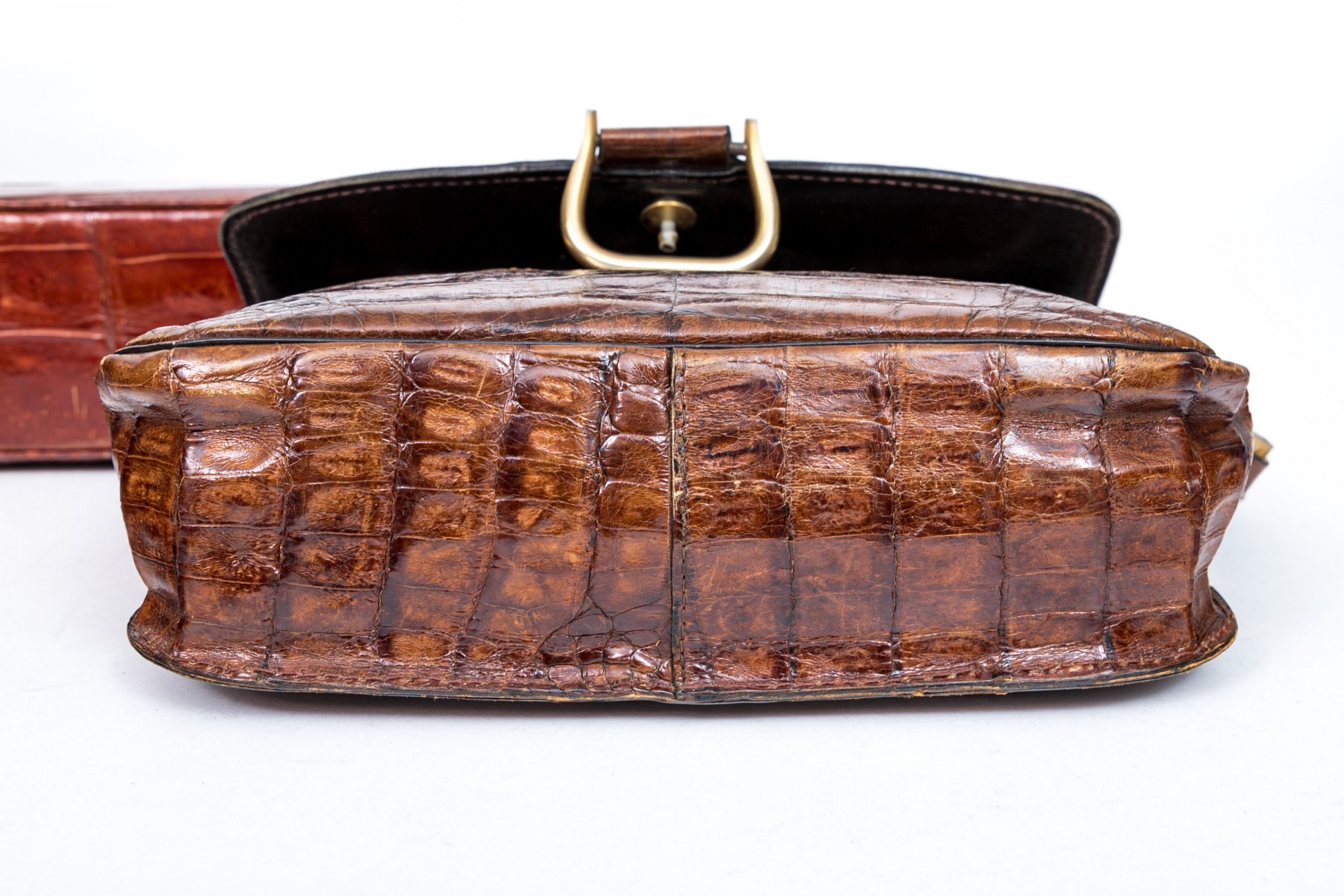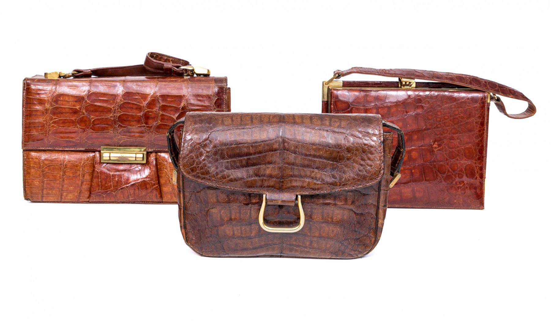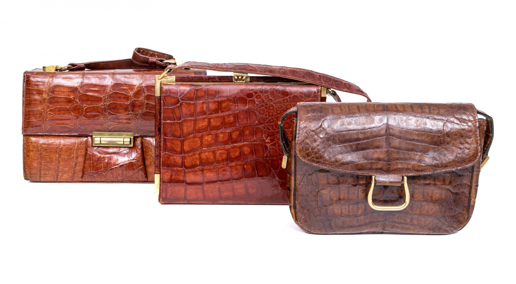 Three alligator leather purses, shoulder and hand bags.