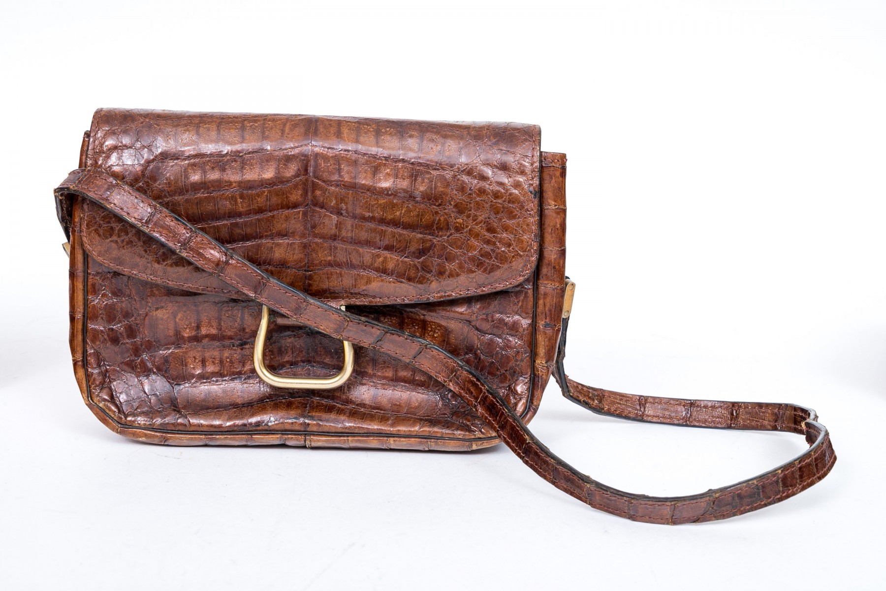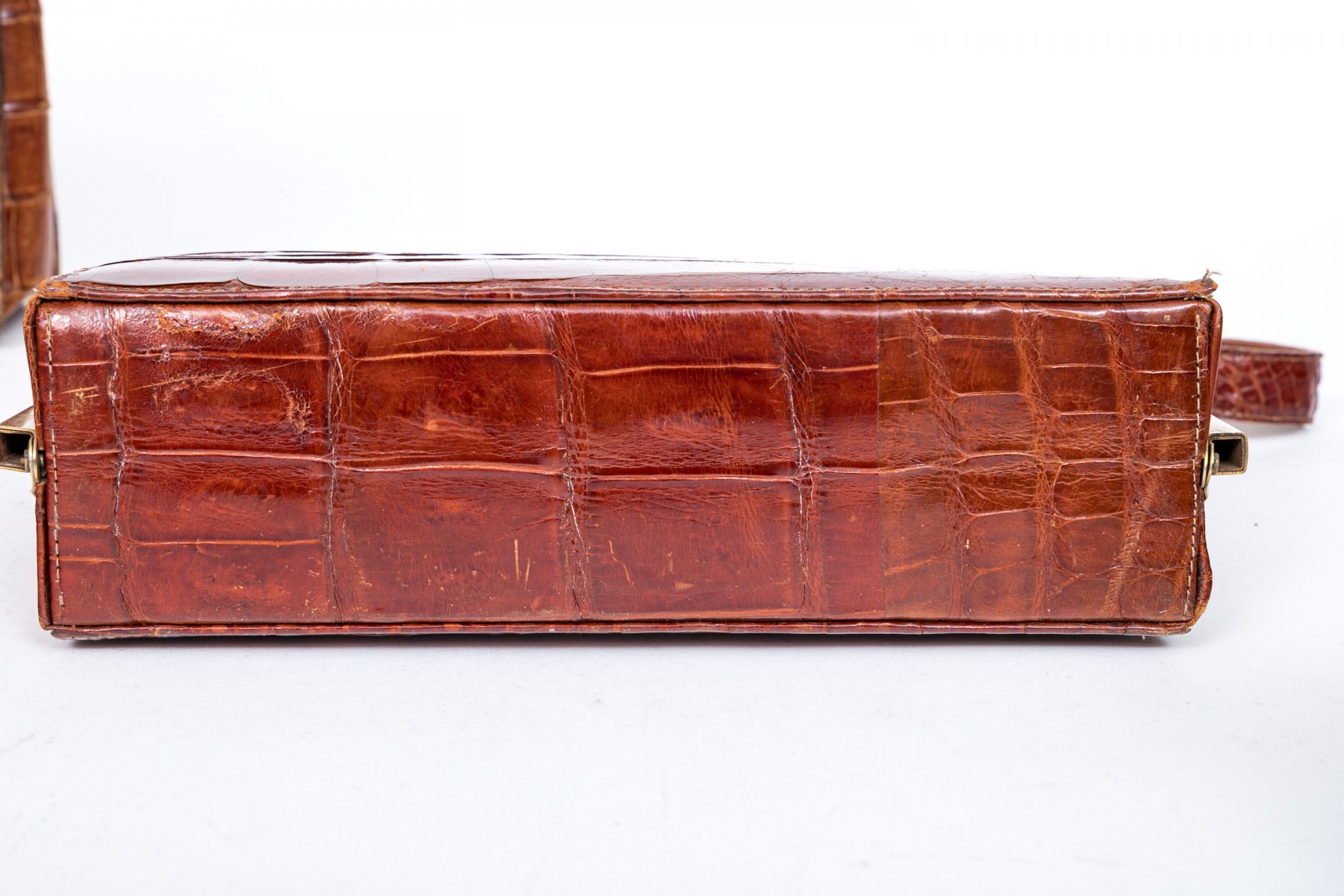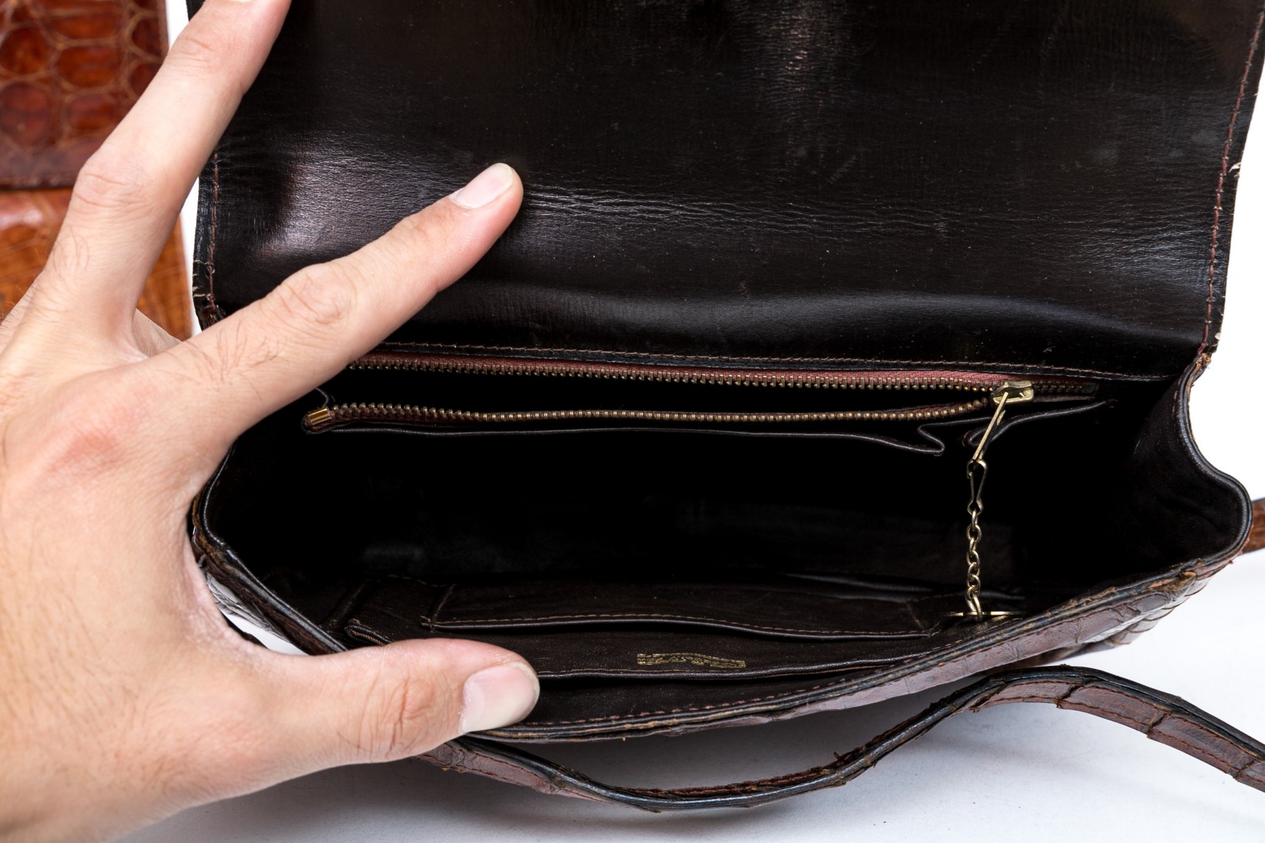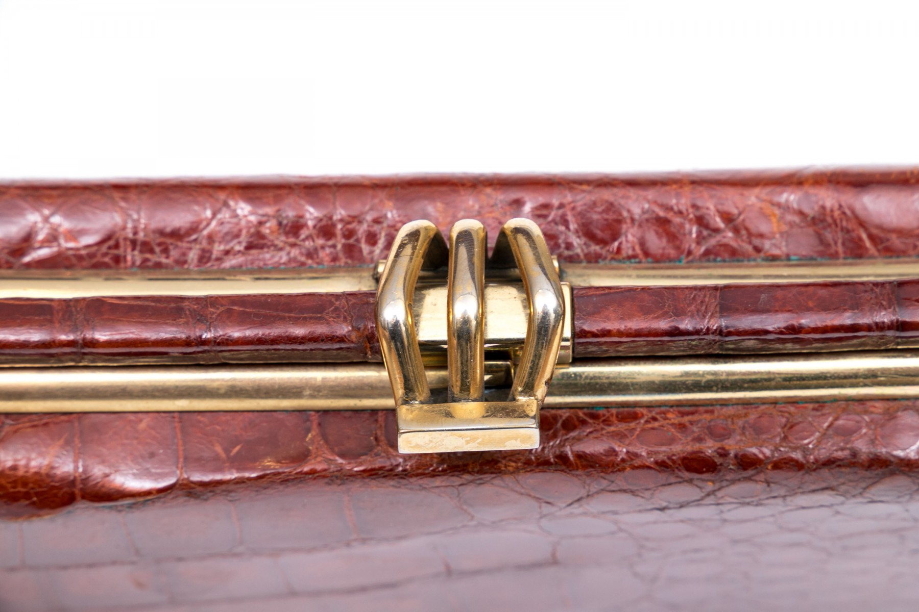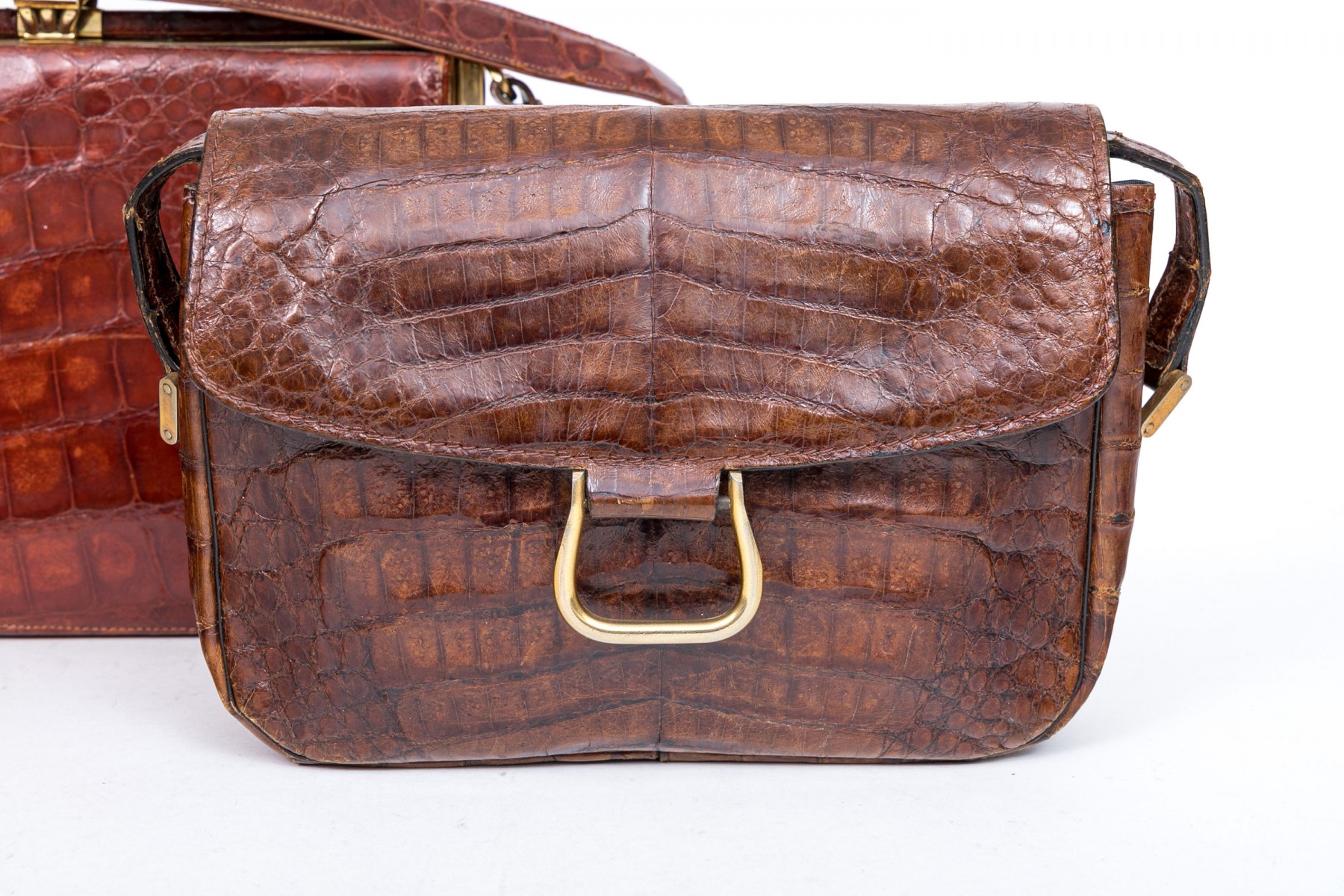 Three alligator leather purses, shoulder and hand bags.