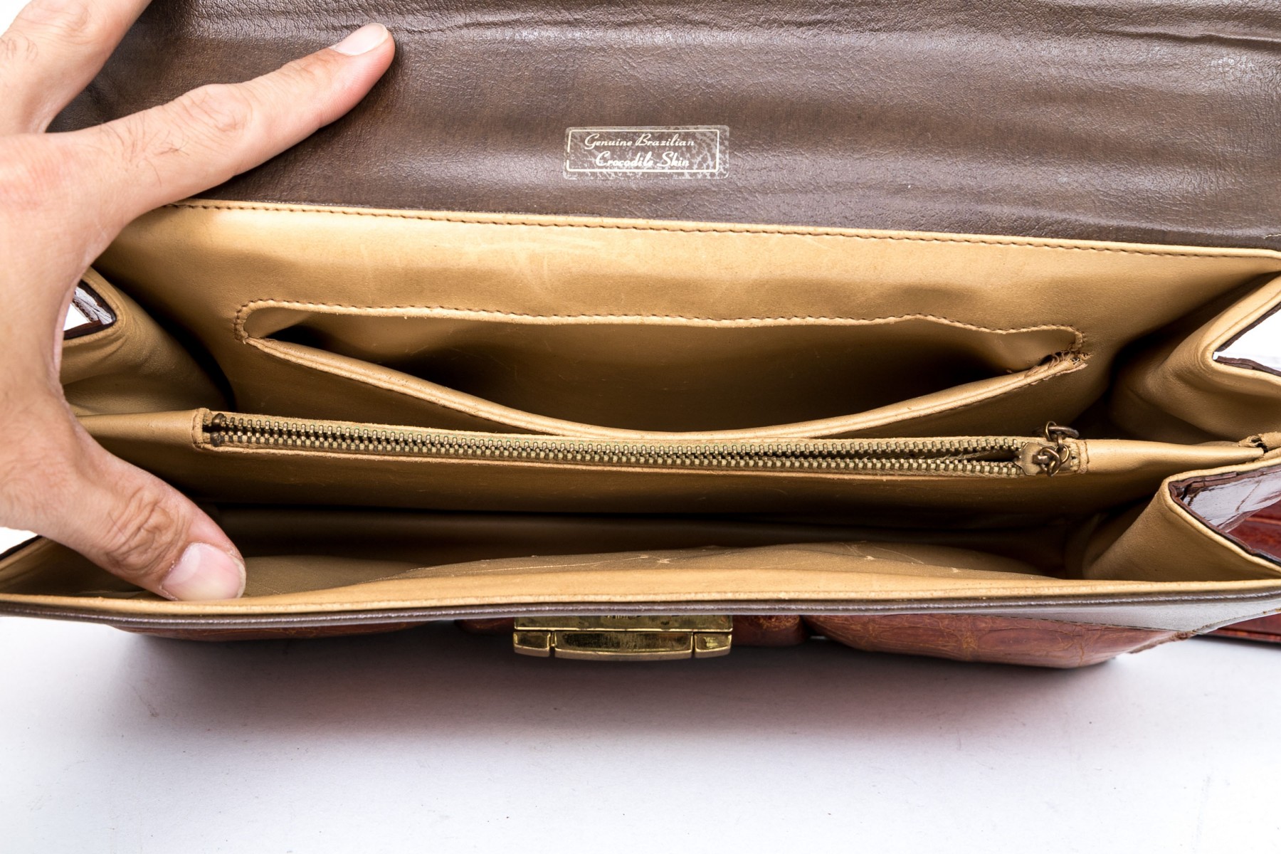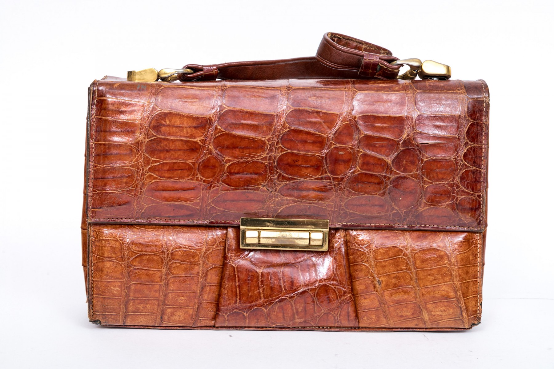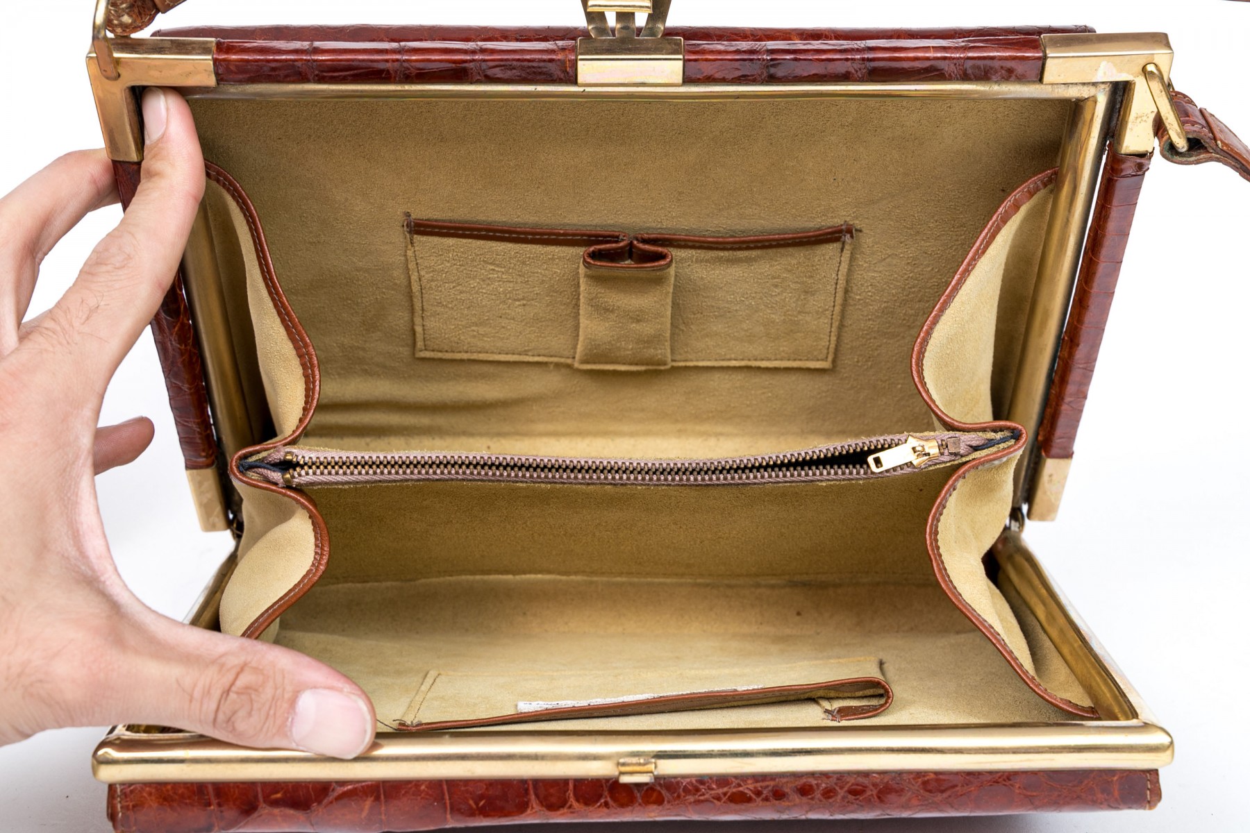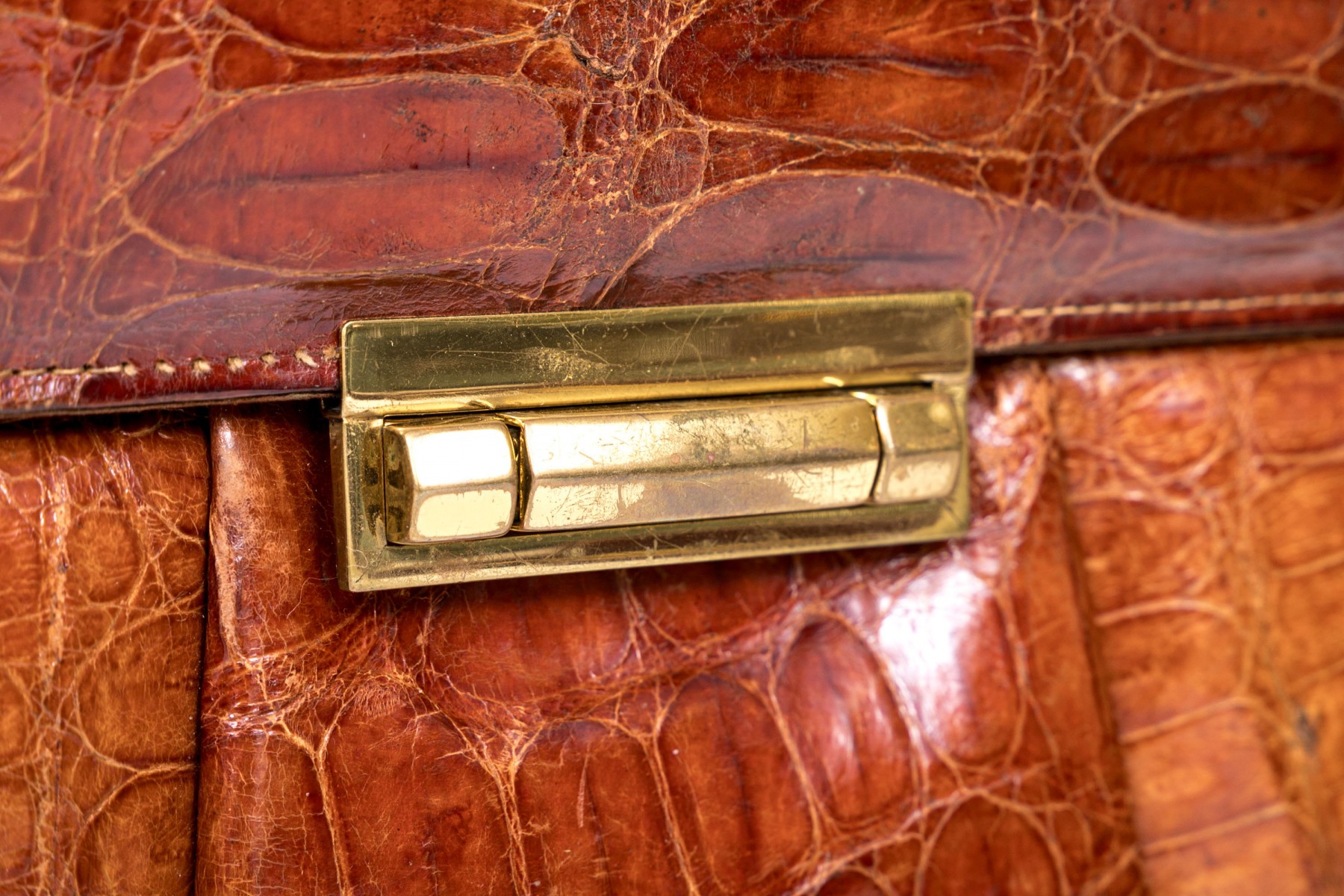 Three alligator leather purses, shoulder and hand bags.