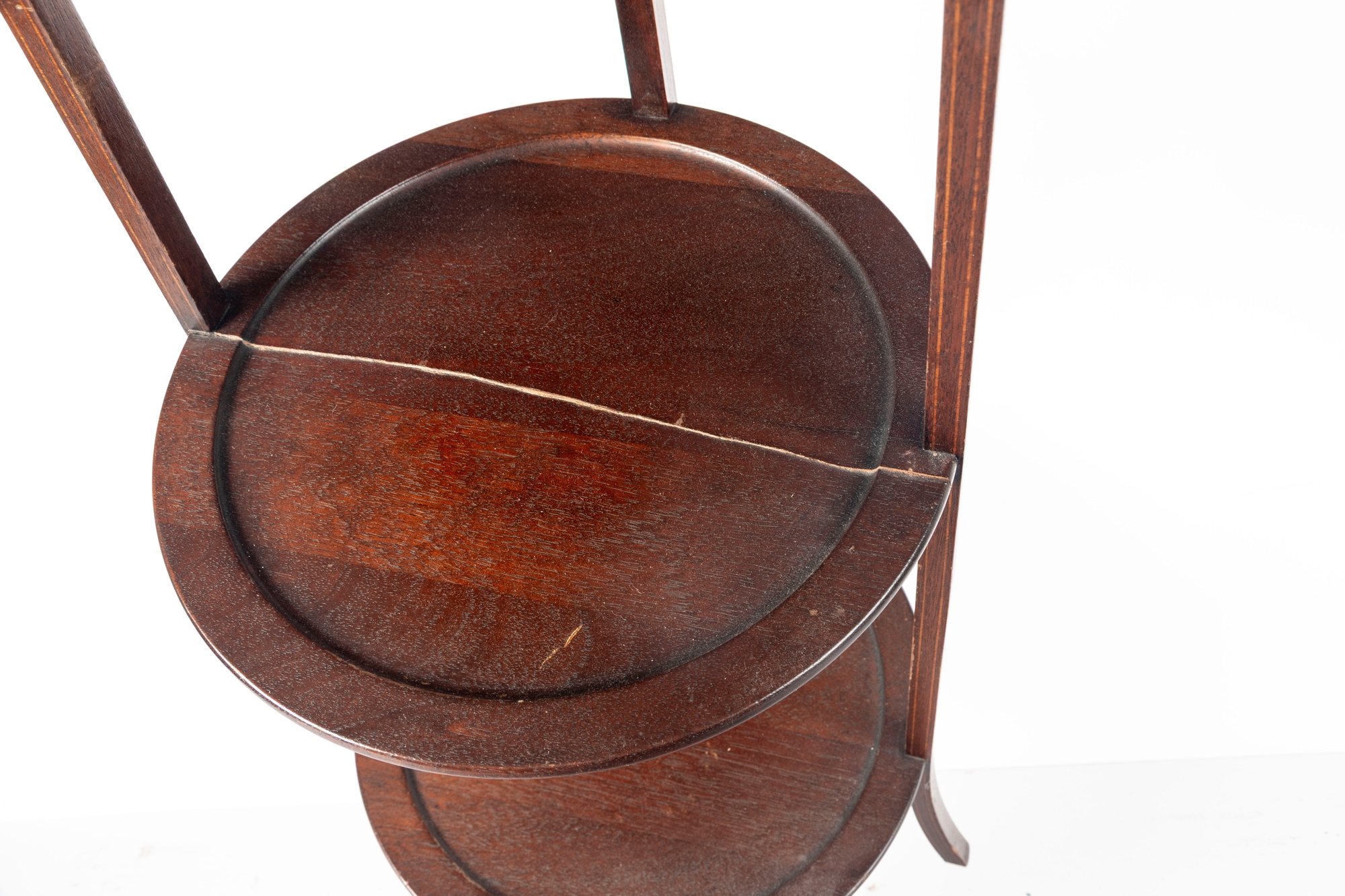 A plant stand composed of three 12" circular stands, all composed of solid wood.