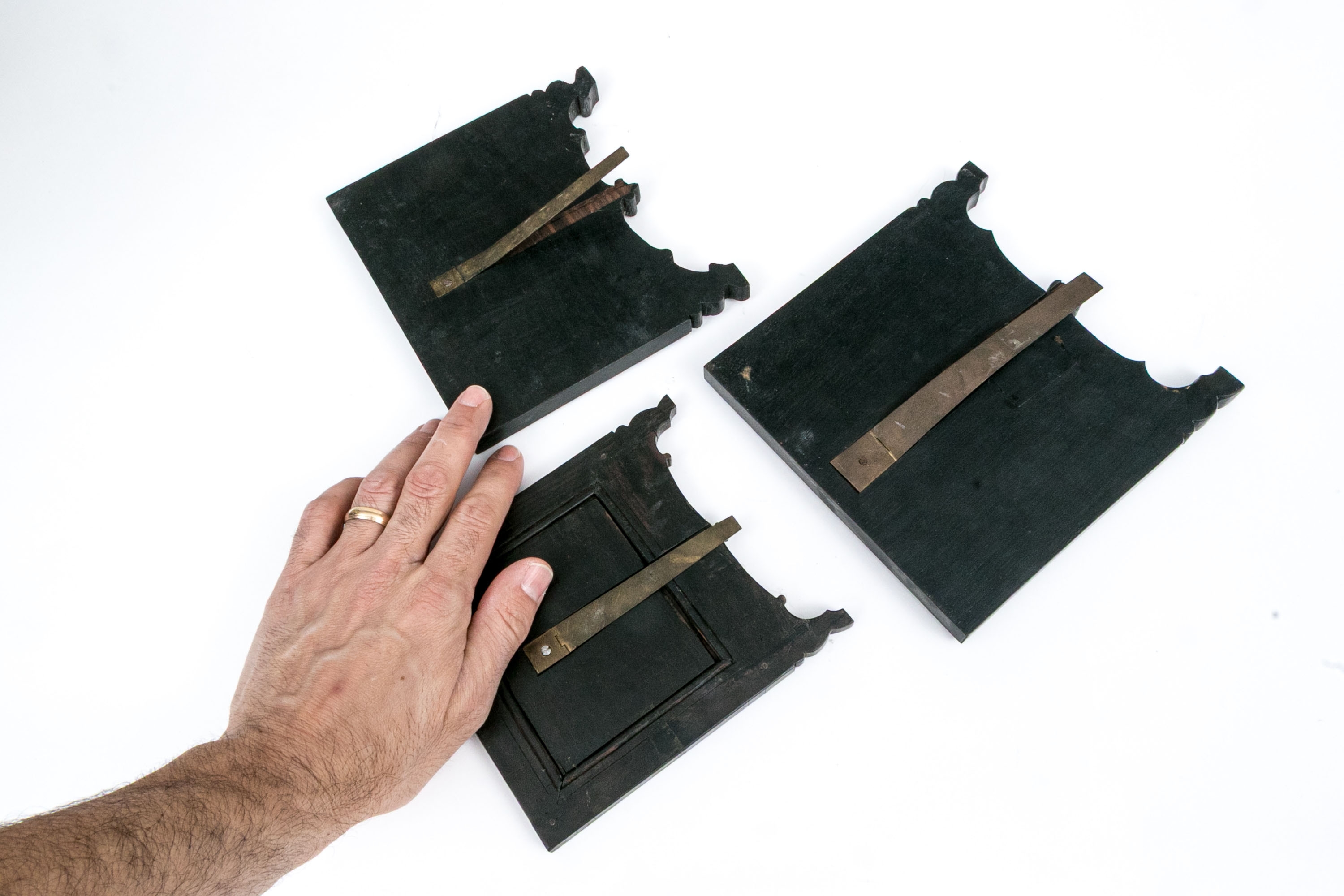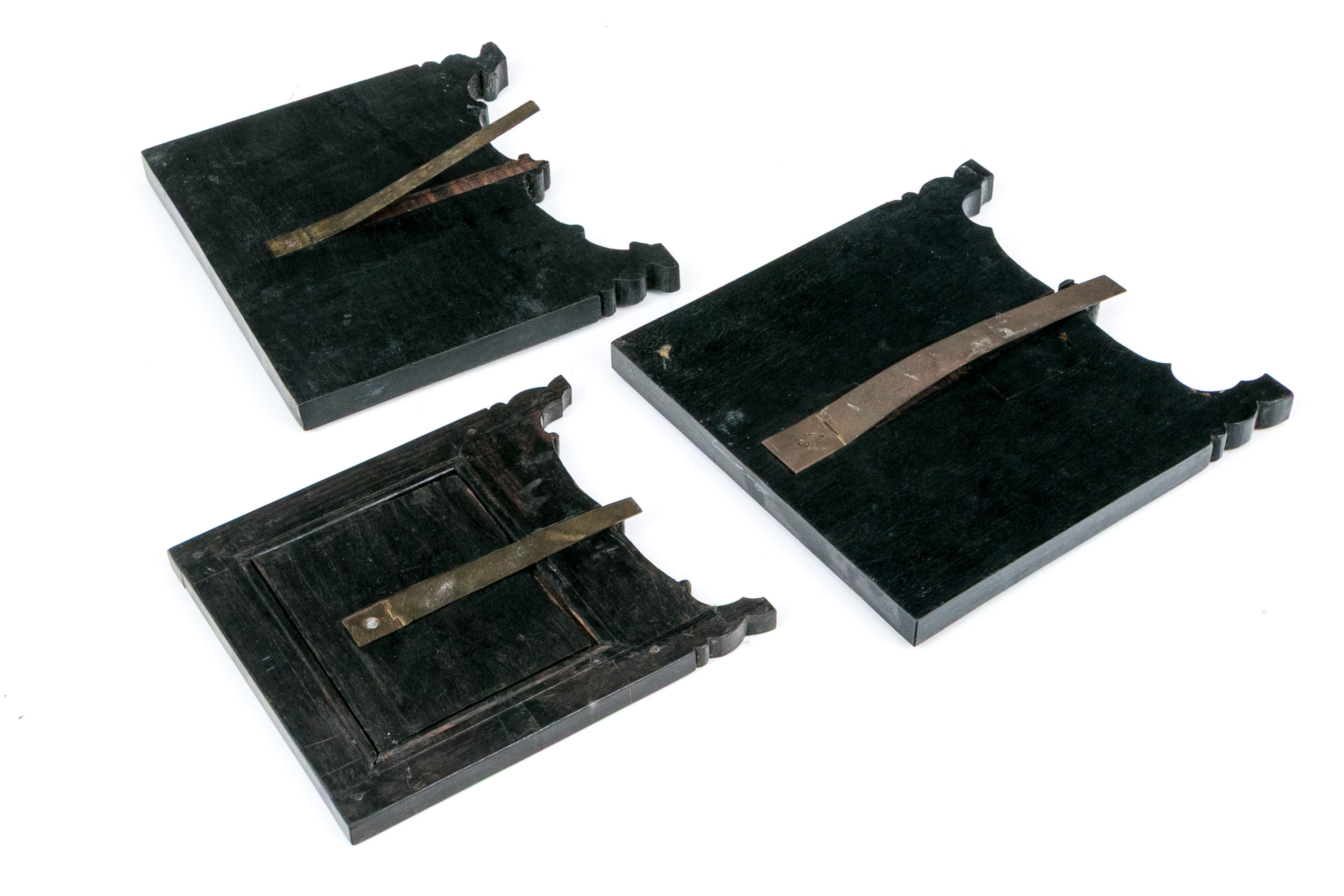 Some wear to the finish on wood frame and spotting to painted porcelain plaques but overall a handsome decorative lot.