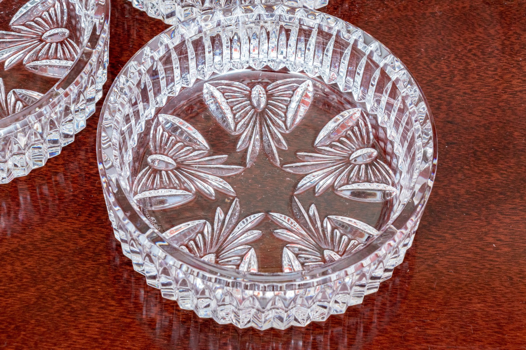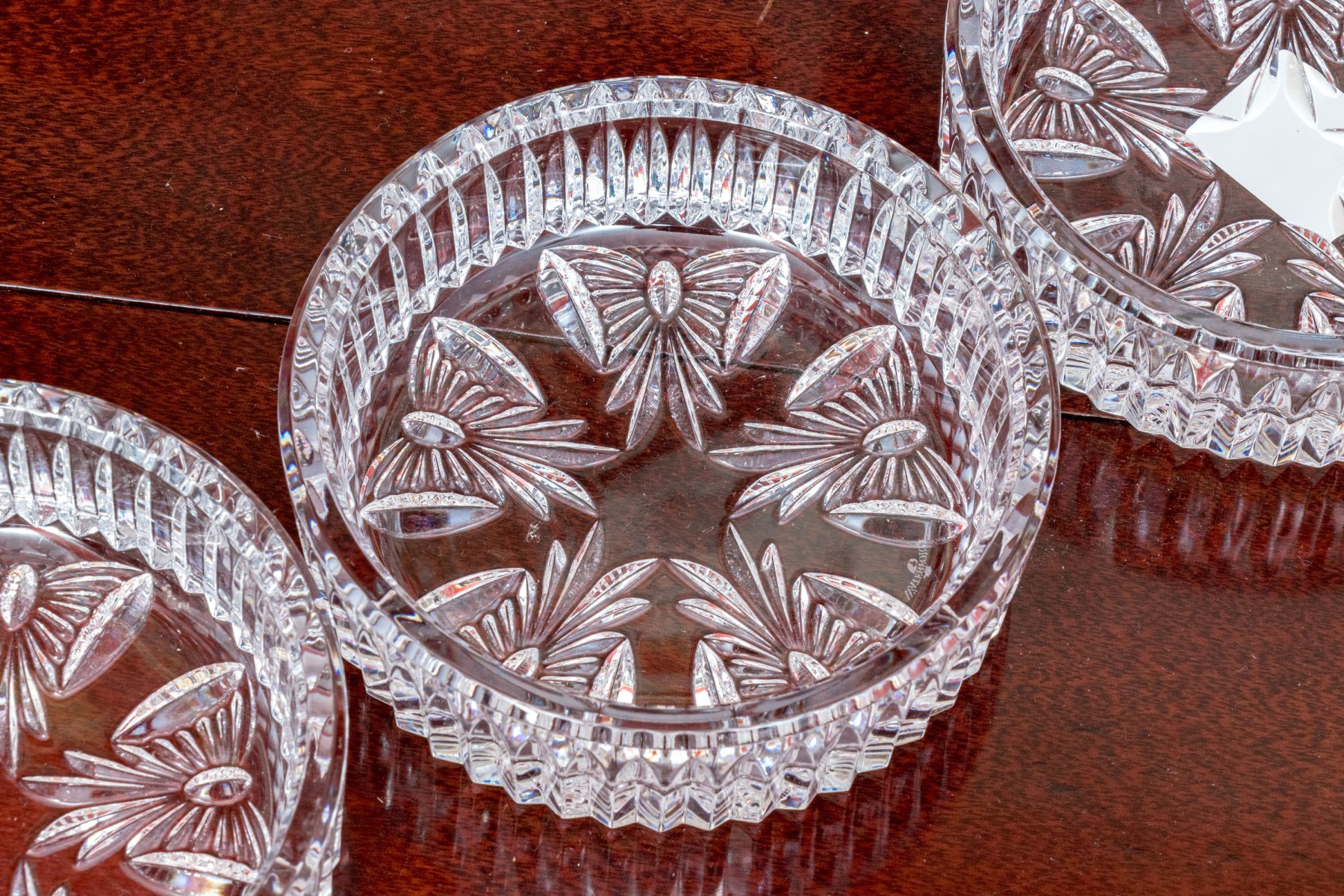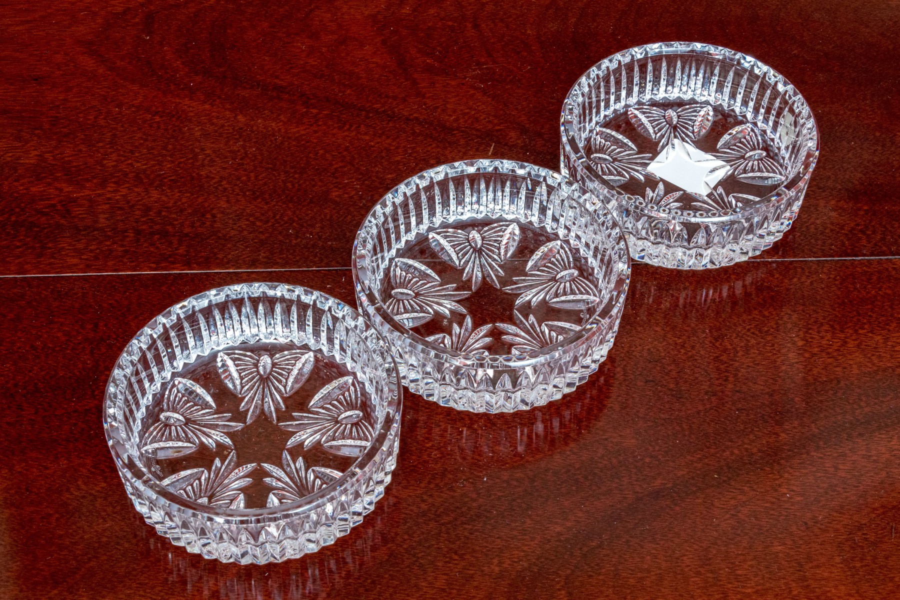 Attractive trio of Waterford cut crystal bottle coasters, each marked with makers label, one in box.