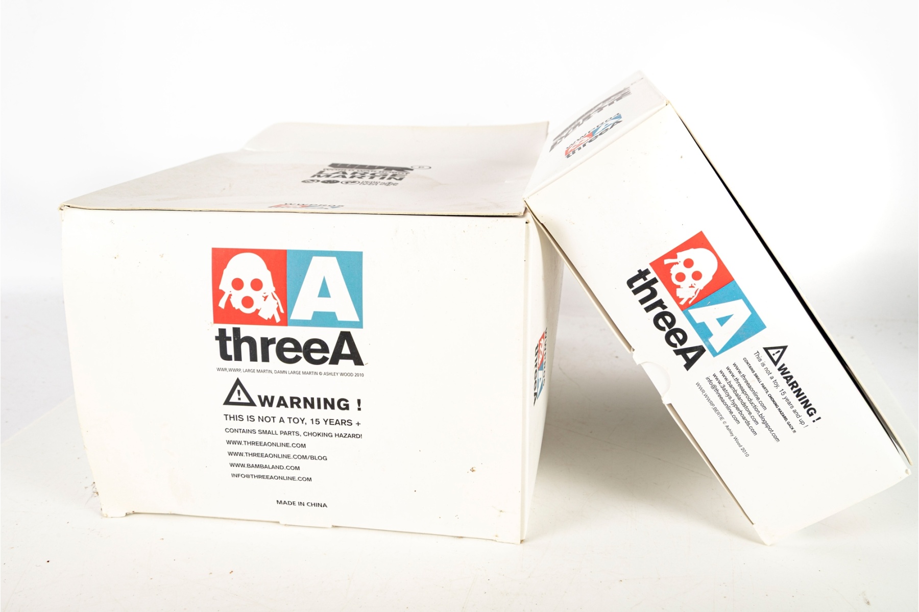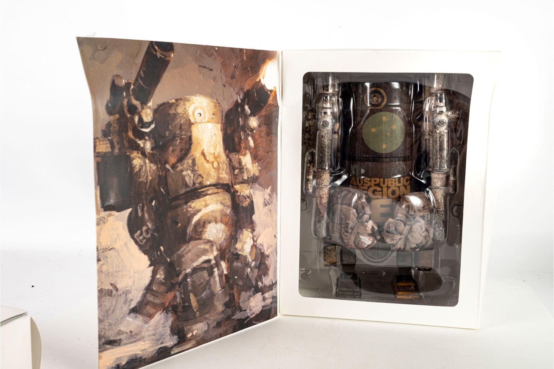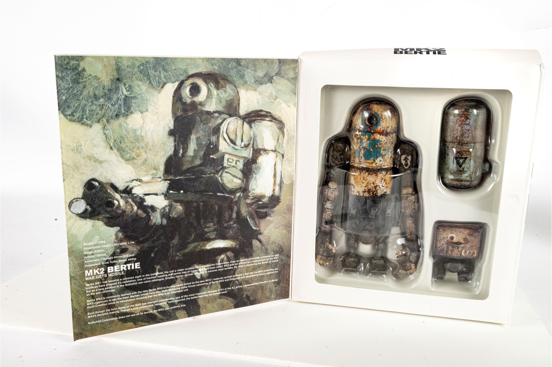 A pair of collectible World War Robot (WWR) figures designed by acclaimed artist Ashley Wood and produced by ThreeA (3A). This lot includes both MK2 Bertie and Large Martin, two of the most recognizable mecha units from Wood’s acclaimed dystopian sci-fi universe.