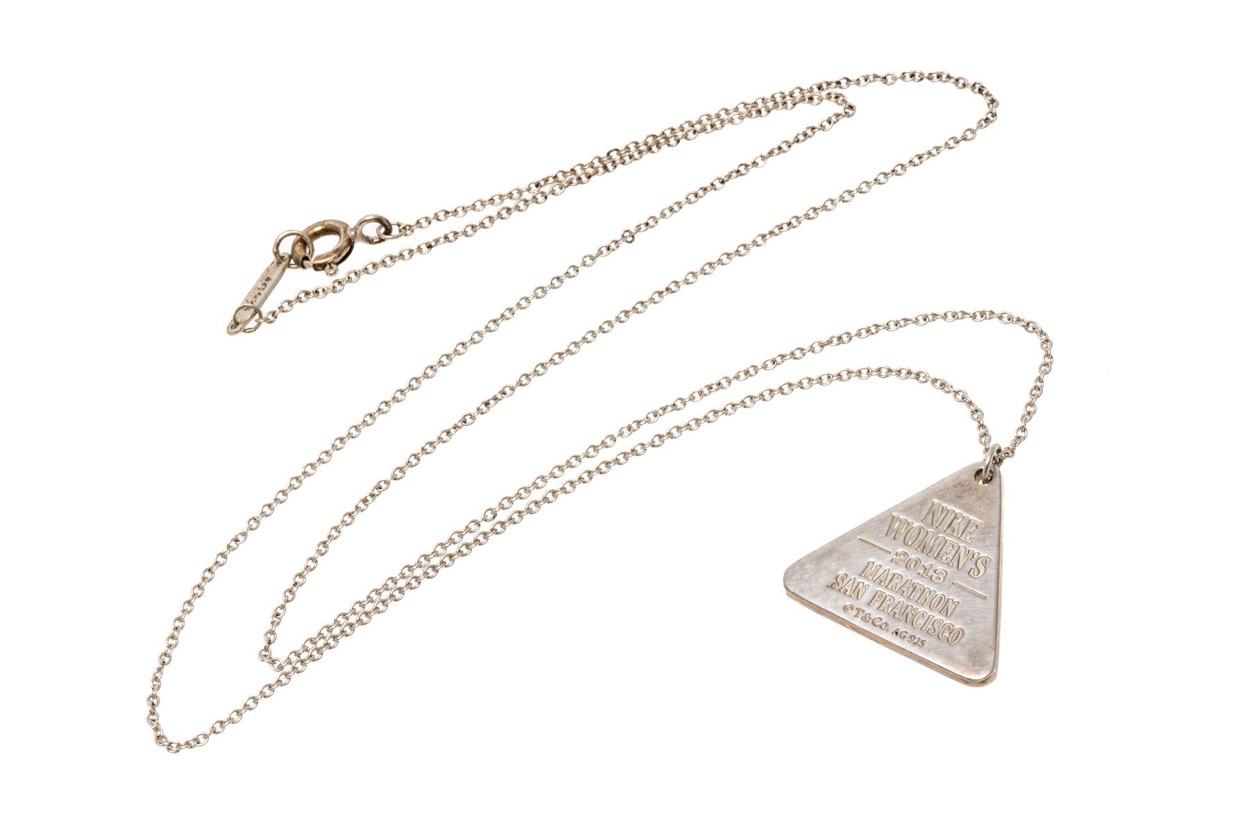 Tiffany and Co. sterling silver Nike award pendant, with Tiffany sterling chain