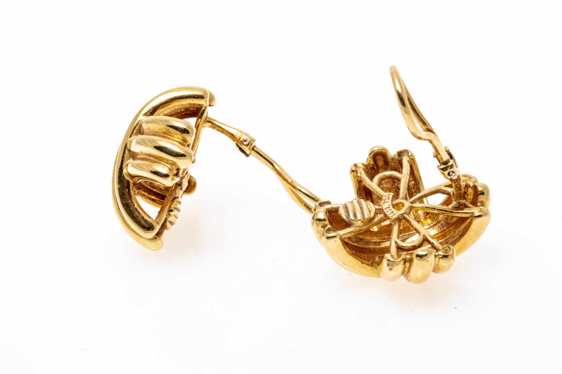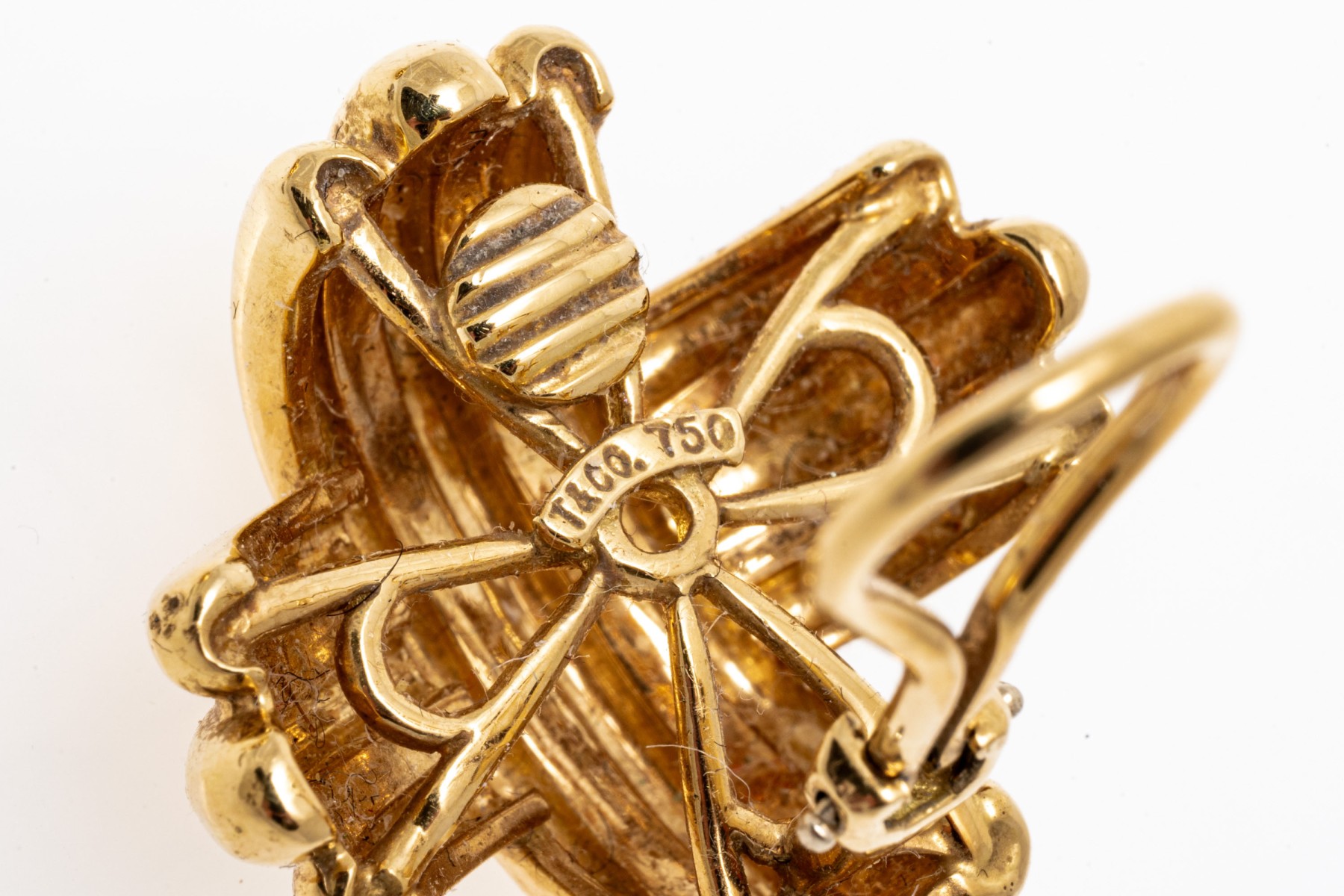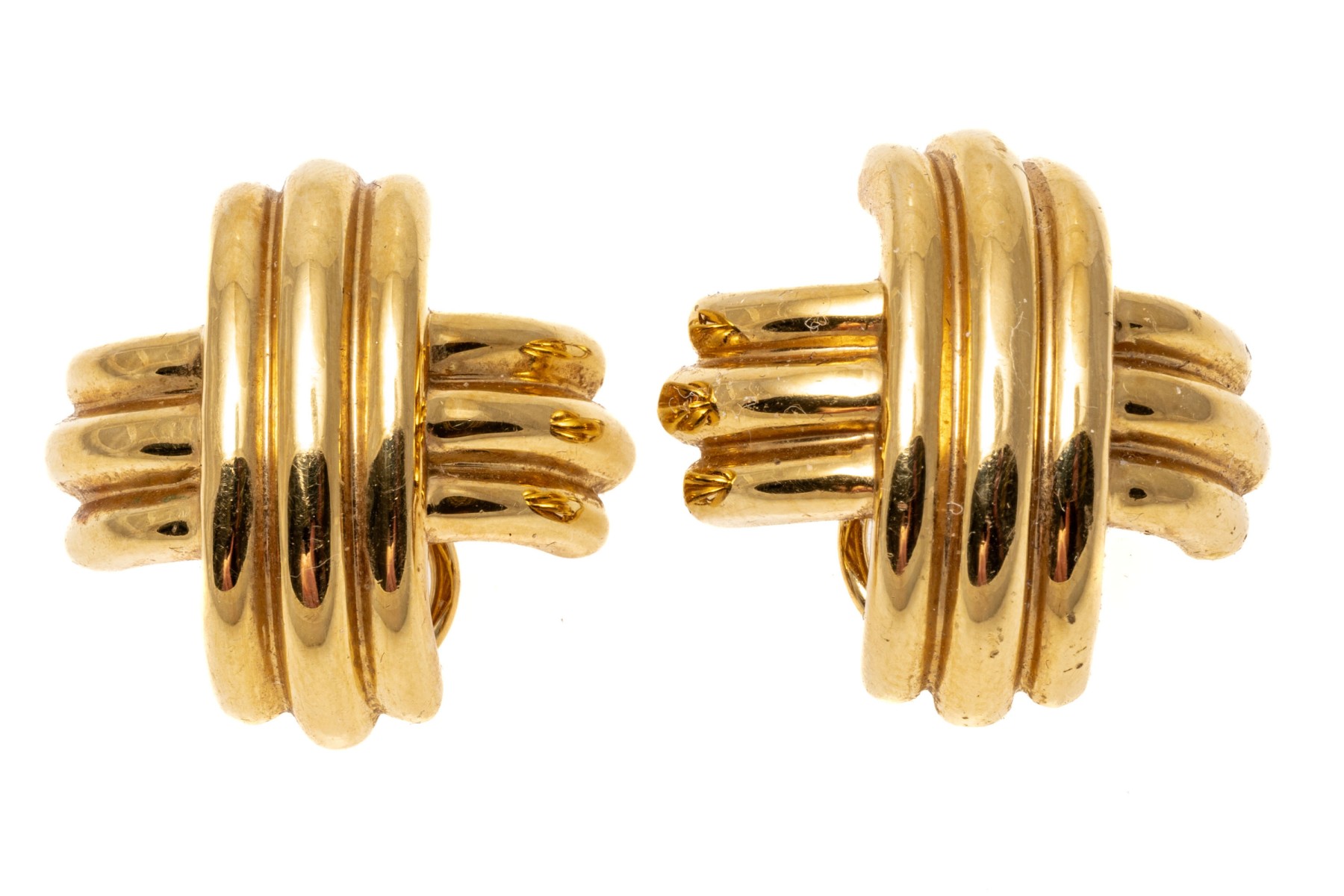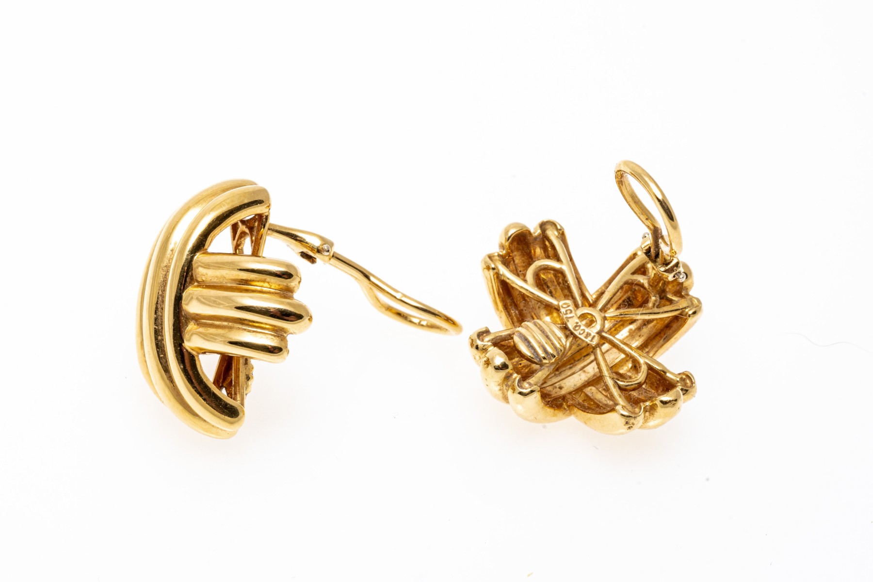 Tiffany & Co. 18k yellow gold classic ribbed "X" style earrings, finished with omega style backs, no posts.. With outer box not original to earrings
