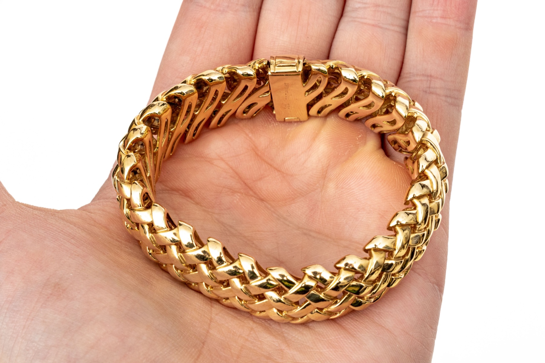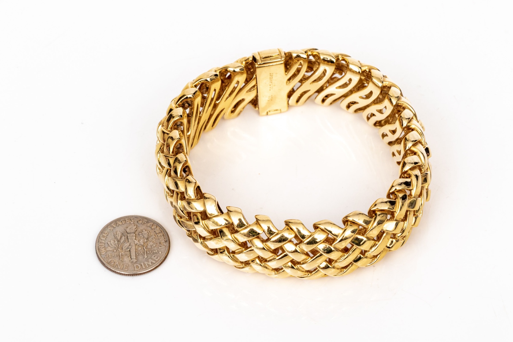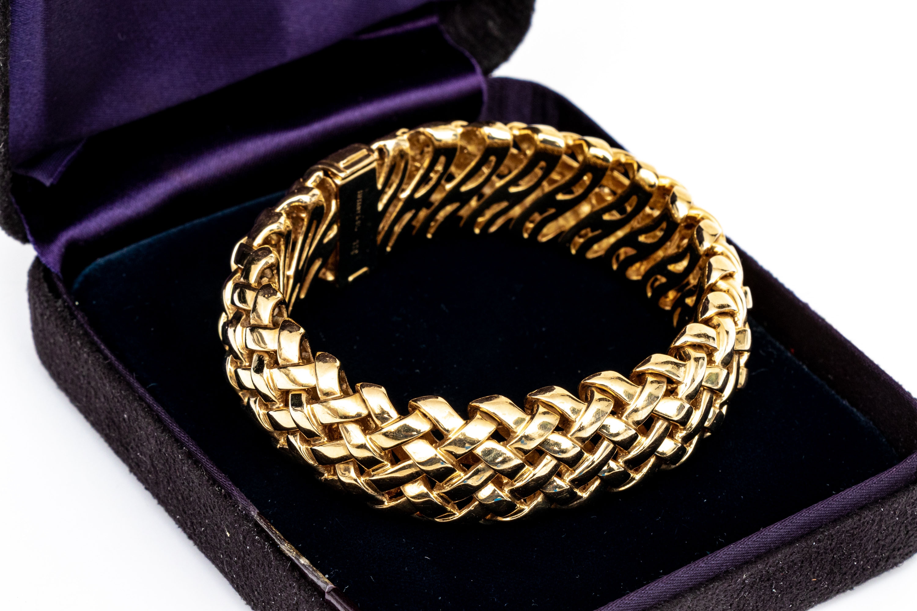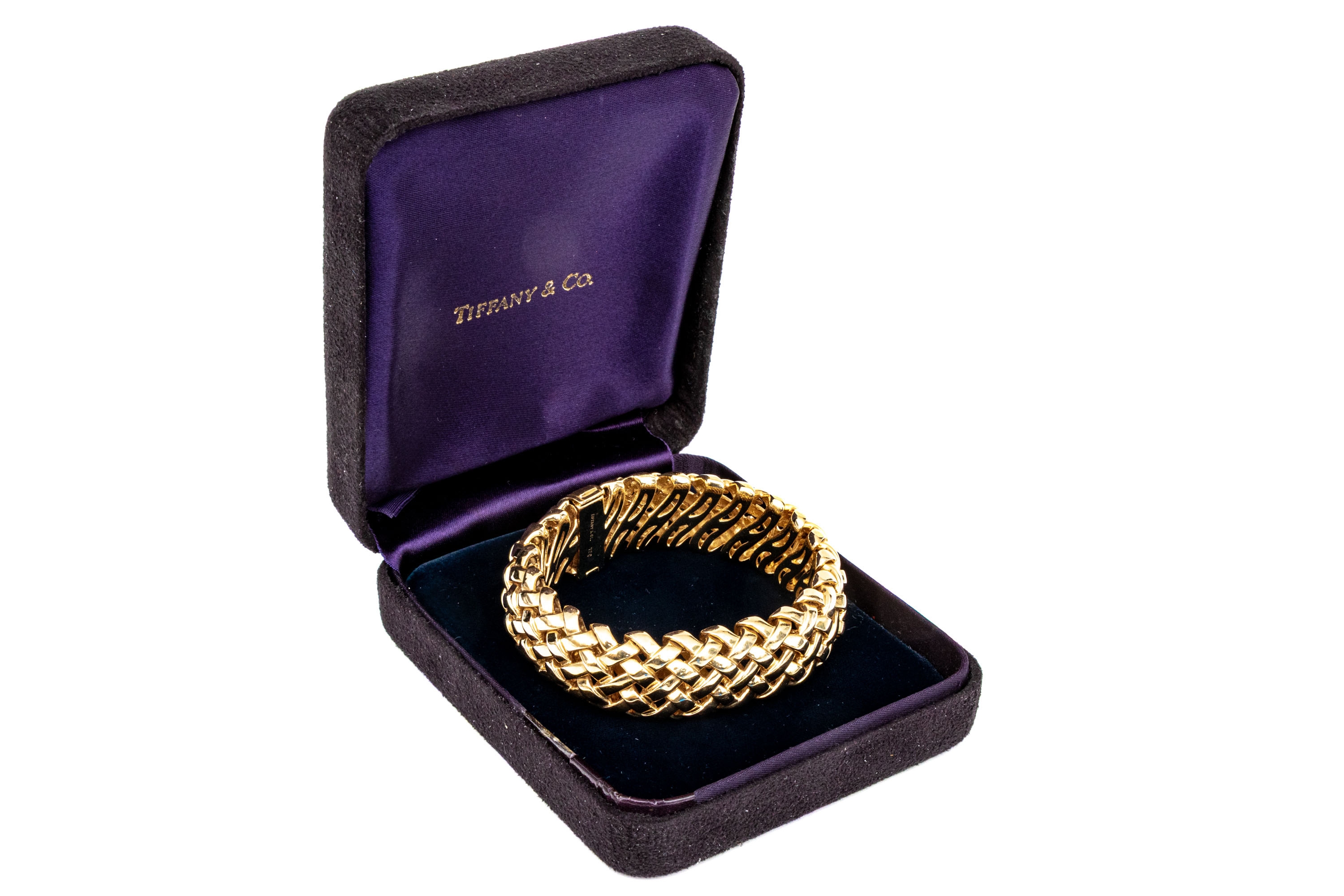 Tiffany & Co. 18k yellow gold fabulous chunky open basket weave motif bracelet, finished with a foldover style clasp.