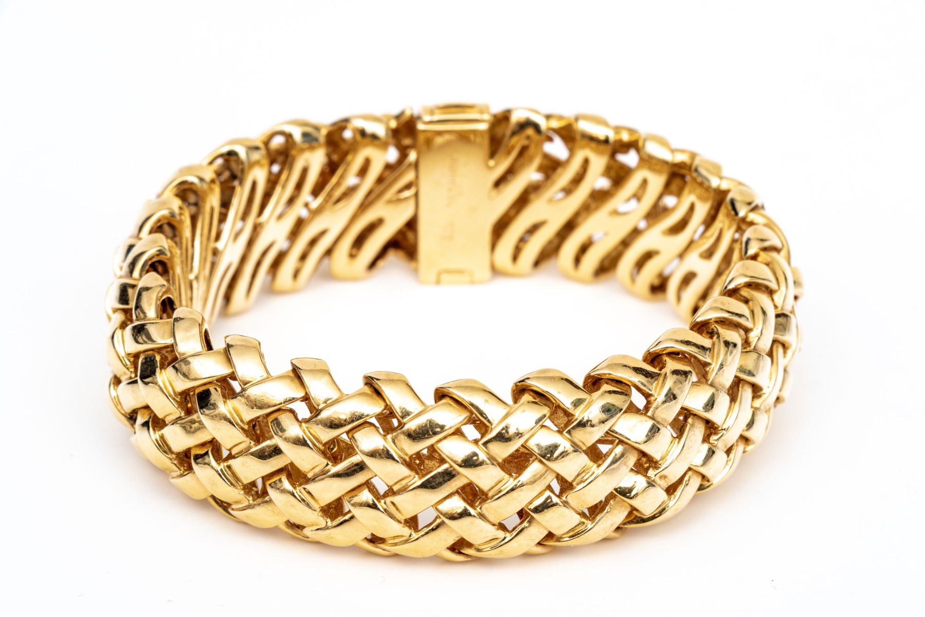Tiffany & Co. 18k yellow gold fabulous chunky open basket weave motif bracelet, finished with a foldover style clasp.