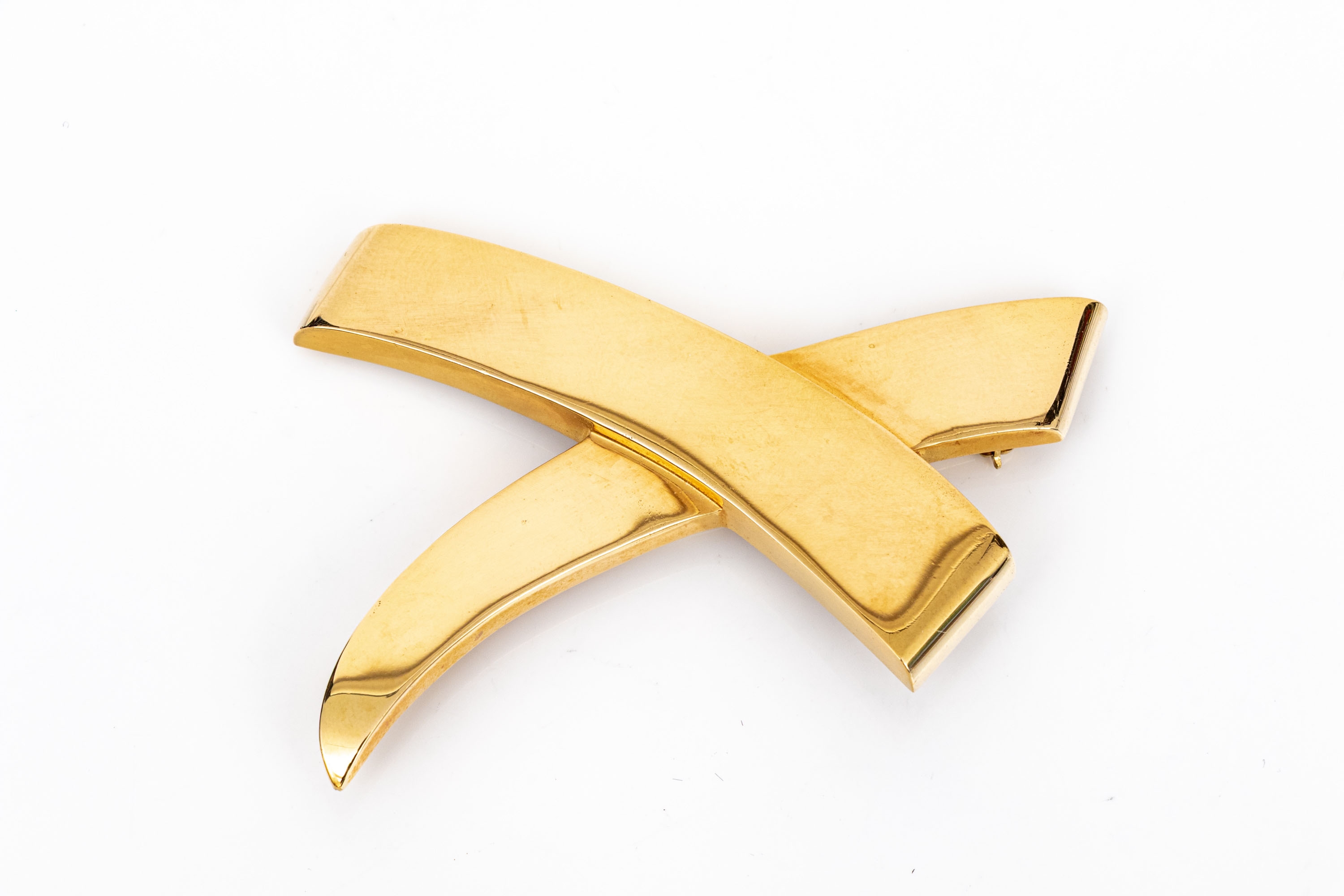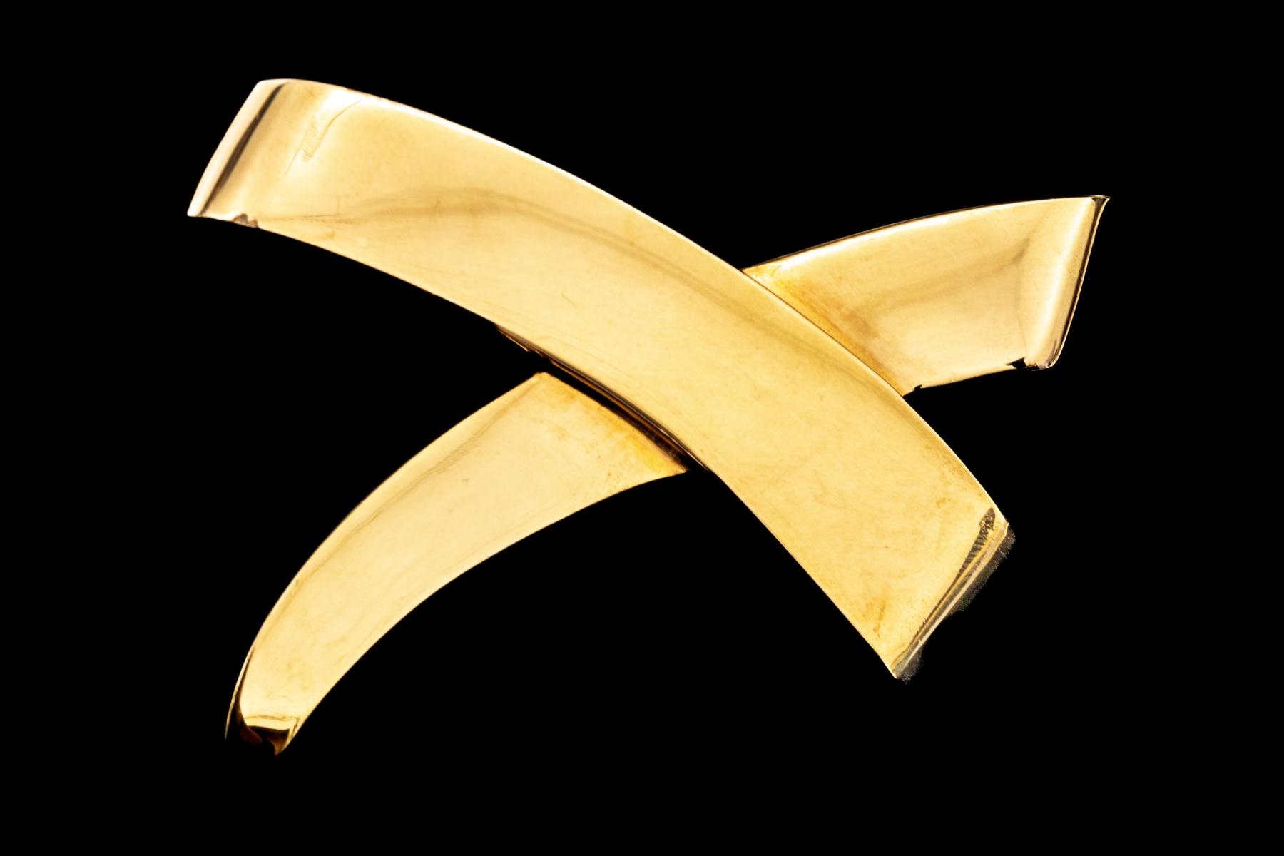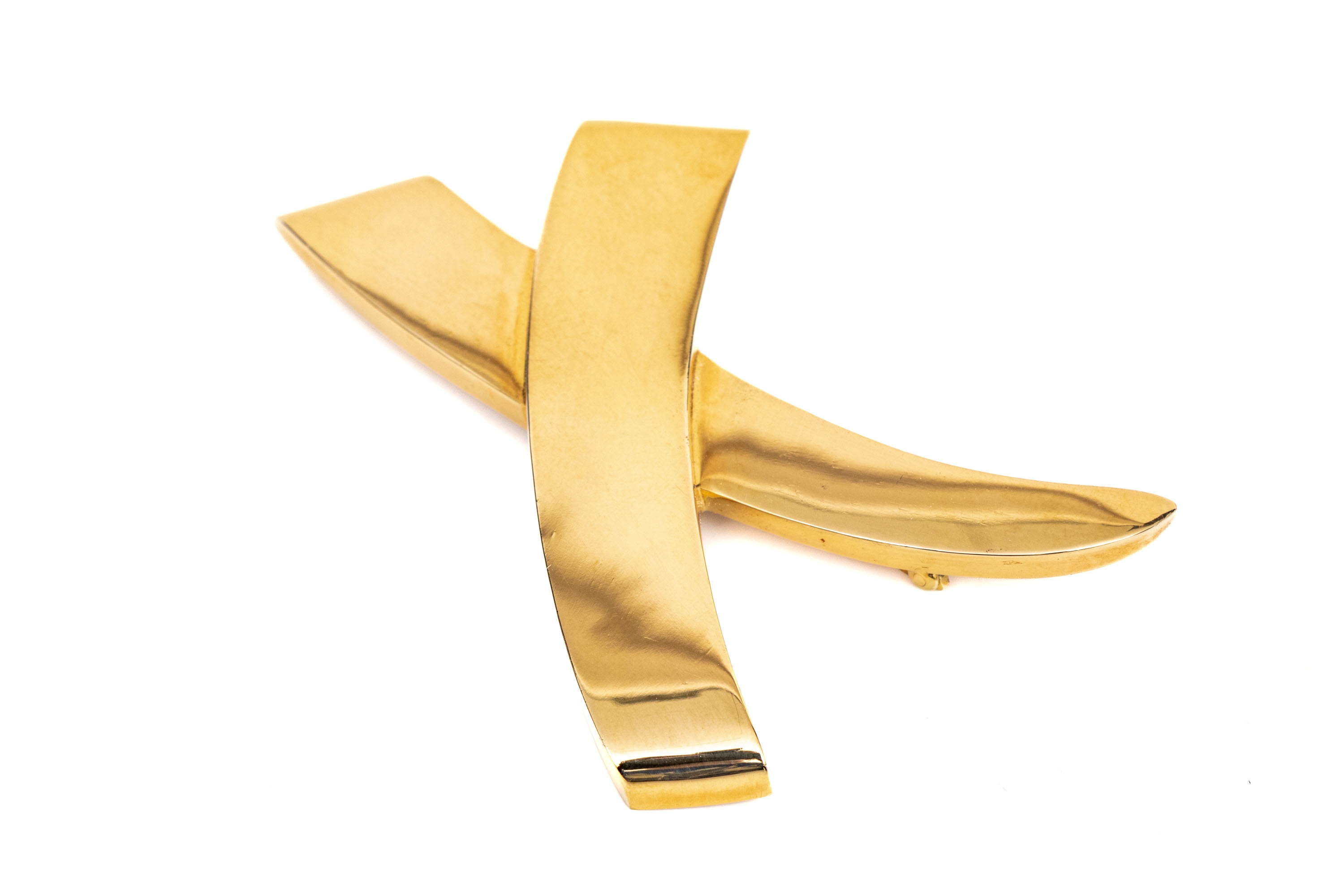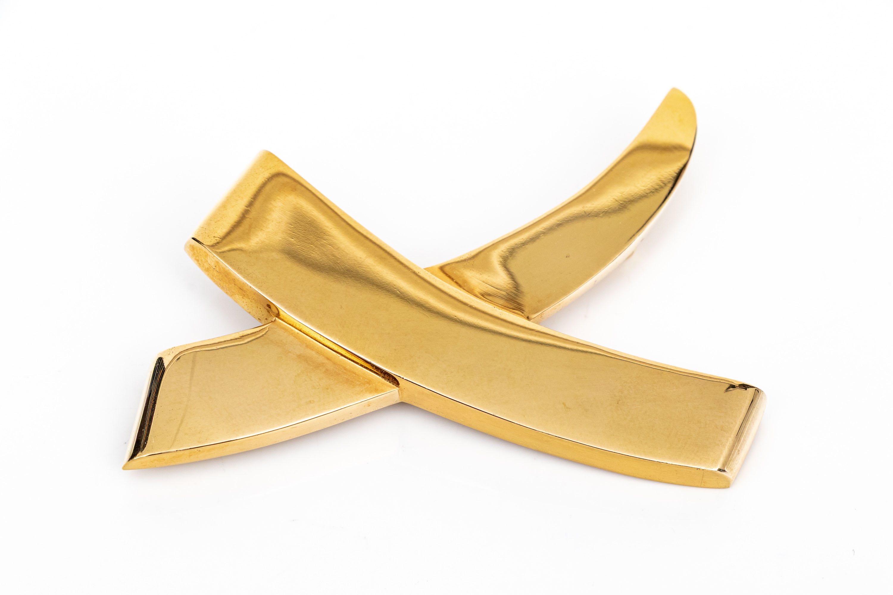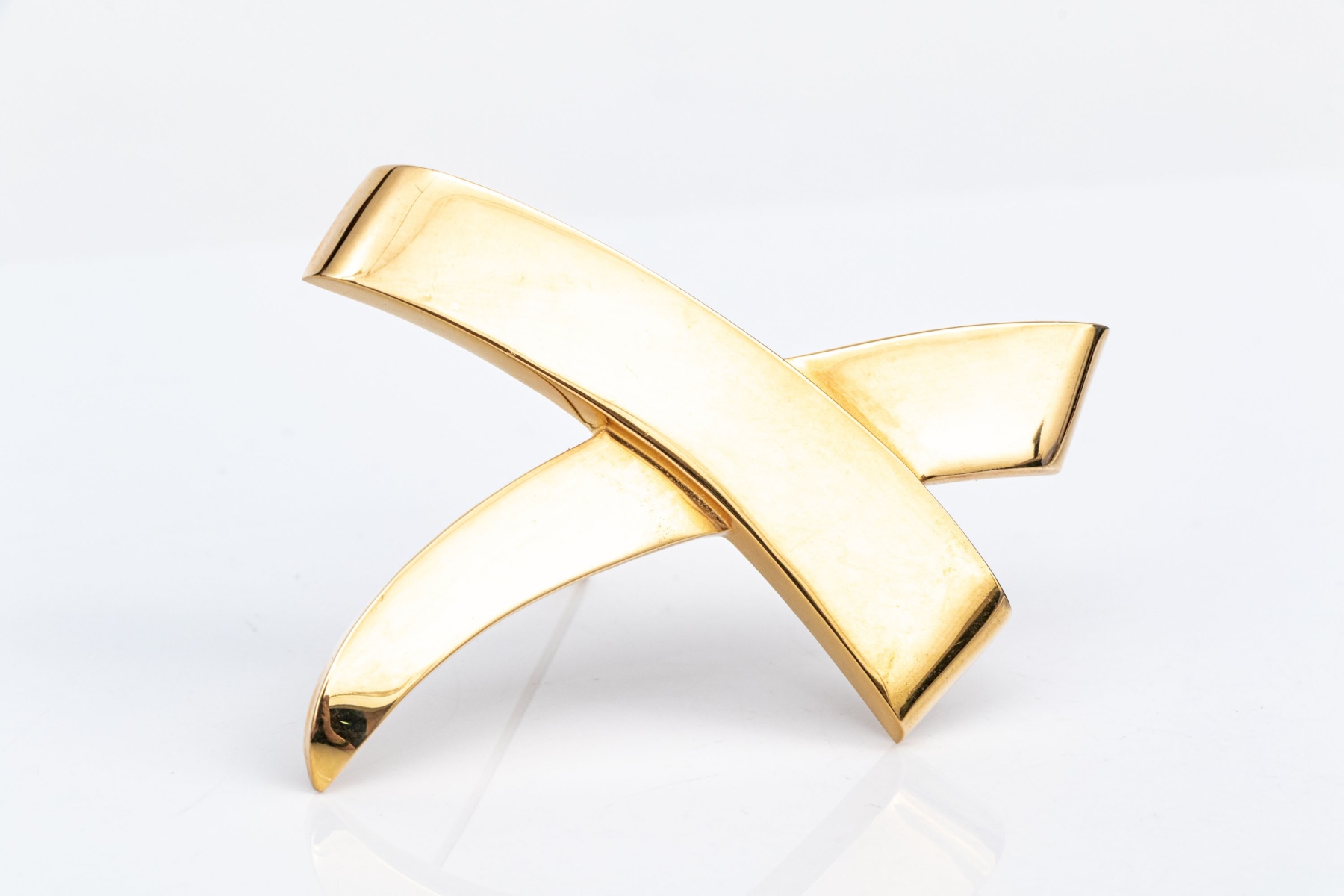 Tiffany & Co. 18k yellow gold Paloma PIcasso iconic jumbo graffiti "X" kiss brooch. This magnificent brooch was first created by Paloma Picasso in 1984 as part of her graffiti collection, inspired by the street art of New York City at the time, and styled after the artists' own handwriting.