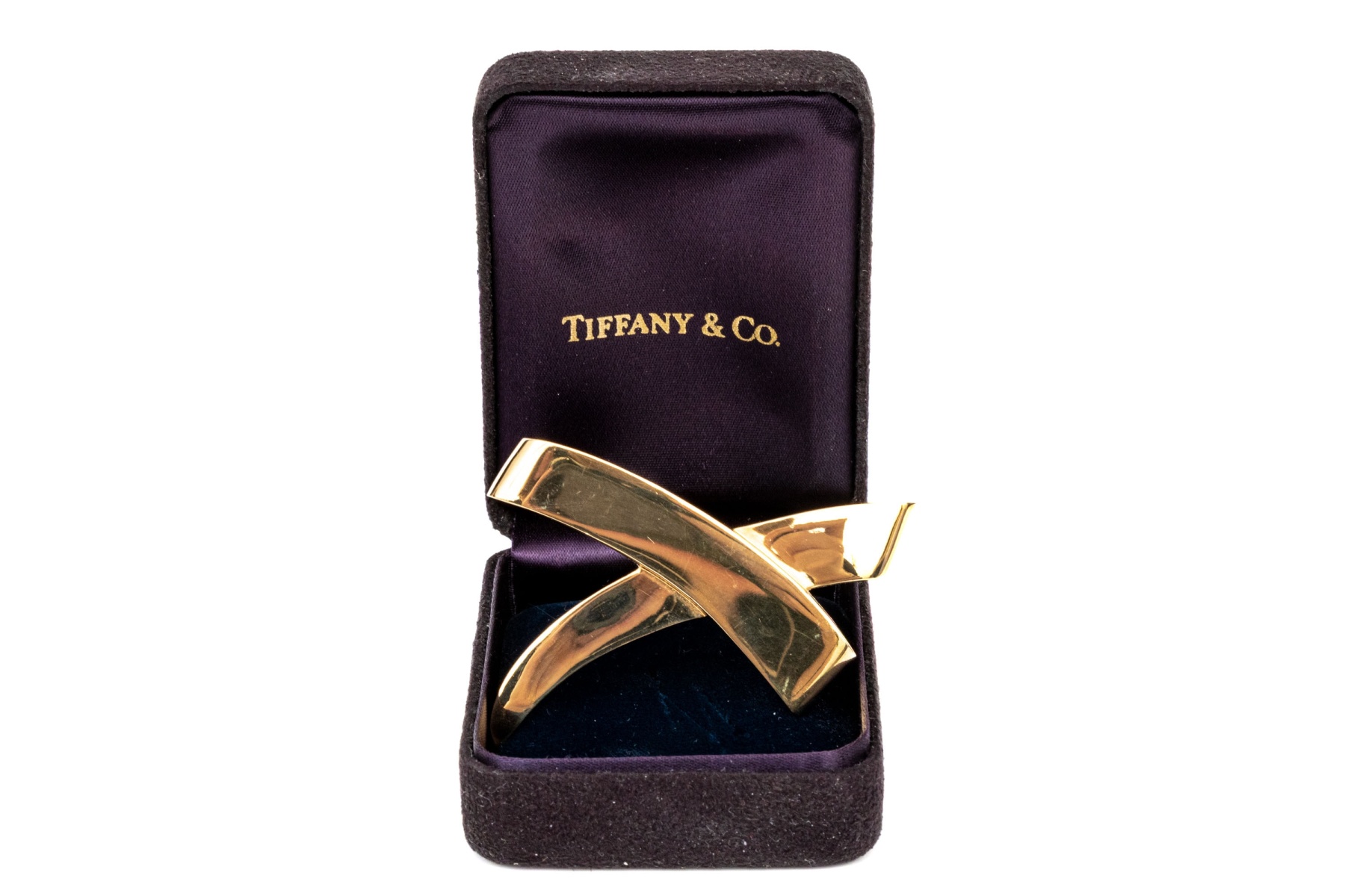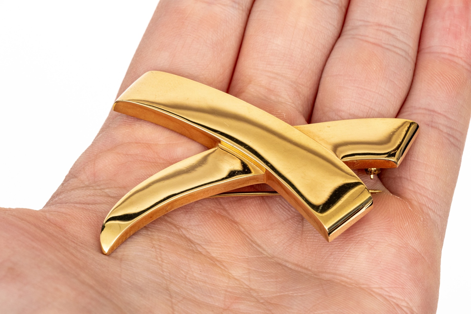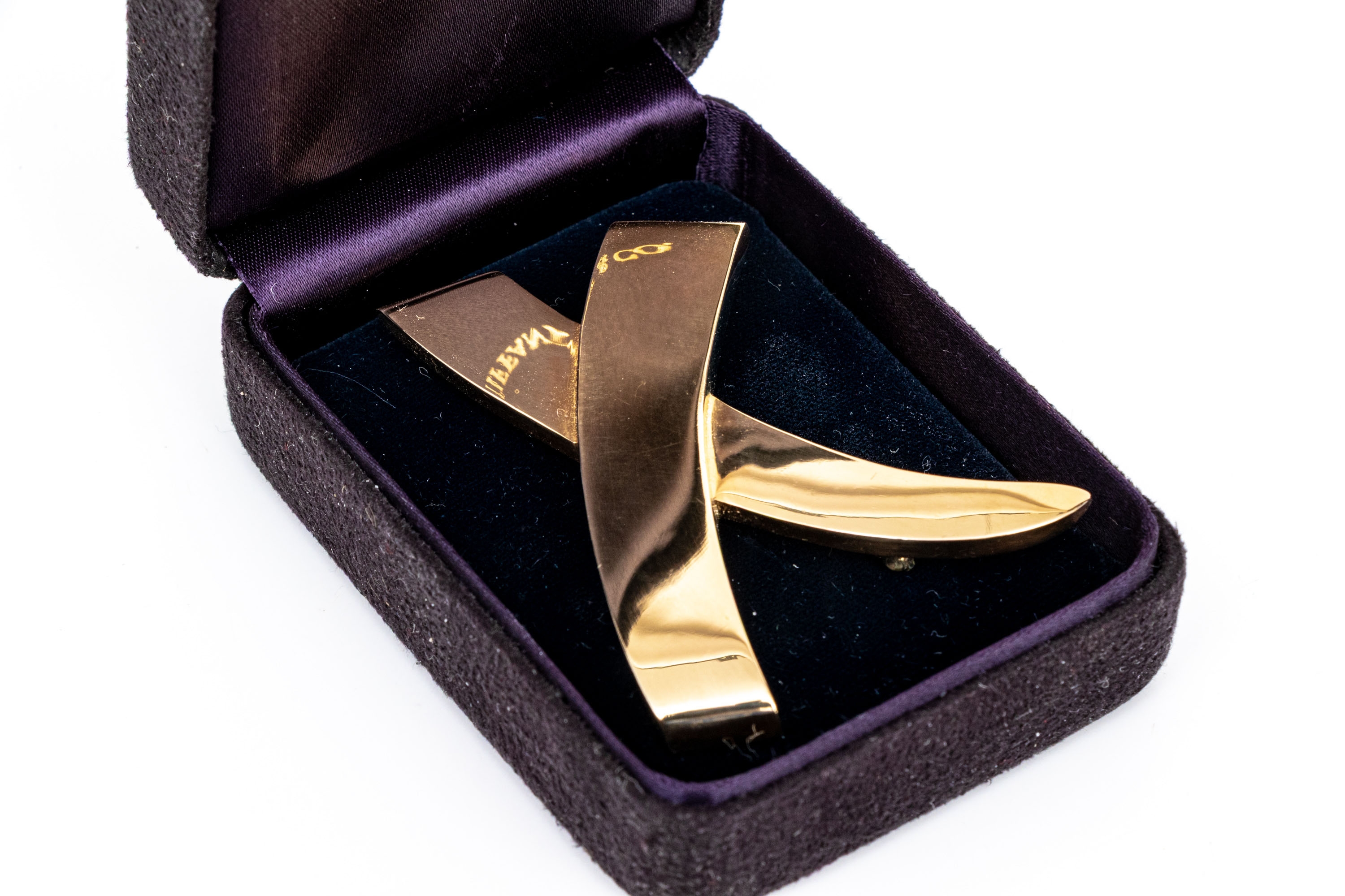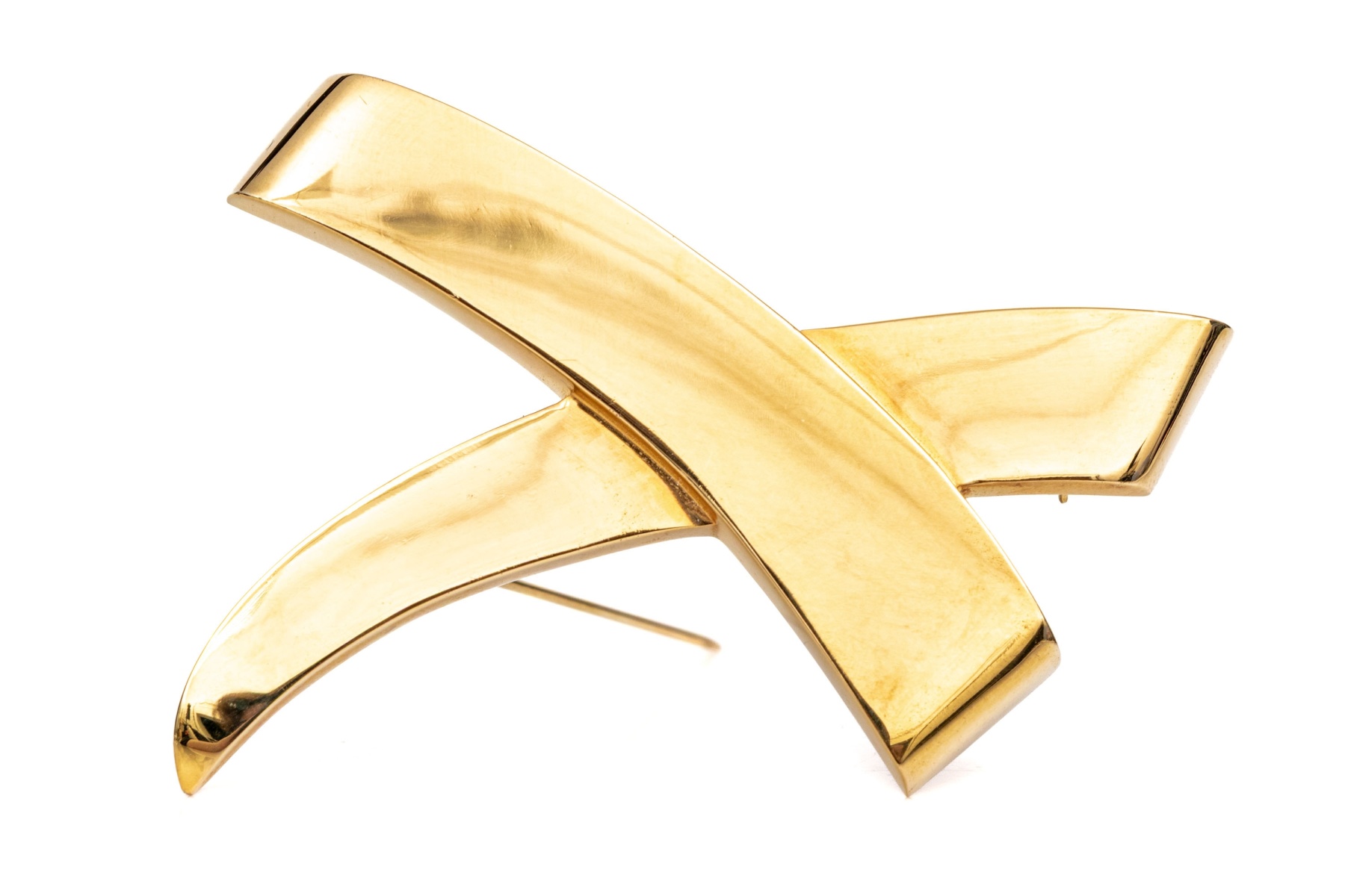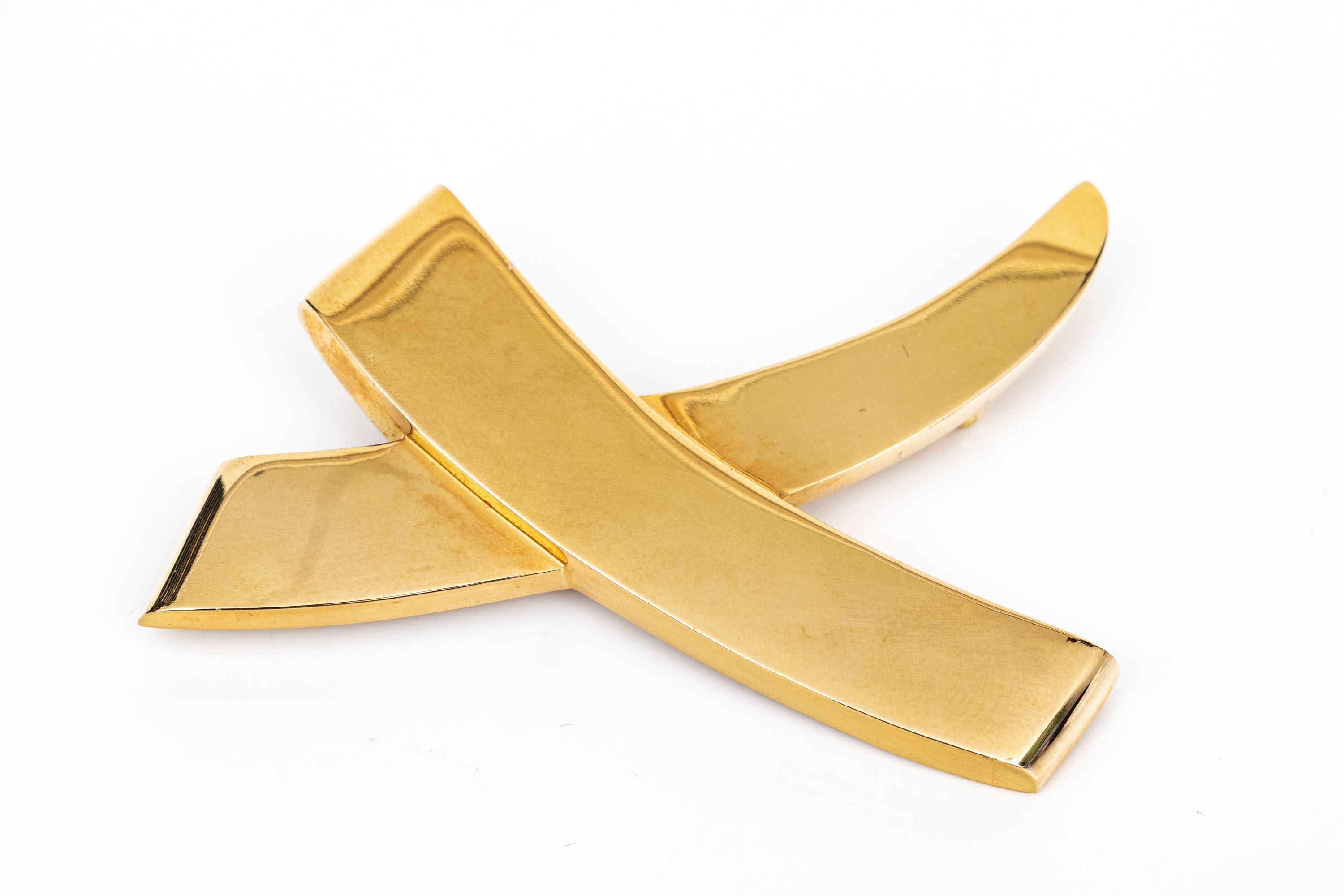 Tiffany & Co. 18k yellow gold Paloma PIcasso iconic jumbo graffiti "X" kiss brooch. This magnificent brooch was first created by Paloma Picasso in 1984 as part of her graffiti collection, inspired by the street art of New York City at the time, and styled after the artists' own handwriting.