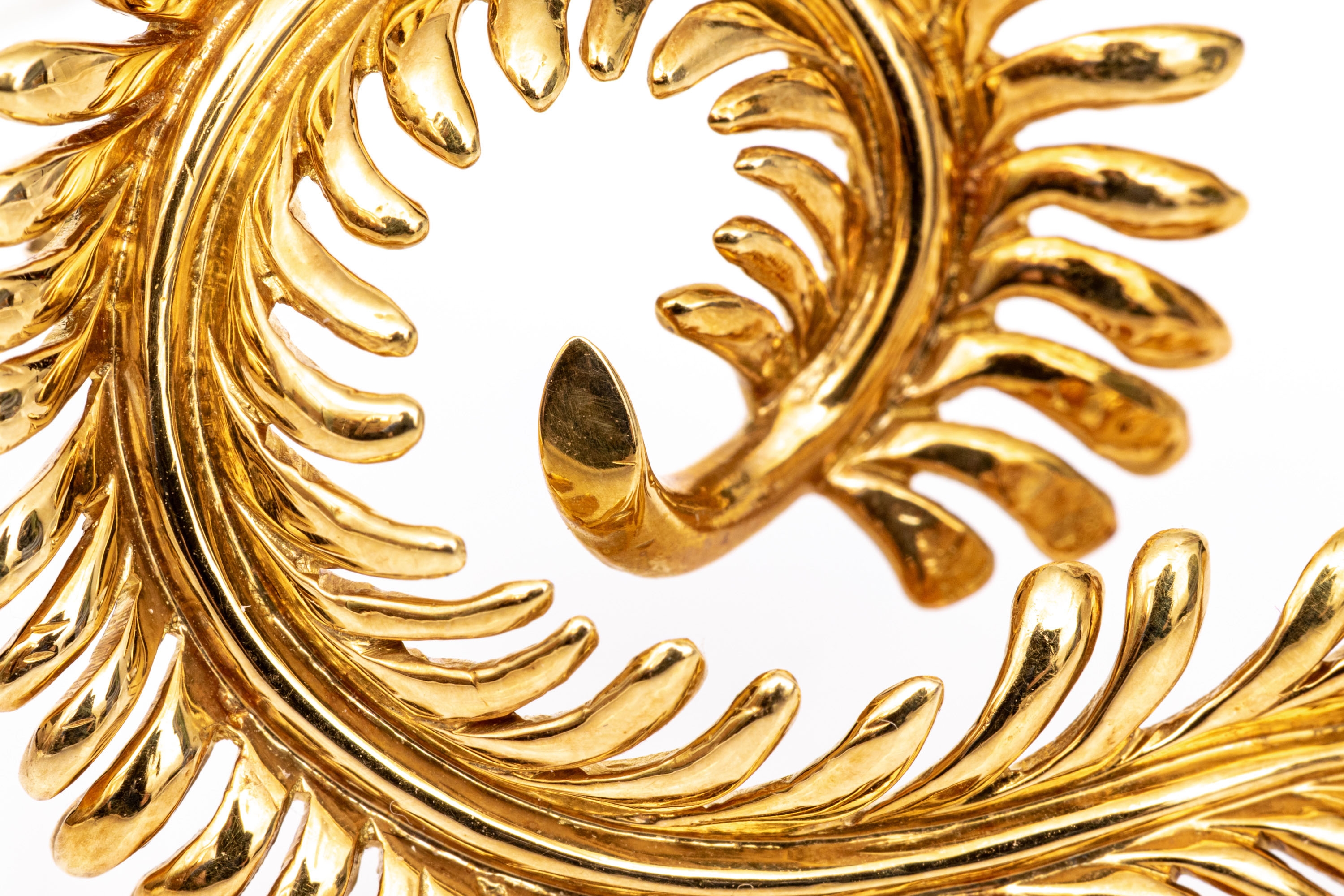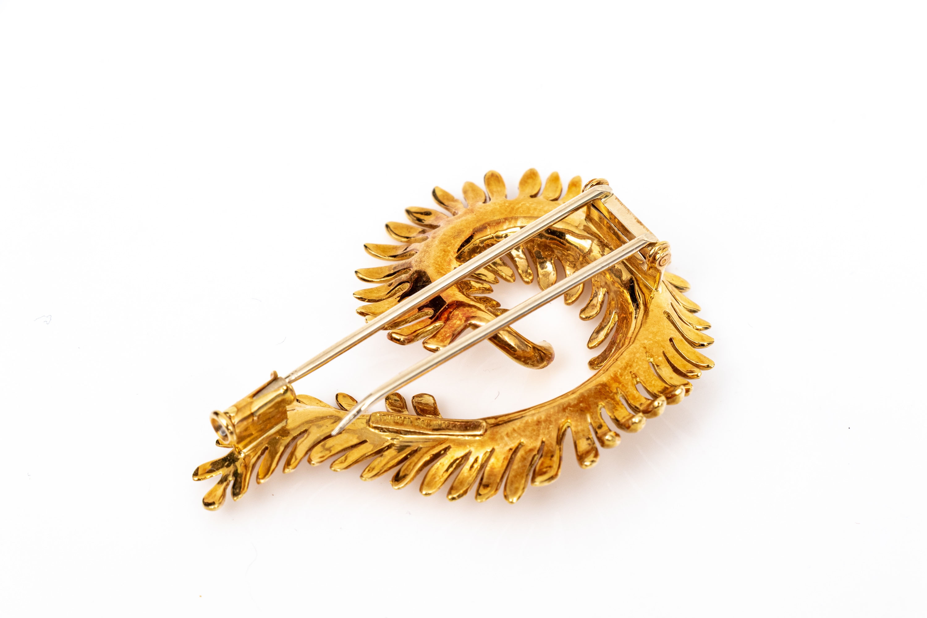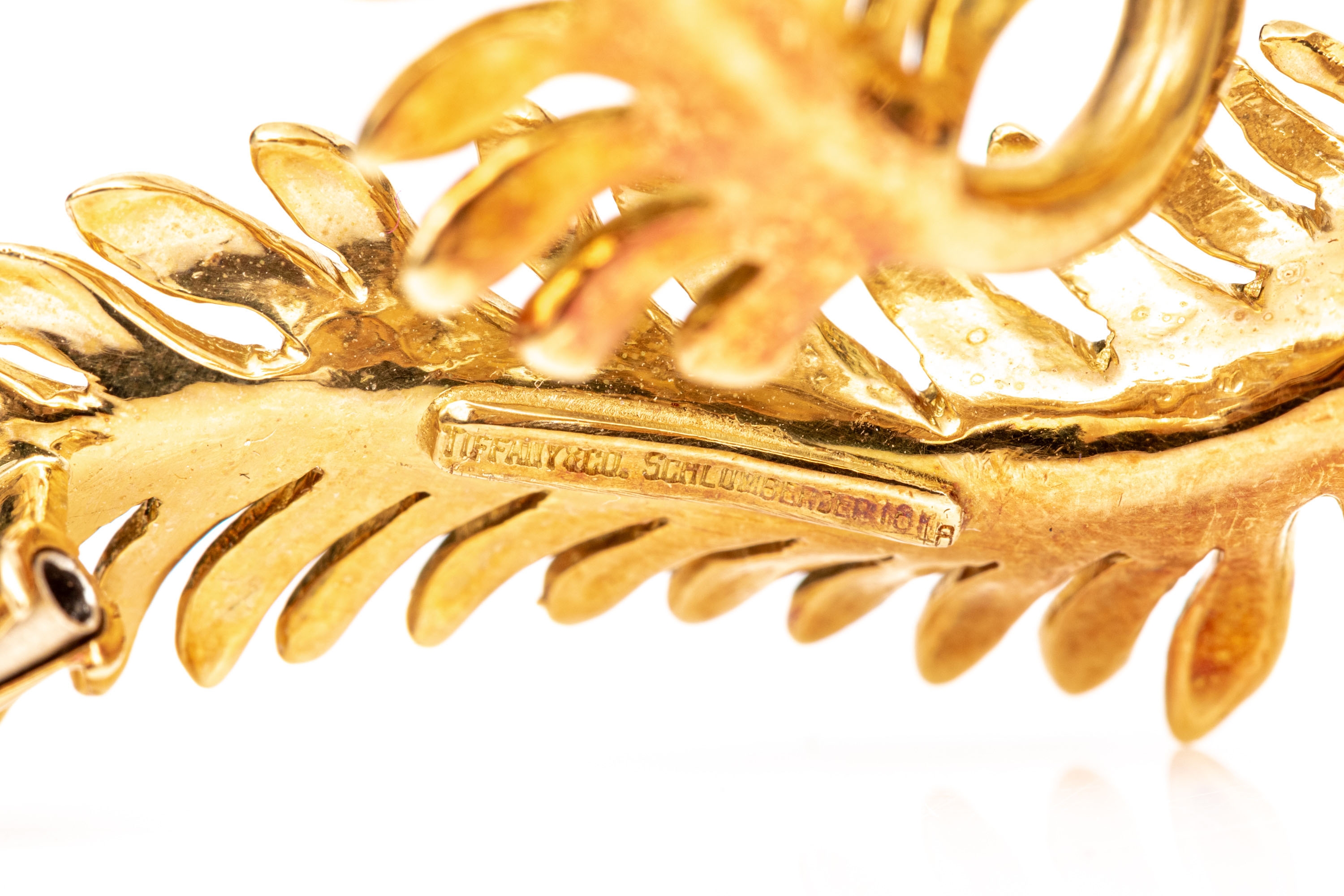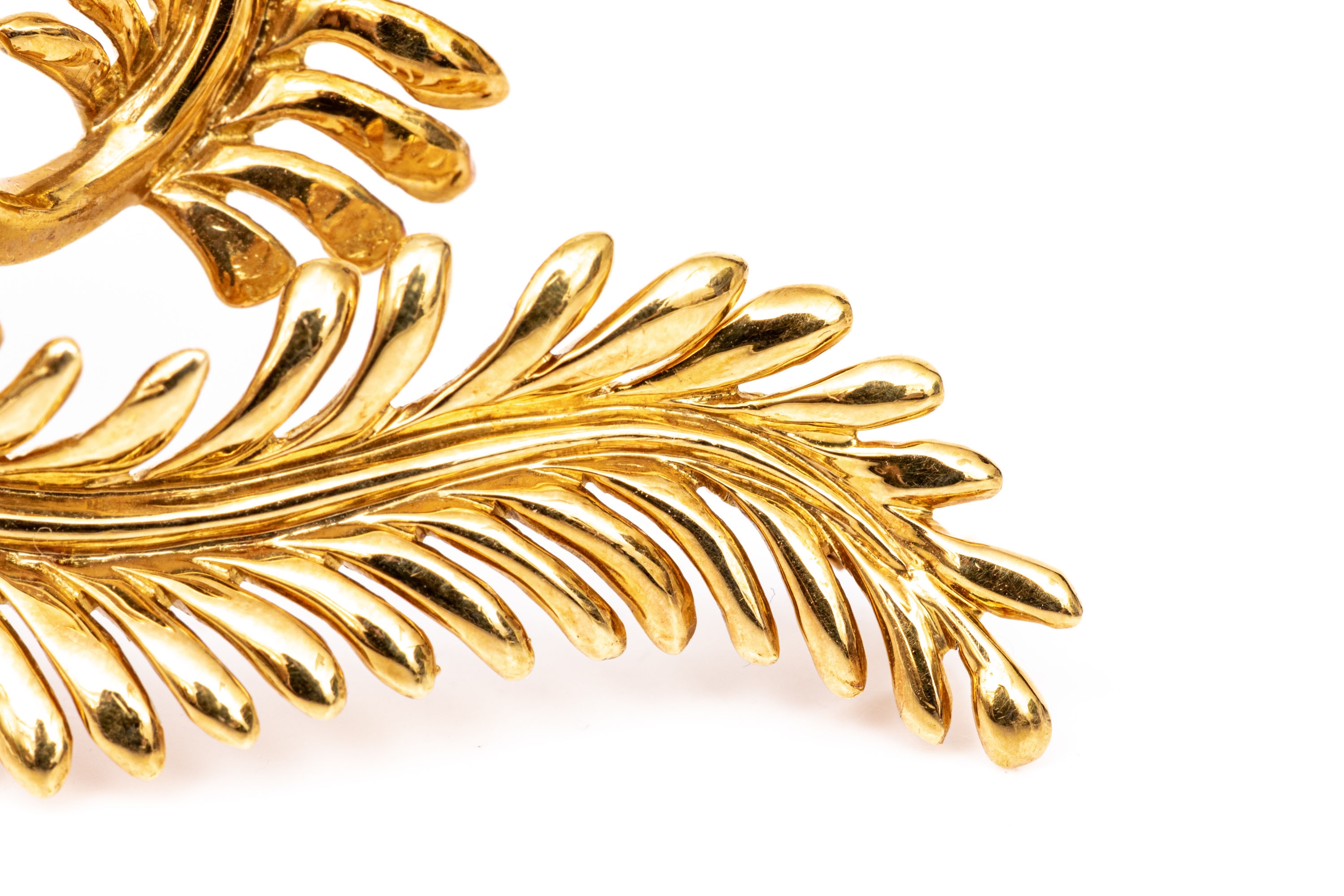 Tiffany & Co. 18k yellow gold Schlumberger magnificent stylized furling feather brooch. This fabulous brooch takes inspiration from the question mark, studded with rounded, high polished tendrils and finished with a double pronged brooch closure.