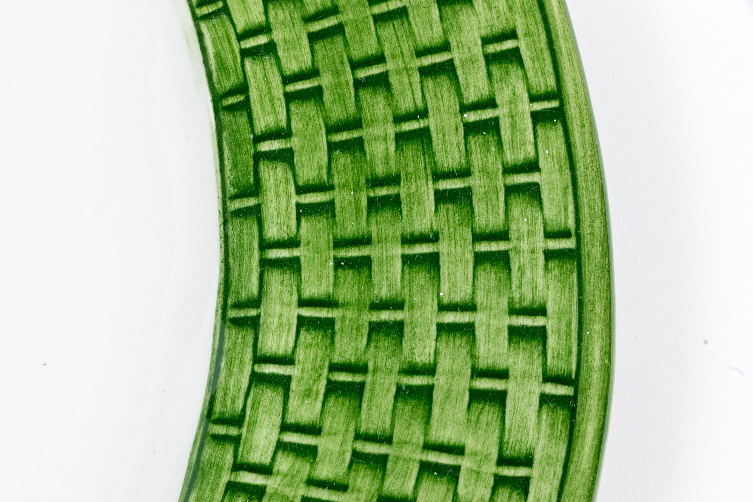Wonderful moulded and green finished faux basket weave motif to the rim.