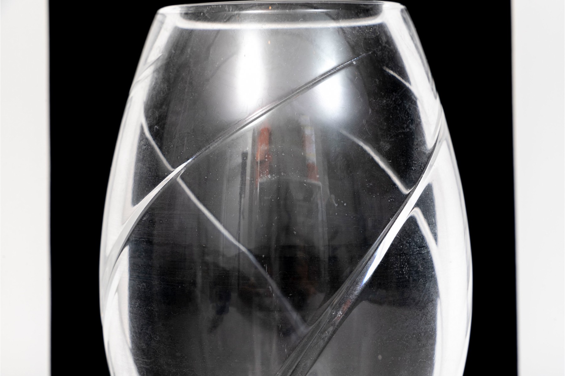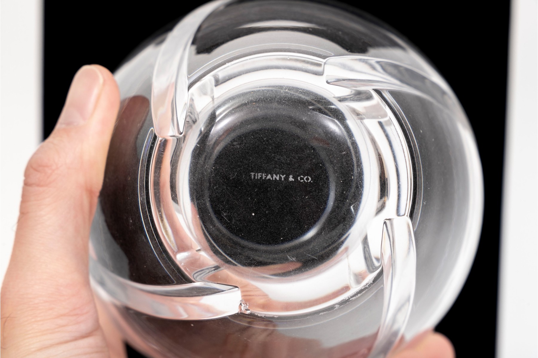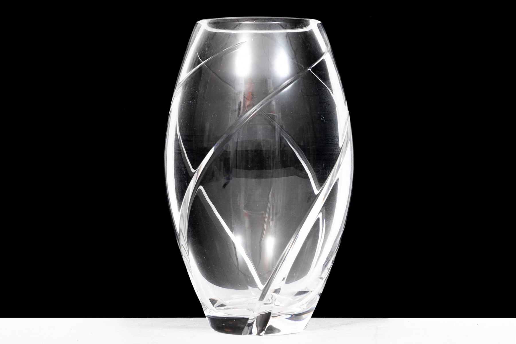 Tiffany & Company crystal glass vase. The exterior of the vase has a wrapped spiral design.